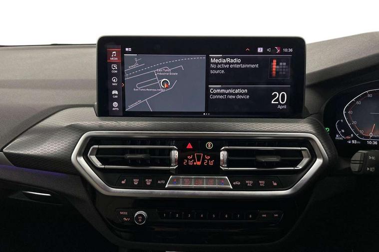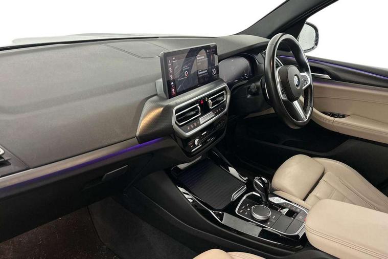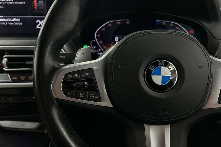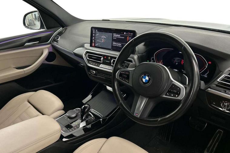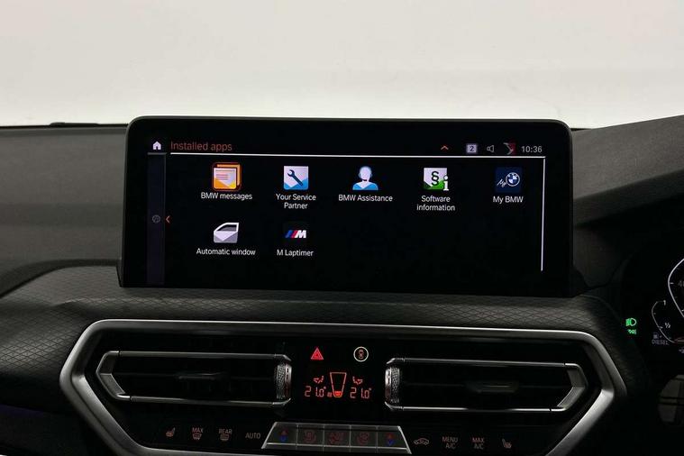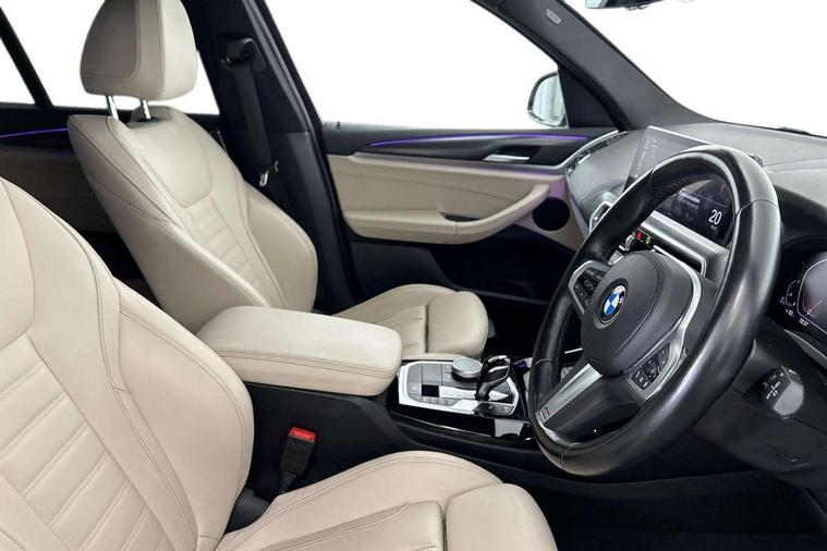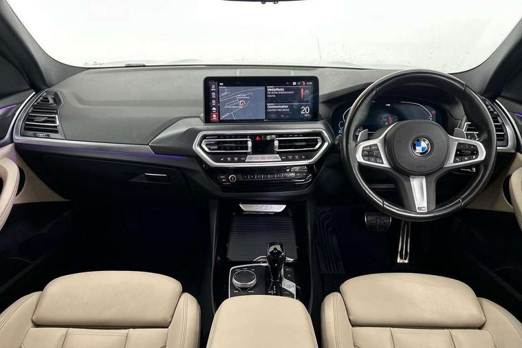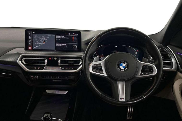 Active Guard, Attentiveness assist, BMW Live Cockpit Professional nav system including 12.3" instrument display + 12.3 high resolution control display, BMW Online services, BMW Teleservices, Brake pad wear indicator in front and rear, Check Control warning system for monitoring of lights and door/luggage compartment open warning, Condition based service - BMW service history, electronic service booklet, integrated owner's handbook, Connected drive services, Cruise control with brake function + speed limiter, Electric boot lid, Front/rear Parking distance control, iDrive Controller with 8 favourite buttons, Instrument cluster with speedometer with mph readout, tachometer, fuel gauge and oil temperature gauge, Lights on warning by audio warning signal when ignition is switched off, Oil sensor for level and grade, warning by check control system, On board computer - average speed+fuel consumption, service interval, clock/date, odometer/trip meter, outside temperature display and ice warning, Optimum shift indicator, Personal Profile - automatic lock when driving away selectable, Stop/start system, Variable sports power steering, Automatic transmission with gearshift paddles, Diesel particulate filter, Drive performance control with ECO PRO comfort + sport mode, Incorrect fuelling protection, Larger capacity fuel tank, M sport suspension, Multi-link rear suspension, Performance Control, BMW professional radio/CD/MP3, DAB tuner, Acoustic glazing, Automatic windscreen wipers and automatic headlight, Black finish on B pillars, Body colour door handles, Body colour electric adjust heated aspherical door mirrors, Body colour roof mouldings, Body coloured bumpers, Direction indicator, side repeaters, integrated in exterior mirrors, Dynamic brake lights, Exhaust tailpipes - dual, round, split left and right with chrome finisher, Fingertip control / anti-trap function on electric window, Folding wing mirrors with auto dimming, Follow me home headlights, Front and rear bumper system with replaceable deformation elements, Front and rear electric windows, Gloss chrome tailpipes finishers, Green tinted heat insulating glass, Heated windscreen washer jets, High beam assistant, High gloss black shadow line roof rails, High gloss shadowline exterior trim in decorative moulding side frame/recess cover/guide rail/B, C pillars/mirror frame and triangle with mirror base, High level 3rd brake light incorporating LED Technology, Interior rear view electrochromatic mirror with automatic anti dazzle function, LED tail lights, Lightweight engineering, M aerodynamic bodystyling, Model designation, Rear side wing doors, Rear wing door, Rear wiper, Shark fin antenna, Side exterior M designation badges, Visible VIN plate, Welcome lighting, Windscreen wipers with adjustable interval, 12V power socket in front centre console, 3 rear headrests, 3 zone automatic air conditioning, 4 lashing points to secure luggage, 40:20:40 split folding rear seat with loading system, 5 seats, Ambient lighting, Anthracite headlining, Automatic interior light when door is opened/ignition switched off or via remote key, Foldable storage floor with compartment, Four grab handles integrated in roof lining, Front and rear bottle holders integrated into door trim storage compartments, Front and rear side armrests integrated into door trim, Front centre armrest with storage compartment, Front footwell lights, Front head restraints, Front sports seats, Front/rear courtesy lights with soft on/off dimming, Front/rear reading lights, Heated front seats, Isofix rear child seat preparation, Leather gear knob, Luggage area underfloor compartment, Luggage compartment lighting, M sport leather steering wheel, Multifunction steering wheel, Parcel shelf removeable and storable under boot floor, Reach and rake adjustable steering column, Rear centre armrest with 2 cupholders, Removable / retractable luggage cover, Seat backrest width adjustment, Slope adjustable rear seats, Storage compartment in rear centre console and front/rear door trims, Sun visors with vanity mirrors and ticket pocket, Toolkit located in luggage compartment, Two front cupholders with removable oddments tray/lid, Vernasca leather upholstery, Connected pro pack - X3, Driving assistant pack - X3, ADB - Automatic Differential Brake, Anti-lock braking system (ABS) with brake assist, Automatic Stability Control (ASC), Battery safety cut-off, BMW emergency call, Brake drying, Brake energy regeneration, Braking pre-tensioning, Child locks on rear doors, Cornering brake control (CBC), Crash Sensor - activation of central locking release, hazard warning light and interior lighting, Deactivation of fuel pump in the event of a crash, Driver and front passenger front and side airbags with passenger deactivation and ITS front and rear head airbags, DSC+, Dynamic brake control, Dynamic Traction Control - DTC, Electromechanical parking brake, Hill descent control, Hill start assist, Seatbelt security check for front seats, Side impact protection, Three point seatbelts to all seats with front and outer rear pyrotechnic belt tensioners and seat belt force limiters, Two tone horn, Tyre pressure sensor, Ventilated front and rear disc brakes, Warning triangle and first aid kit, Central locking switch for all doors, fuel filler cap and luggage compartment, Electronic engine immobiliser, Locking wheel nuts, Remote control including two integrated key - one button for open/close all lockable content, windows and separate button for open luggage compartment, Remote control Thatcham category 1 alarm, Start/stop button with Comfort Go keyless engine start and auto Start/stop deactivation button, Low rolling resistance tyres,