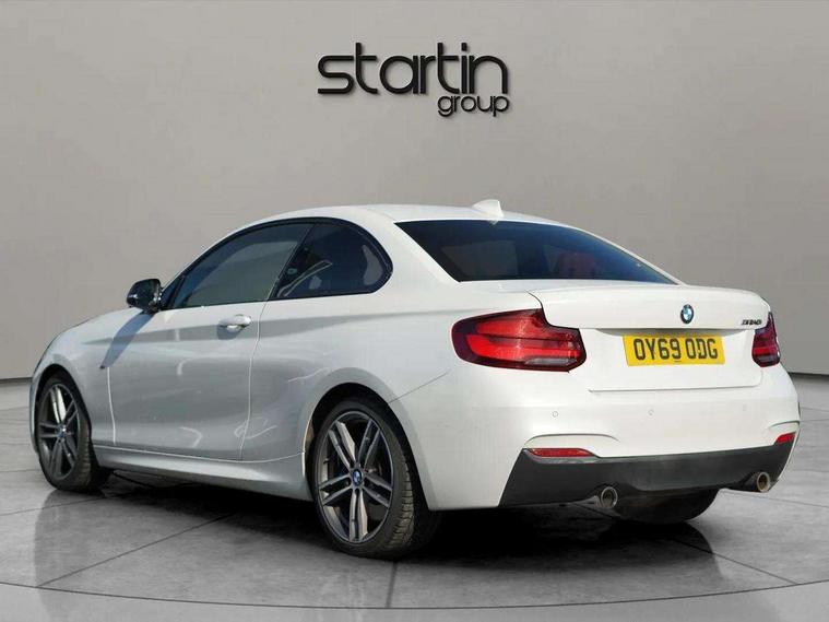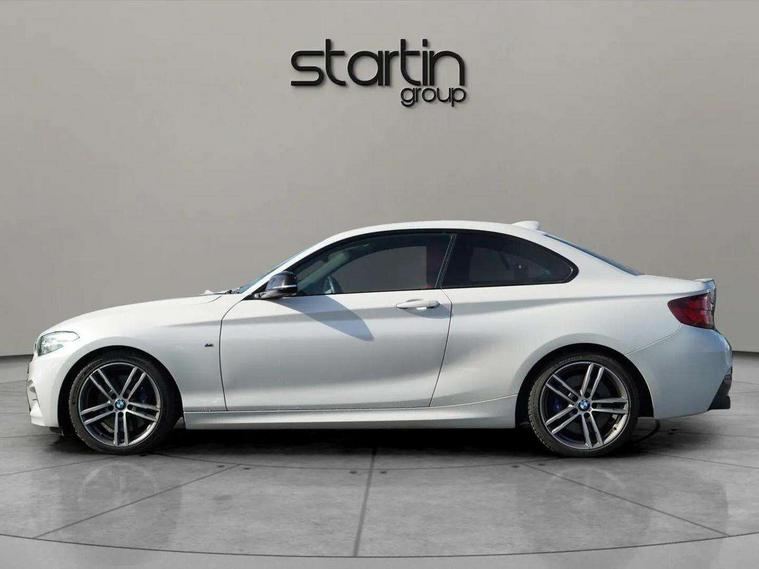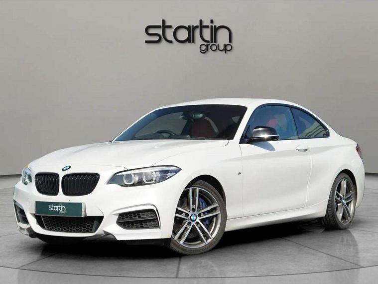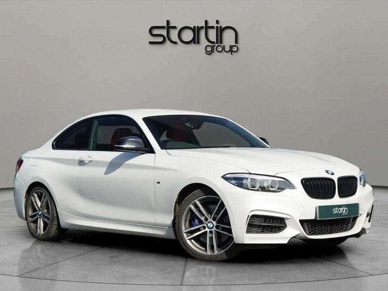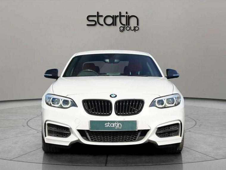 Auto start-stop, BMW Online services, BMW remote services, BMW Teleservices, Door/boot open warning, Front and rear Brake pad wear indicator, Instrument cluster with speedometer with miles per hour read out, tachometer and fuel gauge, Lights on warning by audio warning signal when ignition is switched off, Oil sensor for level and grade, warning by check control system, Oil temperature display via on board computer in instrument cluster, On board computer - average speed+fuel consumption, service interval, clock/date, odometer/trip meter, outside temperature display and ice warning, Optimum shift indicator, Personal Profile - automatic lock when driving away selectable, Real time traffic information, Speed limiter, Variable sport steering, Battery age recognition function, Drive performance control with ECO PRO comfort + sport mode, Engine cover with BMW roundel twin power turbo designation, Oil dipstick, Sports function on gearbox with steering wheel mounted gearshift paddles, DAB Digital radio, 2 speed adjustable intermittent wipers with wash/wipe function, Automatic headlight beam throw control, Automatically dimming rear view mirror, Body colour bumpers, Body colour door handles, Body colour roof mouldings, Cerium grey air blades, Clear lenses direction indicator lights, Darkened rear lights with LED light bars, Daytime driving lights, Direction indicator side lights integrated exterior mirrors, Dual dark chrome exhaust tailpipes, Dynamic brake lights, Electric windows - front and rear, with open/close fingertip control, anti-trap facility and comfort closing, Electrically adjustable and heated M specific exterior mirrors, Follow me home headlights, Front air inlet with high gloss black finish, Green tinted heat protection glazing, Headlight range control, Heated windscreen washer jets, High gloss black mirror caps, High level third brake light, LED rear lights, LED welcome home lights, Lightweight engineering, M aerodynamic body styling, M rear spoiler, Rain sensor with automatic headlight activation, Rear bumper with high gloss black finish, Rear fog lights, Rear window aerial, Reversing light in rear light cluster, Shark fin roof aerial, Visible VIN plate, Welcome lighting, 12V power socket in centre console, 12V power socket in passenger footwell, 3 Spoke M sport nappa leather multifunction steering wheel, Anthracite headlining, Conditioned based service, Dakota leather upholstery, Front and rear side armrests integrated into door trim, Front door sill finishers with M designation, Front door storage bins, Front floor mats in velour, Front head restraints, Front sliding armrest, Glove box handle with chrome surround, Isofix child seat for two outer rear seats, Leather gearknob, Leather handbrake lever, Luggage compartment access via BMW roundel, Manually adjustment steering wheel column, Rear coat hooks, Rear folding head restraints, Storage compartment in rear centre console, Two cupholders with sliding cover and inlay mat, Interior comfort pack - 2 Series/M2, Active differential brake (ADB), electronic differential lock in DSC-OFF mode, Airbag - Front driver and passenger, front and rear head, front side, curtain head protection, manual deactivation of front passenger airbag possible, Anti lock braking system (ABS) with brake assist, Automatic Stability Control (ASC), BMW emergency call, Brake drying, Brake energy regeneration, Braking readiness, Cornering brake control (CBC), Crash sensor activating central locking release with hazard warning lights and interior lighting + battery safety cut-off, Dynamic brake control, Dynamic stability control + (DSC+), Dynamic Traction Control - DTC, Front pyrotechnic belt tensioners and belt force limiter, rear coaded belt buckles, Hill start assist, M Sport braking system, Seat belt security check for driver and front passenger, Side impact protection, Twin horns, Tyre pressure monitoring with 3 level warning strategy, Warning triangle and first aid kit, Central locking switch for all doors, fuel filler cap and luggage compartment, Check control system for monitoring of lights and door/luggage compartment open warning, Drive away door locking, Locking wheel bolts, Remote control including integrated key with blue insert, Start/stop button with Comfort Go keyless engine start and auto Start/stop deactivation button, Thatcham category 1 alarm system with remote control and engine immobiliser, Reduced rolling resistance tyres,