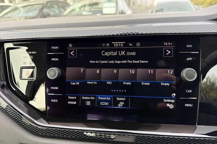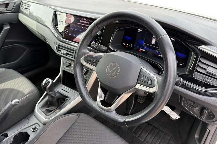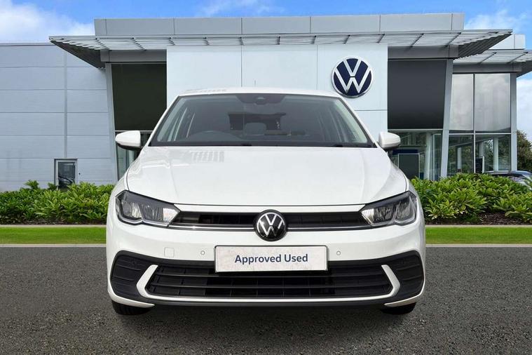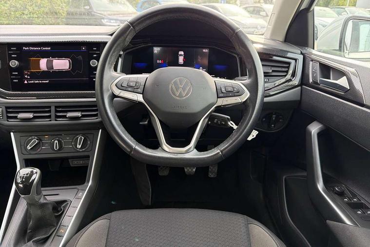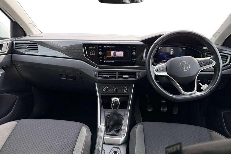 Adaptive cruise control without follow-to-stop and speed limiter, Bluetooth mobile phone interface, Driver alert system, Emergency call service, Front assist system, Power assisted speed sensitive steering, Preparation for We connect and We connect plus, Speedo and rev counter, electronic odometer, trip, service interval display and fuel gauge, Standard rear axle, Travel Assist - Lane keeping system and traffic jam assist, Travel assist including emergency assist, Trip computer, Warning signal and warning light for front and rear seatbelts not fastened, Washer fluid level indicator, Wireless app connect, Front wheel drive, Rear shock absorpion, Start-stop system with battery regeneration (recuperation - energy recovery during braking), DAB Digital radio, Diversity antenna for FM reception, Front and rear 6 speakers, Automatic dimming interior rear view mirror, Body colour bumpers, Body colour door handles, Body colour door mirrors, Electric front windows, Heat insulating darkened glass in side and rear windows, Heat insulating glass windscreen, Power folding adjustable/heated exterior mirrors and front passenger exterior mirror lowering function, Rain sensor, Rear electric windows, Rear fog light, Rear side wing doors, Rear windscreen washer and wiper with interval delay, Third brake light, 12V power socket in centre console, 2 front and 2 rear reading lights, 2 USB-C ports in the front, 2 USB-C charging sockets on the center console in the rear, 3 rear head restraints, 60/40 split folding rear seat and rear seat bench not split, Ceramique headliner, Chrome plated radiator grille inserts, air vent surrounds and light switch surrounds, Door and side trim panel, Driver and front passenger seat height adjustment, Driver/passenger sunvisors with illuminated vanity mirrors, Front centre armrest, Front seat backrest storage pockets, Front standard seats, Handbrake lever handle in leather, Hartley/Thomas cloth upholstery, Isofix child seat preparation easy-fit (for two outer rear seats, and front passenger seat) compatible with I-size, Leather trimmed gear knob, Luggage compartment cover, Luggage compartment floor, Luggage compartment lighting, Multifunction steering wheel, Single front passenger seat, Standard pedal cluster, Light and vision pack - Polo, 3 point height adj front seatbelts + pretensioners, 3x3 point rear seatbelts, ABS, Driver and front passenger airbag with front passenger airbag deactivation, Drivers and front passengers safety optimised head restraints, ESC (Electronic stability control) + EDL (Electronic Differntial lock) and ASR (Traction control), Extended and predictive pedestrian/ cyclist protection, Front curtain and side airbags with center airbag, Front disc brakes, Hill hold control, Manual child lock in rear doors, Rear drum brakes, Single tone horn, Tyre pressure loss indicator, Alarm with interior protection, Anti-theft alarm system with interior monitoring, backup horn, and towing protection, Anti-theft wheel bolts, Electronic engine immobiliser, Lava stone black gloss/matt decorative inserts in dash and front door panels, Low rolling resistance tyres,