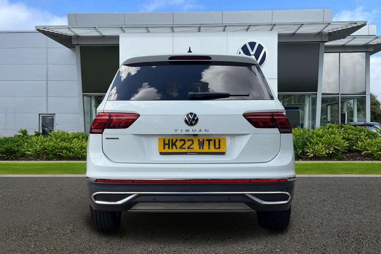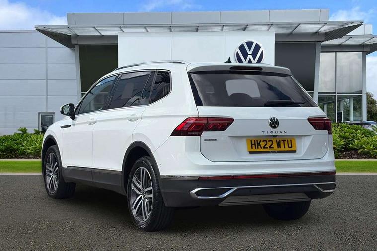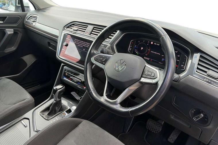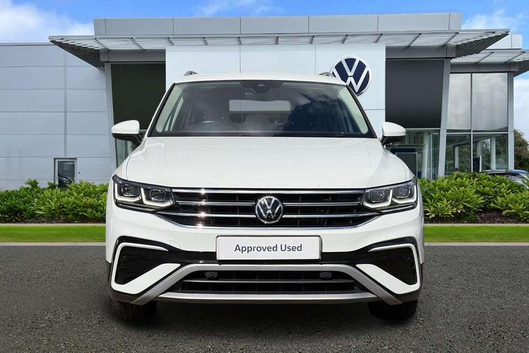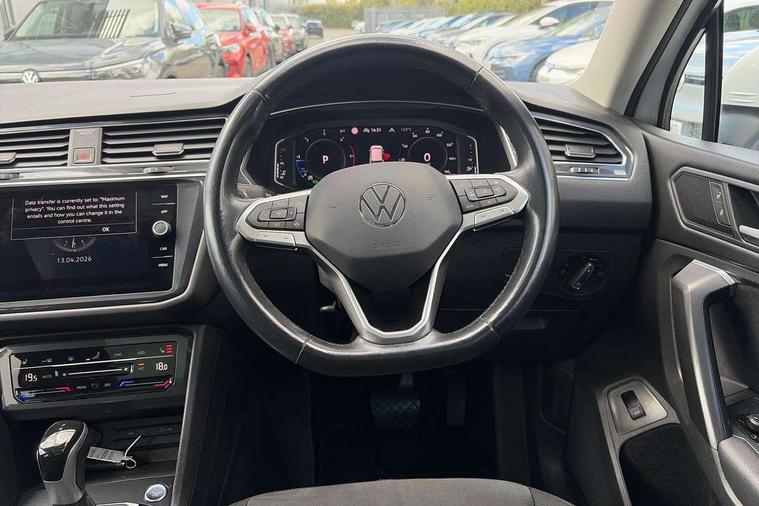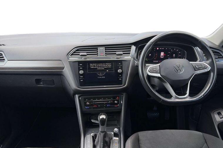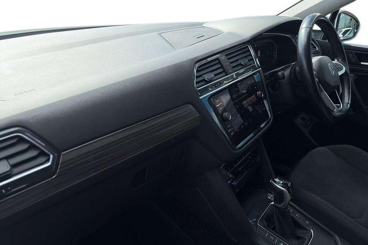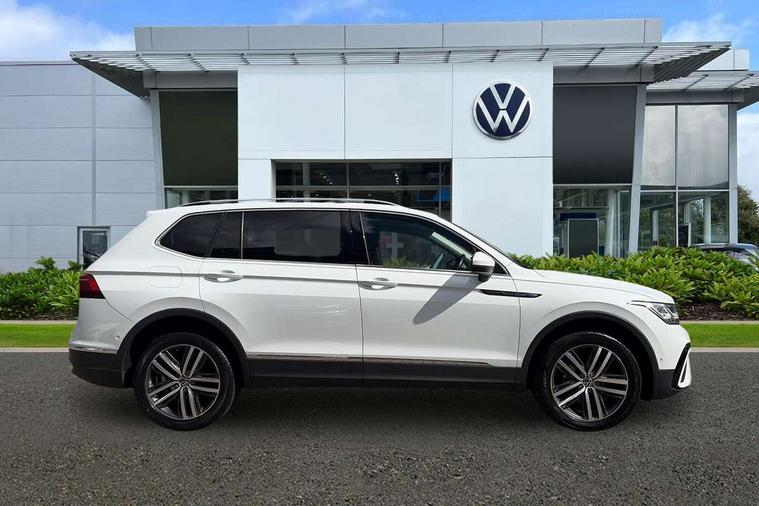 Adaptive cruise control, App-Connect, Digital cockpit pro, Driver alert system, Driver profile selection, Dynamic road sign display, eCall emergency call service, Electric boot lid, Lane change system side assist and rear traffic alert, Lane keeping system Lane Assist, Mobile phone interface comfort with inductive charging feature, Multifunction front facing camera, Power assisted speed sensitive steering, Speedo and rev counter, electronic odometer, trip, service interval display and exterior temperature gauge, Diesel particulate filter, Front wheel drive, Start-stop system with battery regeneration (recuperation - energy recovery during braking), 2 USB-C ports in the front, 1 USB-C charging socket on the center console in the rear, 8 Speakers, DAB Digital radio, Diversity antenna for FM reception, Radio, Auto dimming interior rear view mirror, Automatic headlight control system, Body coloured comfort bumpers, Chrome mouldings on side window, Coming/leaving home lighting function, Exterior badge deletion, Exterior mirror housings painted in silver, Heated windscreen washer jets, IQ light adv HBC, dyn light assist LED matrix headlamps, DH range, dark red LED rear combo light, poor weather, CL, LED headlamp with LED DRL and DCL - PXC, Privacy glass, Rain sensor, Rear fog light, Rear side wing doors, Rear wiper, Silver roof rails, Third brake light, Tilting and sliding panoramic sunroof, 12-volt outlet in centre console rear and luggage compartment, 12V socket in centre console, 3 head restraints in rear, 3 individual folding 2nd row seats, 3rd row 2 individual seats, Air Care Climatronic 3 zone automatic climate control with enhanced air filter and controls in the rear, Door and side trim panel, Drawers under front seats, Driver and front passenger seat height adjustment, Foldable front passenger seat backrest, Front + rear carpet mats, Front centre armrest, Front footwell illumination, Heated front seats, Illuminated scuff plates, ISOFIX anchorage points for mounting 2 child seats on rear seats and i-Size child seats, Leather gearshift handle, Leather-wrapped heated multi-function steering wheel with paddle shift, LED interior light with switch off delay/dimmer and 2 front/rear LED reading lights, Sun visors with illuminated vanity mirrors, Ambience pack - Tiguan Allspace, Driver assistance package - Tiguan Allspace, Easy open and close pack with safelock - Tiguan Allspace, Park assist pack - Tiguan Allspace, 3 point seat belt for centre rear seat, 3 rear three point seatbelts, ABS+EBD+Brake assist, Driver and front passenger safety-optimised head restraints, Driver's and front passenger's airbag with front passenger's airbag deactivation switch, Electronic parking brake, Electronic Stability Control (ESC) inc EDL (Electronic Differential Lock) and ASR (Traction Control), Height adjustable front 3 point seatbelts + pretensioners, Manual rear child locks, Pedestrian monitoring, PreCrash preventive occupant protection Front and rear, Rear disc brakes, Side airbag in front and rear with curtain airbag, Two tone horn, Warning buzzer for seatbelts if unfastened, Anti theft alarm system with interior monitoring, backup horn and towing protection, Anti-theft wheel bolts, Electronic steering lock, Remote central locking with 2 remote folding keys, Chequered flag tinanium decorative inserts,