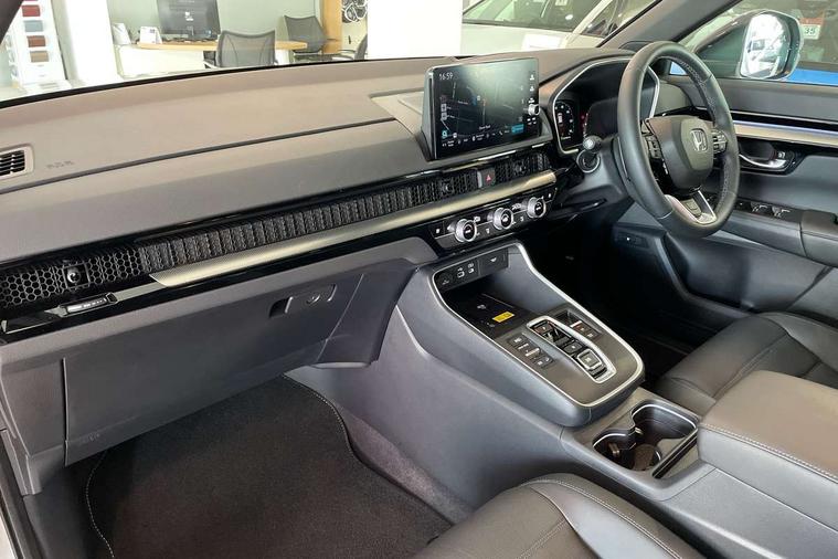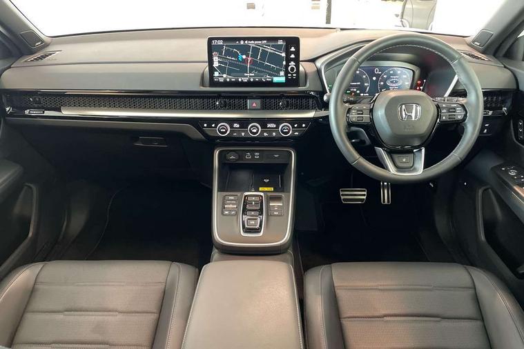 10.2" Multi information display, 4 x front 4 x rear 4 x side parking sensors, Active lane change assist, Adaptive cruise control with Cornering speed assist, Adjustable speed limiter, Agile handling assist, BLIS (Blind Spot Information System) with Cross Traffic Monitor, Bluetooth hands free telephone connection, Crossing traffic warning front, Drive Mode (EV, Econ, Sport, Normal, Snow, Tow), Driver attention monitoring system, E-call, eCall emergency call system, Electric power steering, Emergency stop signalling system, Forward collision warning, Handfree power tailgate with kick sensor and walk away close, Head up Display, HEV mode, Honda 360 sensing, Honda CONNECT navigation with My Honda+ 9" touchscreen, AM/FM/DAB, Apple Carplay and Android Auto, live traffic info, Honda parking pilot, Intelligent speed limiter, Lane change collision mitigation, Lane departure warning system, Lane keep assist system, Lane watch, Lead car departure notification system, Low speed following, Power meter, Road departure mitigation, Traffic jam assist, Traffic sign recognition, Wireless apple carplay, Wireless charging, Adaptive performance damper, Vehicle stability assist, 12 speakers, 1X USB (A/2.5A) and 1x Charger (C/3A) on Front, Bose premium sound system, Centre speakers, DAB+ radio, Dashboard centre speaker, Front tweeters, Rear USB 2x Charger (C/3A), Steering wheel mounted controls, Subwoofer, Active cornering lights, Adaptive driving beam, Auto dimming rear view mirror, Auto headlight adjuster, Auto headlights, Auto wipers, Black door mirror caps, Black paint + exculsive grille, Black Shark-fin antenna, Body colour bumpers, Body colour door handles, Body colour plus black colour roof spoiler, Electrically adjustable and heated door mirrors, Electrically folding door mirrors, Exhaust pipe finisher, Exterior mirror tilt for reverse, Front and rear electric windows, Front LED Indicator lights, Front turn type led with sequential, Headlight auto on/off timer, High gloss black window garnish, LED 3rd brake light, LED daytime running lights, LED front fog lights, LED Headlights, LED rear lights, Multi view camera system in door mirrors, Panoramic opening glass sunroof, Privacy glass, Rain sensor, Rear side wing doors, Rear wiper, Roof rails, Trailer stability assist, Welcome home function, 3 seat bench in 2nd row, 4 way driver lumbar support, 4 way electrically adjustable passenger seat without height adjust, 60/40 split folding rear seat, 8 way electrically adjustable drivers seat + mirror memory, Accessory sockets in Front & Trunk, Air conditioning - Rear vent, Ambient light in roof, Cargo net hooks, Courtesy lights, Dark roof lining, Driver and front passenger seat armrests, Driver/passenger front seatback pockets, Driver/passenger sunvisors and vanity mirrors, Driver/passenger sunvisors with illuminated vanity mirrors, Dual zone automatic climate control, Film layered honeycomb metal interior panels, Footwell ambient interior light front and rear, Front and rear ambient light (door handle&door line) and front cup holder, Front centre armrest, Front map lights, Front ventilated seats, Genuine leather steering wheel, Heated front seats, Heated rear seats, Heated steering wheel, Hybrid emblem, I-Size ISO Fix Points, Instrument panel with garnish wood film, Leather upholstery, Luggage floor box, Meter illumination, Platinum chrome interior door handles, Rear centre armrest, Rear headrests, Rear reading lights, Reclining rear seats, Single front passenger seat, Sport pedals, Sunglasses holder with mirror, Synthetic headrest, Tilt/telescopic adjustable steering wheel, Tonneau cover, Trunk light, Exclusive styling with sport paint pack - CR-V, 5 x 3 point seatbelts, ABS/EBD, Anti-whiplash front headrests, Brake assist function, Collision mitigation braking system, Deflation detection system, Driver airbag, Driver SRS airbag (single stage inflation), Electronic parking brake with auto hold, Front and rear collision mitigation throttle control, Front and rear curtain airbags, Front and rear seat belts with emergency locking retractor (ELR), Front centre airbag, Front passenger airbag, Front side airbags, Hill descent control, Hill start assist, Knee airbags (DR) and (AS), Low speed brake system, Manual child lock in rear doors, Paddle deceleration control, Passenger SRS airbag with cut off switch, Rear side airbags, Honda super locks, Immobiliser, Mirrors and windows key fob operation, Remote central locking with 2 key fobs, Security alarm, Selectable door unlock, Smart entry + Smart start, Tilt sensors, Ultrasonic security sensor, Flat tyre solution temper tyre/repair kit,