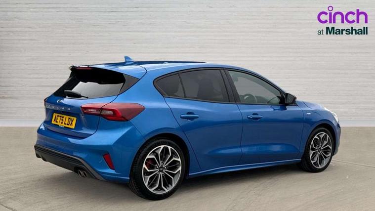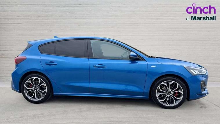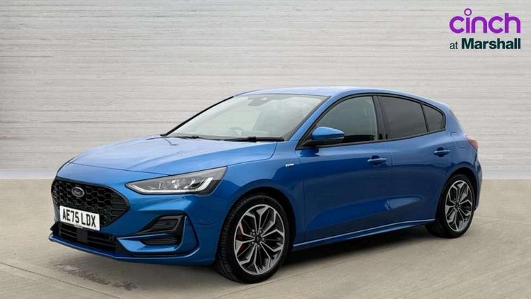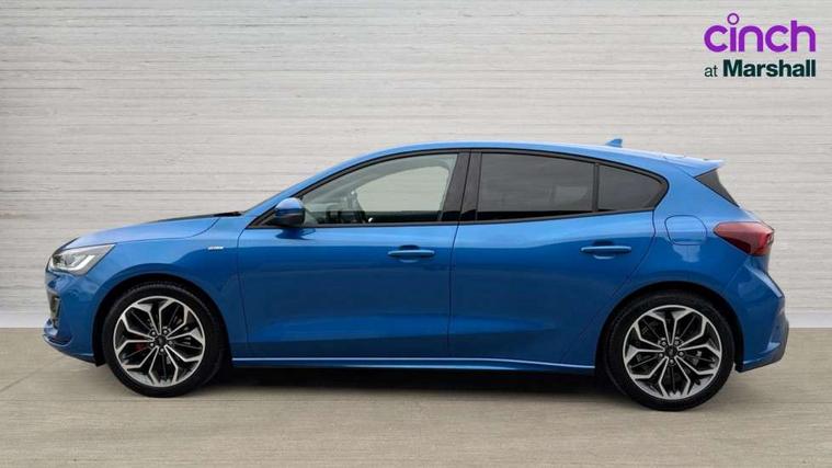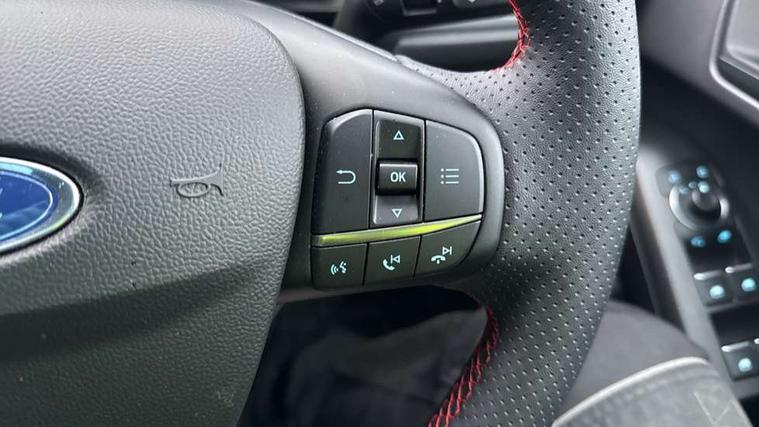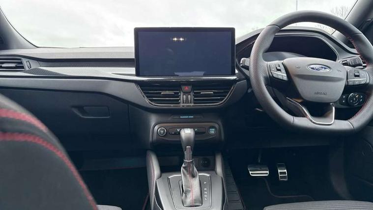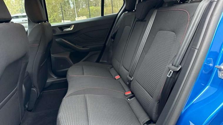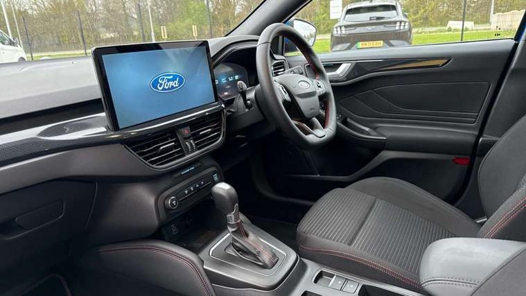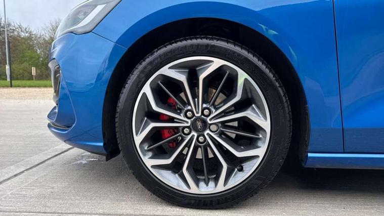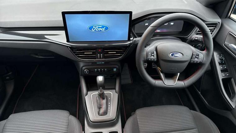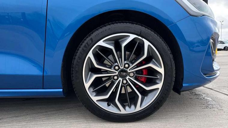 12.3" Digital instrument cluster, Bluetooth system, Digital clock, Easy fuel capless refuelling system, Eco mode, Ford SYNC4 Nav with 13.2'' touchscreen, DAB, Emergency Assistance, Apple Carplay & Android Auto, B&O Premium Audio with 10 speakers, FordPass Connect, Lane keeping system - lane keeping alert and lane keeping aid, PAS, Rev counter, Selectable drive mode, Service interval indicator, Trip computer, Wireless charging pad, Sports tuned suspension, 2 USB ports, Auto headlamps (on/off), Body coloured door handles, Electrically operated front and rear windows with one touch opening and closing, Electrically operated heated power fold door mirrors with puddle lamp with side indicators, Front variable intermittent wipers with electric wash, Heated rear window, LED daytime running lamp, LED rear lamps, LED third brake light, Polished twin tailpipe, Privacy glass, Quickclear heated windscreen, Rain sensor, Rear side wing doors, Tailgate wash/wipe, Unique ST-Line grille, full bodystyling kit, and large body coloured rear roof spoiler, 3 rear headrests, 3 seat bench in 2nd row, Dual zone electronic air temperature control, Full sensico premium upholstery, Height adjustable front headrests, Isofix child seat preparation, Load through ski hatch, Manual 2-way passenger seat adjust, Power 4-way driver seat adjust, with power lumbar adjust, Reach + rake adjustable steering column, Single front passenger seat, ST-Line Design pack - Focus, Winter pack - Focus, 3x3 point rear seatbelts, ABS+Electronic Brake force Distribution, Auto hold function, Driver airbag, EDL traction control, Electronic parking brake, Electronic stability control, Front and rear seatbelt reminder, Front inertia reel height adjustable seatbelts with pre-tensioners, Front passenger airbag, Front side airbags, Passenger airbag deactivate switch, Post collision braking, Pre collision assist with autonomous emergency braking and pedestrian/cyclist detection, Remote/power child rear door locks, Side curtain airbags, Three rear inertia reel lap/diagonal seatbelts, Tyre pressure monitoring system, Keyless entry and keyless start, MyKey system, Remote central locking & engine immobiliser, Thatcham alarm with power door dead locks, 18" 5x3 spoke pearl grey high gloss machined finish alloy wheels with mini spare wheel,