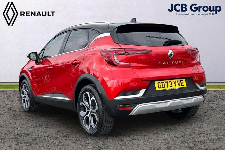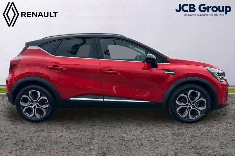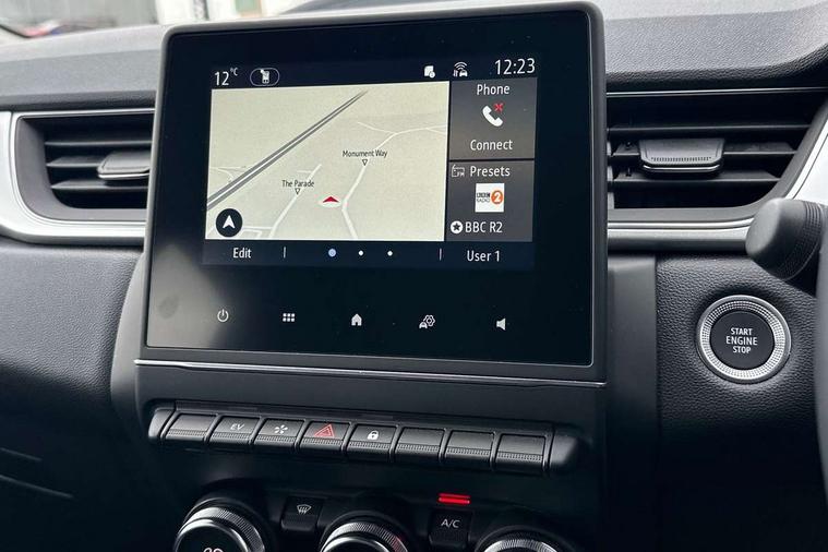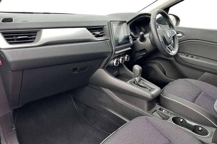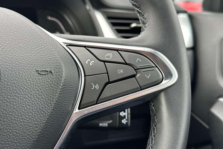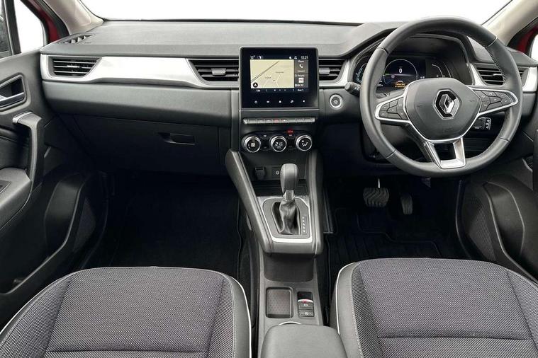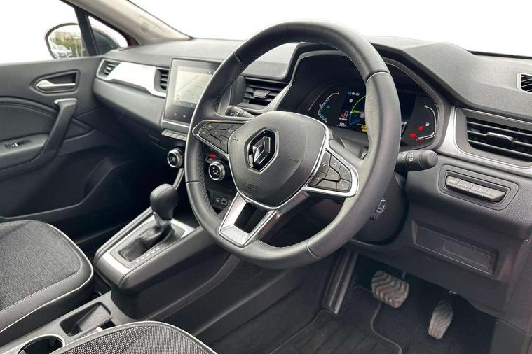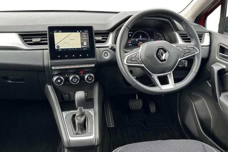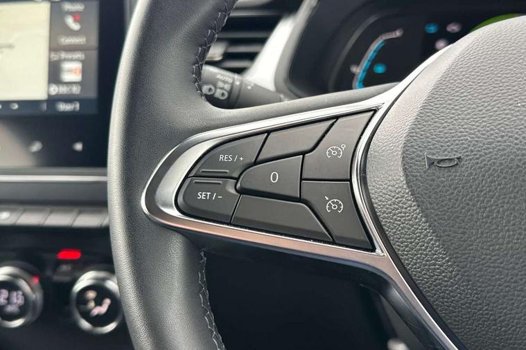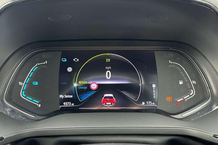 7" TFT Driver information display, Cruise control + speed limiter, EasyLink 7" touchscreen with navigation, google search and traffic information, Eco mode, EV button to activate pure mode, Front and rear parking distance sensors, Gear change indicator, Lane departure warning system, Lane keep assist, Multisense with 3 driving modes + 8 ambient lighting colours, Rear view camera, Renault automatic emergency assist, Smartphone integration compatible with Apple CarPlay and Android Auto, Traffic sign recognition with over speed prevention, Trip computer, Variable assistance power steering, DAB Radio with Bluetooth and USB, 2 reverse gear LED lamps and 1 rear LED fog lamp in the bumper, Auto dimming rear view mirror, Automatic front wipers with rain sensors, Automatic headlights, Automatic high/low beam, Black side door protection with chrome effect, Body colour door handles, Body coloured bumpers, Body coloured door mirrors, C Shaped LED front and rear lighting signatures with 3D effect on the rear lights, Chrome around front air deflectors, on front wing deco element and window lining, Day time running light, Drivers one touch window with anti-pinch feature, Extra tinted glass in rear windows and tailgate, Front and rear electric windows, Front grille with chrome upper trim, Full LED headlights with LED rear lights, Grey front and rear skid plate, LED high level brake lights, LED rear fog lights, LED turn indicators on door mirrors, Longitudinal roof bars, Rear side wing doors, Rear wiper, Shark fin antenna, 12V Accessory socket, 60/40 split and fixed base rear seat bench, Automatic climate control with one touch demist function and air quality regulator, Central rear LED rooflight with 3 reading lights, Front head restraints, Glovebox, Heating system with pollen filter, Height adjustable driver's seat, Height adjustable passenger seat, Height/reach adjust steering wheel, ISOFIX child seat fixing points on rear outermost seats, LED front roof lights, Middle console with armrest and storage, Modular boot floor, Rear air vents, Rear head restraints, Single front passenger seat, Sliding rear bench, Synthetic leather steering wheel, Synthetic leather/cloth upholstery, 3 rear seatbelts, ABS+EBA, AEBS - active emergency braking system, B Brake Mode - One pedal driving with increased regenerative braking, Distance warning alert, Driver and front passenger and 3 rear passengers seatbelt reminder, Driver and front passenger, side, head and curtain airbags, Driver height adjustable seat belt, Electric parking brake with auto hold function, Electronic stability control, Front dash warning indicator in case of heavy braking, Front driver and passenger side airbag deactivation, Hill start assist, Manual passenger airbag deactivation function, Rear door and window child locking function for rear door, Tyre pressure warning light, Anti drill door locks and locking fuel cap, Central door locking, Deadlocking system, Hands free keycard with push button and start/stop function, RAID (Renault Anti-Intruder Device) automatic door locking, Black soft touch dashboard, 18" Pasadena diamond cut alloy wheels with grey inserts,