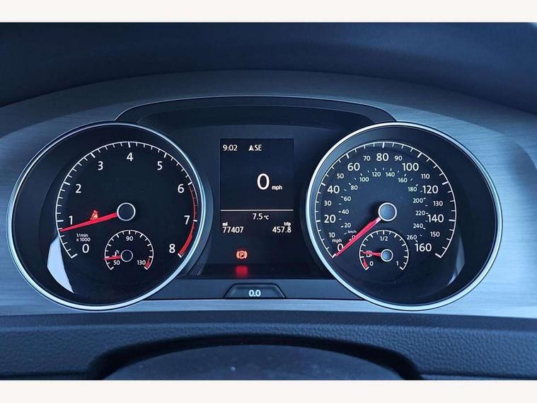 'Lights On' Reminder warning buzzer, ACC - Adaptive cruise control with front assist, forward collision warning, distance monitoring, city emergency brake and speed limiter, Bluetooth Telephone preparation, Brake pad wear indicator warning light, Driver alert system, Driver profile selection, Exterior temperature gauge, Flat tyre indicator, Instrument cluster in white, Low fuel level warning light, Multifunction computer, Oil level gauge, PAS - speed related, Rev counter, Trip and service interval display, Ultrasonic front and rear optical and audible parking sensors, Warning buzzer and light for front seatbelts unfastened, XDS electronic differential lock, CD/MP3/WMA, USB and SD card reader, aux-in, Composition media system, DAB Digital radio, MDI with USB/iPod connection cables, Auto dimming rear view mirror, Automatic coming/leaving home lighting function, Automatic headlights, Black front air intake and radiator grilles, Body colour bumpers, Body colour door handles, Body colour door mirrors with integral indicators, Chrome trimmed radiator grille louvre inserts, Cornering front fog lights, Dusk sensor + auto driving lights, Electric folding door mirrors with puddle lamps, Electric front windows, Electrically adjustable and heated door mirrors, Heated rear windscreen, Rain sensor, Range adjustable headlights, Rear diffuser, Rear roof spoiler, Rear windscreen washer and wiper with interval delay, Reverse activated kerb-view adjustment on passenger's door mirror, Twin exhaust tailpipe, Windscreen wipers/ intermittent wipe + 4 position delay, 12V socket in luggage compartment, 3 rear headrests, 3 spoke steering wheel, 60/40 split folding rear seat, Bag hook in luggage compartment, Boot lashing points, Courtesy light delay, Cover for storage compartment in centre, Driver/front passenger seat height adjustment, Dust/pollen filter, Easy entry slide seats (access to rear seats), Front centre armrest with storage box and rear air vents, Front reading lights, Front seat back storage pockets, Grab handles, Height/reach adjust steering wheel, Illuminated vanity mirrors, Isofix preparation for 2 rear child seats, Load through provision with rear centre armrest and cupholders x2, Lockable, illuminated, cooled glovebox, Luggage compartment cover, Luggage compartment lighting, Multifunction leather steering wheel with leather gear knob/handbrake grip, Passenger underseat drawer, Rear reading lights, Storage box in luggage compartment, Storage compartment in roof console with cover, Storage compartments in doors, Variable boot floor, height adjustable and removable, White adjustable panel illumination, Winter pack - Golf, 3 point height adj front seatbelts + pretensioners, 3 rear 3 point seatbelts, ABS, Automatic post collision braking, Door open warning reflectors, Driver/Front Passenger airbags, Driver/Passenger whiplash optimised head restraints, Drivers knee airbag, Electronic parking brake with auto hold, Electronic tyre pressure monitoring, ESP with EDL + ASR, Front and rear curtain airbags, Front passenger airbag deactivation, Front side airbags, Fuel cut off safety device, Hydraulic Brake Assist (HBA), Pre crash system, Warning triangle and first aid kit holder, Alarm with interior protection, Electronic engine immobiliser, Remote central locking with 2 remote folding keys, Brushed dark silver decorative inserts in dash and door panels, Chrome air vent surrounds, Chrome-plated light switch surround, Steel space saver spare wheel,