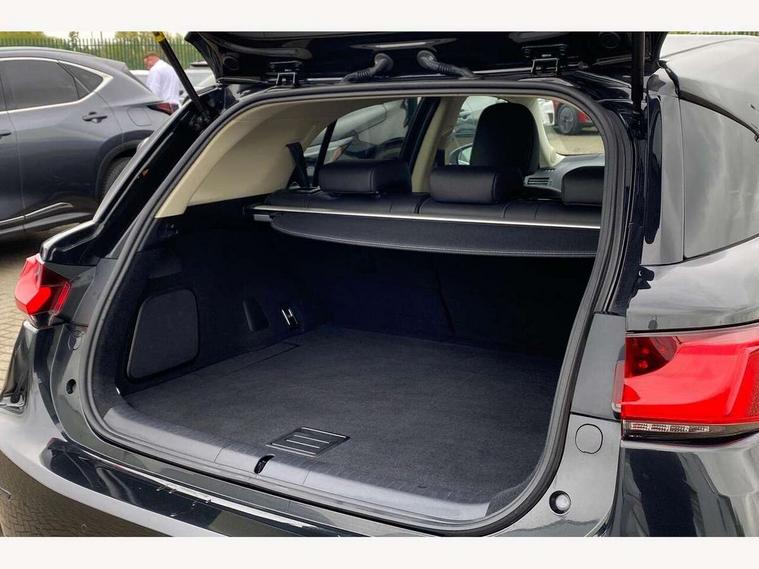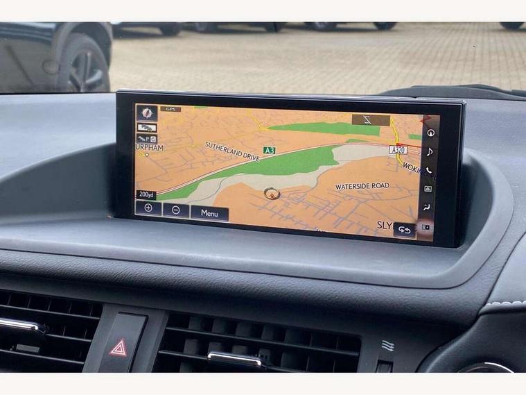 Bluetooth mobile phone connection, Digital clock, Drive mode selector, EPS with speed sensitive steering, Lexus Navigaton System, Lexus safety systems+ Dynamic radar cruise control, pre-collision system, lane keep assist, road sign assist, automatic high beam, Push button starter, Rear parking sensors, Reversing camera, Trip computer, Vehicle Dynamics Integrated Management, Vehicle Stability Control (VSC), 2 USB ports, 4.2" thin film transistor, AUX socket with VTR compatibility, DAB Digital radio, Lexus media display with 6 speakers, 7" display screen, CD and rotary dial controller, Black scuff plates, Body colour bumpers, Front and rear one-touch automatic power windows equipped with a jam protection, Halogen headlights, Heated and electrically folding outside mirrors with turn indicators and puddle light, LED brake lights and rear lights with emergency brake signal, LED daytime running lights, LED front fog lamps, Rain sensor windscreen wipers, Rear spoiler, Rear wiper, 2 cup holders in the front and rear centre console, 2 map pockets in the rear of the front seats, 2 x coat hooks in the rear, 2 x sun visors with vanity mirror and lamp, 4 x tie down hooks in the boot, 60/40 split folding rear seat, Card holder installed in drivers sun visor, Driver 6-way manually adjustable front seat, Driver and passenger door pocket, Dual zone climate control, Fabric upholstery, Front and rear head restraints, Front and rear textile carpet mats, Front centre armrest with storage, Front glove box with lock, Manually reach and rake adjustable leather steering wheel, Multifunction steering wheel, Passenger 4-way manually adjustable front seat, Storage tray under the deck board boot + storage location for tonneau cover, Sunglasses storage by interior rear view mirror, Whiplash lessening front seats, 2 x Isofix child rear seat restraints, 3 point ELR front seatbelts with pretensioners, ABS, BAS (Brake Assist System), Driver and front passenger 2 stage airbag, Driver and front passenger knee airbag, Driver and passenger side airbags, ECB (Electronically Controlled Brake System), Electronic brake force distribution, Front and rear curtain airbags, Hill assist control, Passenger airbag cut-off device, Three 3 point rear seatbelts, Traction control, Tyre pressure warning, Anti-theft system with siren, intrusion sensor, tilt sensor and immobiliser, Locking wheel nuts, Remote central locking, Two motion door lock with double lock, VIN Window etching, 17" Alloy wheels, Space saver spare wheel,