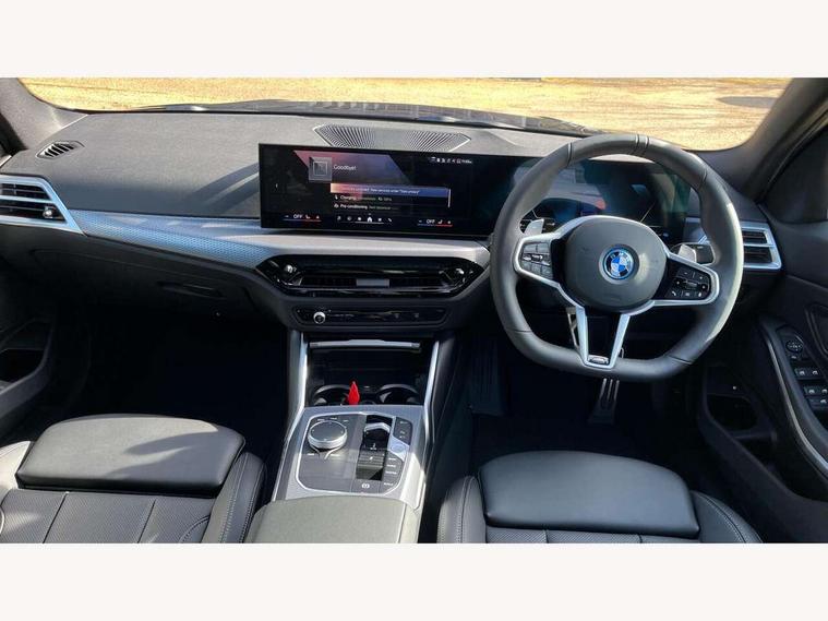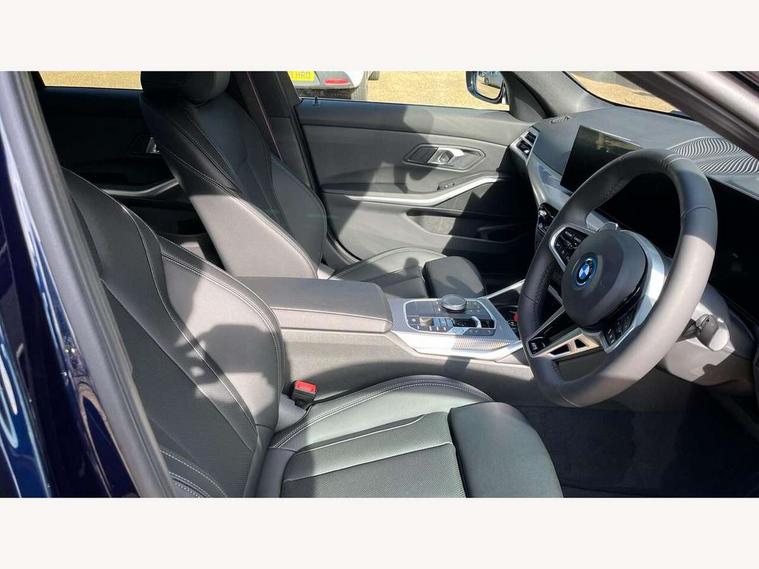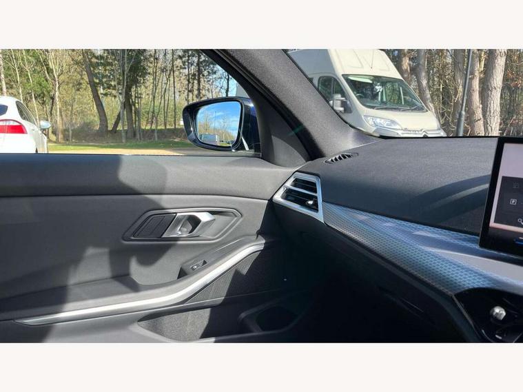 Active guard plus, Attentiveness assist, Automatic Start/stop button, Bluetooth Wi-Fi interface, BMW iDrive, BMW Teleservices, ConnectedDrive Services - last state call, Intelligent voice assist, 2 USB, 4G LTE connect, Live cockpit plus with Navigation + 12.3" instrument display + 14.9" display, Intelligent voice assist, 2 USB, 4G LTE connect, Oil sensor for level and grade, Personal e-SIM, Shifting point display, Double joint spring strut front axle, Electronic differential lock control (EDLC), Fuel tank breather system, Plug and charge, Public mode 3 professional fast charging cable with 5m length, Steptronic Sport automatic transmission with steering wheel mounted gearshift paddles launch control and xtreme drive lever control, DAB tuner, Auto dimming rear view mirror, Automatic headlight beam throw control with load dependent regulating reaction, dynamic compensation of braking dive and acceleration squat, Bi-LED Low and high beam headlights, BMW emblem, engine compartment lid and tailgate, Body colour roof fin, Door sill strips, Electric windows - front and rear, with open/close fingertip control, anti-trap facility and comfort closing, Fading support, Follow me home headlight function, Front and rear bumper system with replaceable deformation elements, Front apron plastic in body colour, Fuel filler flap - right rear in body colour, Heat protection glazing on front windows and windscreen, High gloss chrome kidney frame with high gloss black kidney struts, LED 3rd brake light, LED daytime running lights, LED rear lights, LED turn indicator, Licence plate panel integrated into front bumper and tailgate, M high gloss shadow line exterior trim, Matt black B-pillar finsher, Matt black window recess cover, Model designation on right side of tailgate, One piece front bumper cover including towing eye cover in body colour, Rain sensor with automatic headlight activation, Rear boot, Rear side wing doors, Reversing lights, Side frame decorative moulding black matt, Trailer stabilisation logic, Visible exhaust tailpipe finisher, Welcome lights in interior and door handle area, Windscreen washer jets, 12V power socket in front storage compartment, 2 front cupholder in centre console with clamping elements and matt black inlay, 3 seat bench in 2nd row, 3 spoke M Sport multifunction flat bottom leather steering wheel, 3 zone automatic air conditioning, 40:20:40 split folding rear seat with loading system, Anthracite headlining, Armrest integrated in front and rear door trim + front centre console armrest, Battery in luggage compartment, BMW ID, Cruise control operation in steering wheel, Driving experience mode switch, Folding rear centre armrest with 2 cupholders, Front and rear headrests, Front and rear velour floor mats, Front reading light, Heated front seats, Height adjustable mechanically and infinitely variable steering column, Illuminated armrest storage compartment, Illuminated glove compartment, Illuminated luggage compartment, Lashing eyelets in luggage compartment, Single front passenger seat, Sunvisors with illuminated vanity mirrors and ticket pocket, Through load system, Toolkit located in luggage compartment, Connected pack professional - 3 Series Saloon/Touring, Interior and exterior mirror pack - 3 Series Touring/Saloon, M sport exterior styling pack - 3 Series Saloon/Touring, Parking assistant pack - 3 Series, 3x3 point rear seatbelts, ABS, Automatic Stability Control (ASC), BMW emergency call, Child locks on rear doors, Cornering brake control, Crash sensor activating of airbags, Unlocking doors, hazard warning lights, interior light, safety battery terminal, Drive-off assistant, Driver and front passenger with seat occupancy detection for driver's and passenger side, Driver and passenger side airbags, body protection at side and airbags deploy from seat backrests, Dry braking, DSC - Dynamic Stability Control, Dynamic brake control, Dynamic Traction Control - DTC, Electric parking brake including automatic hold function and automatic release of the parking brake when driving off, Front airbag deactivation, Front airbags for driver and front passenger, Head airbags in 1st and 2nd row, head protection at side, curtain airbags open from headliner above 1st and 2nd row, Plastic fuel tank, Side impact protection, Tyre pressure sensors, Ventilated front and rear disc brakes, Warning triangle and first aid kit, Alarm system, Centre lock switch, Closing system with central locking, Electronic vehicle immobiliser, Locking wheel bolts, Tyre repair kit,