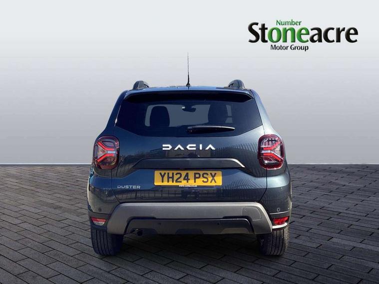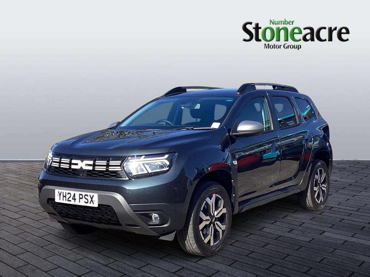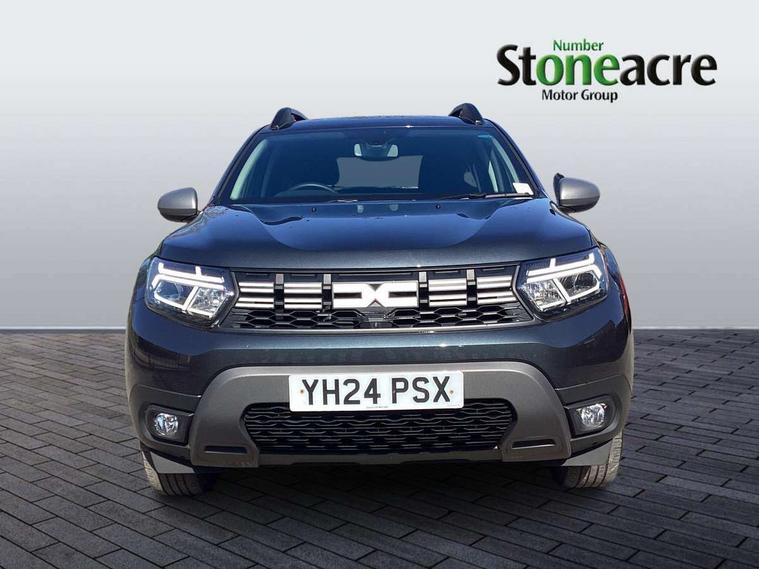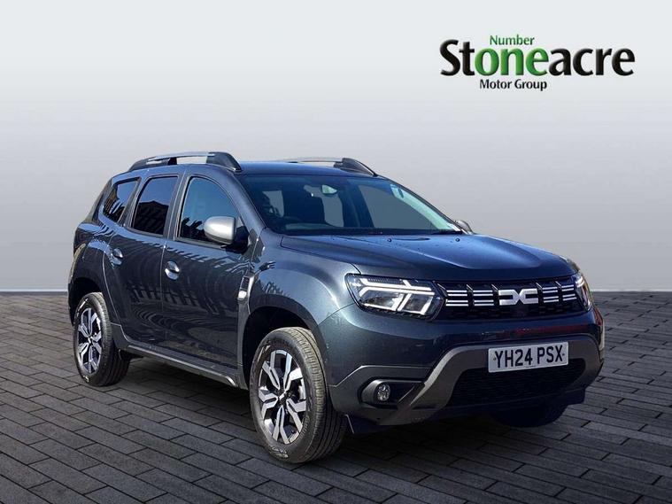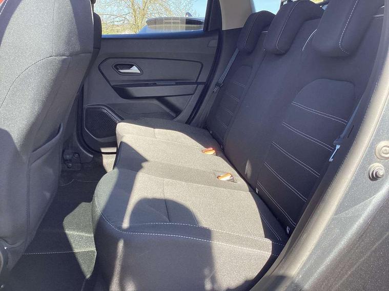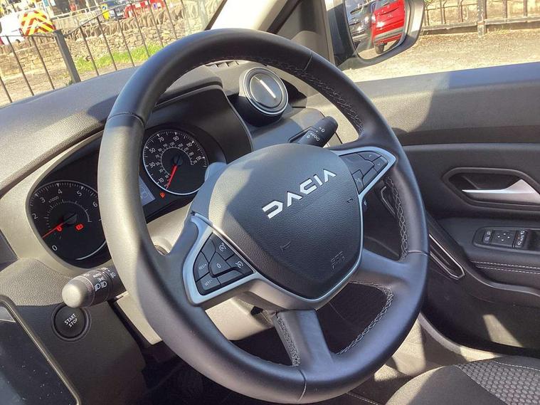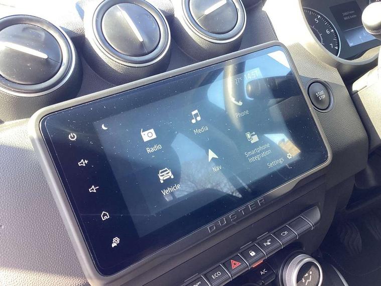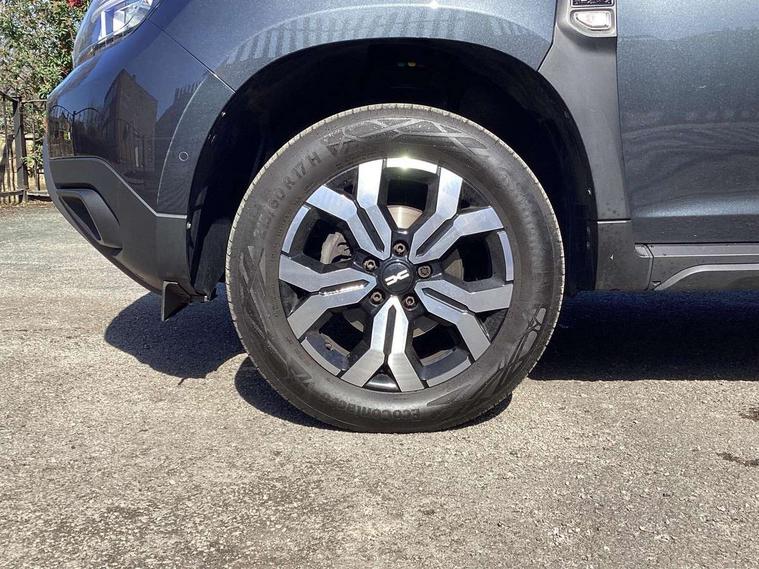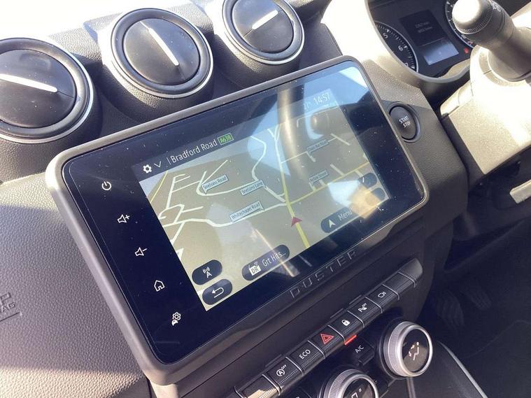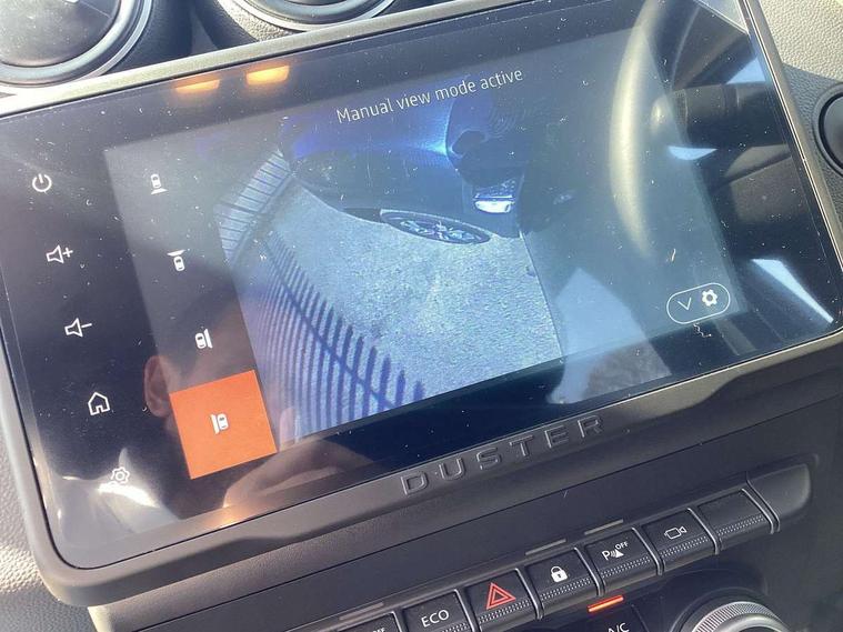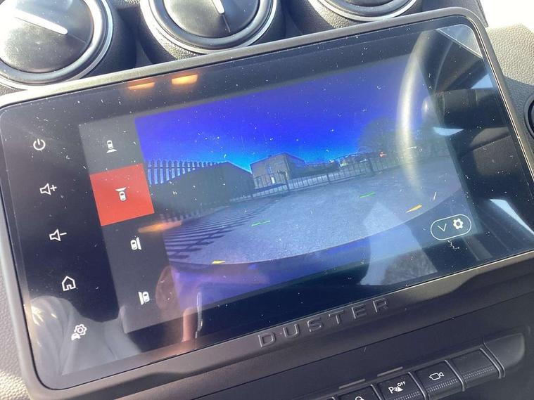 Blind spot warning, Cruise control and speed limiter, eCall emergency system, Eco mode, Electric power assisted steering, Multi view camera, On board computer, odometer, trip computer, average fuel consumption, average speed, service indicator, outside temperature gauge, Rear parking sensors, Rev counter, Reversing camera, Stop/start system, 8" Media Navigation with wireless smartphone replication, Dacia plug and radio/MP3/USB/bluetooth/DAB/steering wheel control, 3 speed windscreen wipers, Acoustic windshield, Automatic front wipers, Black side sills, Black/satin chrome tailgate trim with Duster inscription in black background and lettering, Body coloured door handles, Chrome front grille with hot stamping, Chrome logo surround on steering wheel, Dark glass on lateral rear windows, Daytime running lights, Drivers window one touch up/down, Dusk sensor, Electric adjustable/heated door mirrors, Electric folding door mirrors, Electric front windows, Electric rear windows, Front and rear body coloured bumpers, Front door sill protection strip, Front fog lights, Grey quartz longitudinal roof bars with Duster inscription, Heated rear window, High level third rear brake light, Modular roof bars, Rain sensor, Rear side wing doors, Rear spoiler, Rear wash/wipe, Satin chrome door mirrors, Underbody protection skid plates, Y shaped LED headlights with rear LED lights, 3 rear height adjustable headrests, 3 seat bench in 2nd row, 60/40 split folding rear seat, Automatic air conditioning, Backlighted steering wheel buttons, Boot light, Driver seat lumbar adjustment, Fabric decorative insert on door panels, Fabric upholstery, Front head restraints, Front passenger reading light, Gear shift indicator, Glovebox light, Heated seats, Height adjustable driver seat, Height adjustable front and rear headrests, Height and depth adjustable steering wheel, High centre console with driver armrest, Isofix points for child seats in both outer rear seats, Map pocket on front seat backs, Passenger sunvisor with vanity mirror, Rear passenger reading light, Satin chrome gear lever cap insert, Satin chrome interior door handles, Satin chrome lower steering wheel insert, Single front passenger seat, Soft feel leather steering wheel, 3x3 point rear seatbelts, ABS and Emergency brake assist, ASR traction control with Electronic stability control, Child locks on rear doors, Door open visual and audible warning, Driver airbag, Driver and passenger seatbelt not fastened - visual and audible warning, EBD - Electronic brakeforce distribution, Front passenger airbag, Front passenger airbag deactivation, Front seatbelt pretensioners, Front side airbags, Height adjustable front seatbelts, Hill start assist, Tyre pressure monitor, Keyless entry, Remote central locking, Thatcham approved engine immobiliser, Charcoal grey central console surround, Matt black central console fascia, Matt black decorative insert on rear door panels, Piano black decorative insert on front door panels, Satin chrome air vent surround, Satin chrome instrument dial surrounds, 17" Alloy wheels,