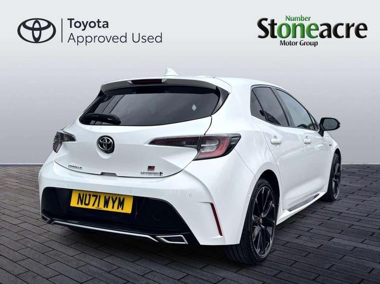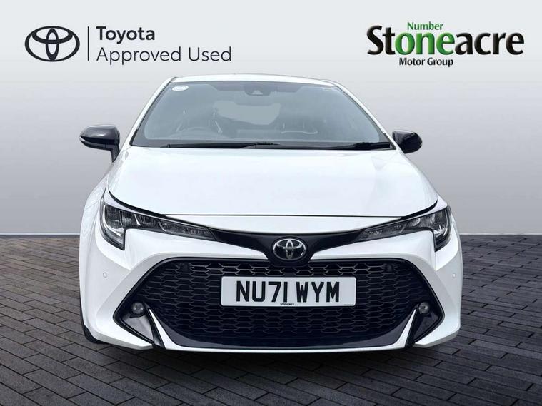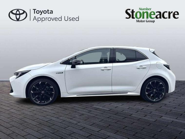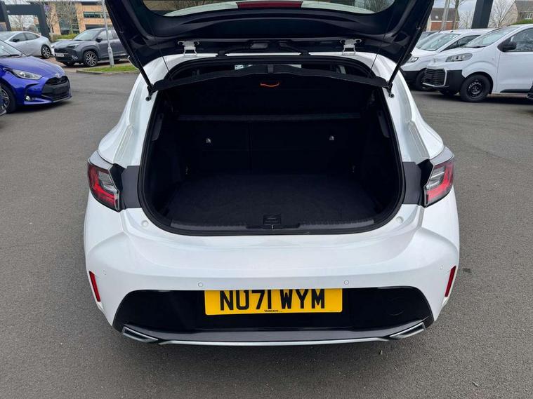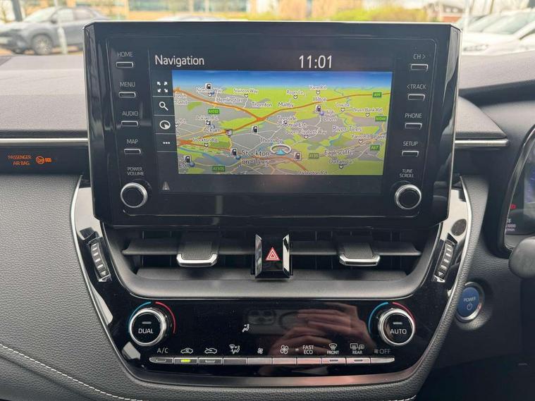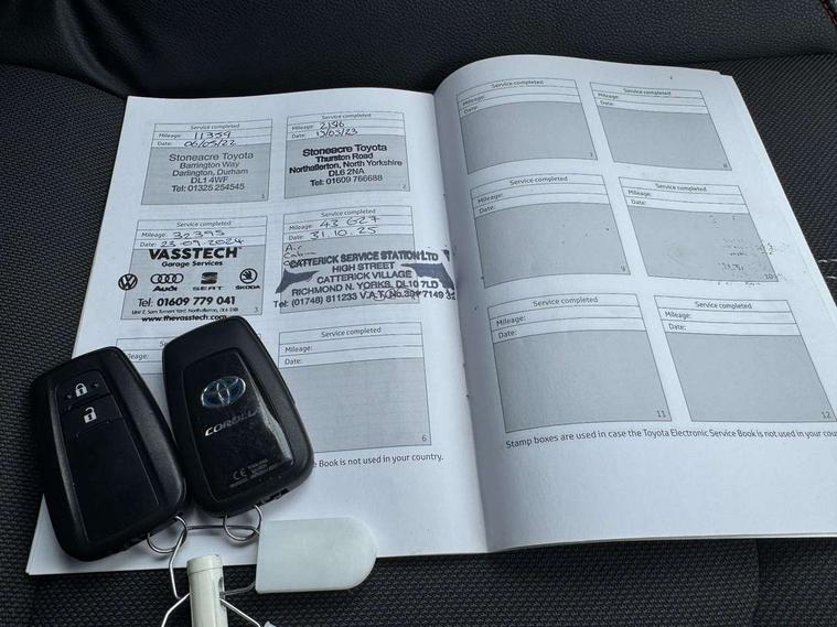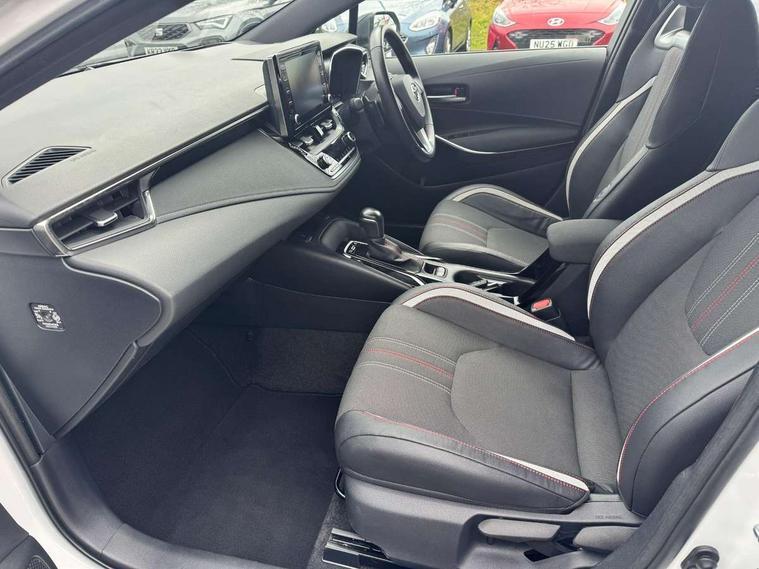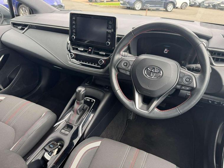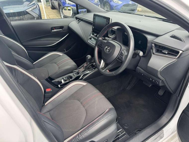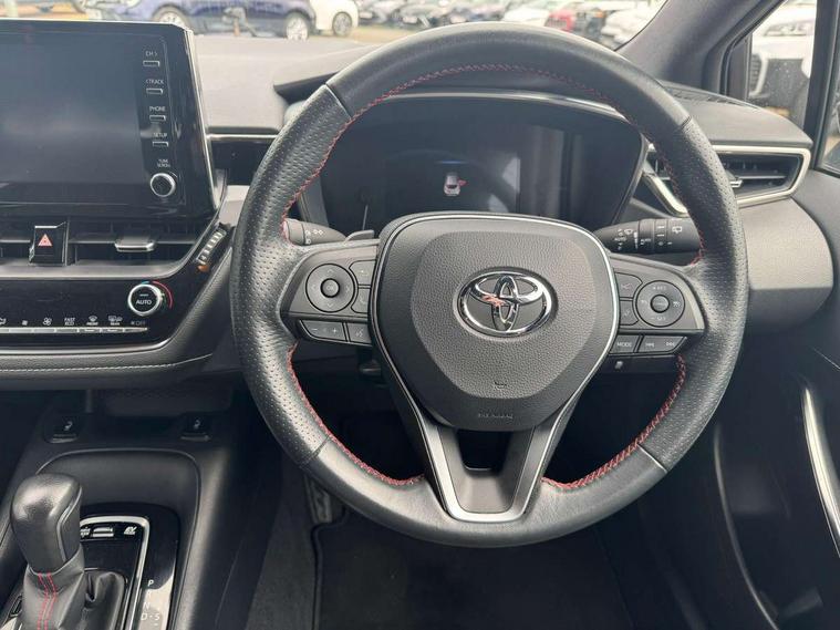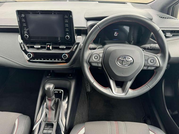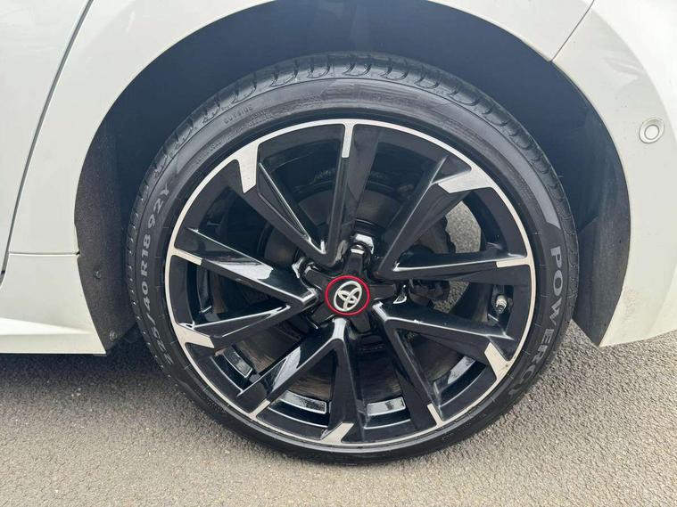 7" Multi information display screen, Bluetooth telephone connectivity, Connected car functionality upgrade, tracker, remote status and e-care, E-call, Electrically assisted power steering, EV drive indicator, Head up Display, Intelligent park assist, Lane Departure Alert (LDA) switch on steering wheel, Memory on adjustable speed limiter, Push button start, Reversing camera, Smartphone integration with Apple CarPlay and Android auto, Gasoline particulate filter, Vehicle Stability Control (VSC), 6 speakers, 8" Touchscreen with MM19 Multimedia system and voice recognition, AM/FM radio, DAB Digital radio, Toyota touch 2 with go navigation system, USB and Aux in connectors + 12V front outlet, Anti-jam protection on power windows, Auto dimming inside rear view mirror, Auto up and down function on all power windows, Automatic folding mirrors, Automatic headlights with high beam assist, Black toyota logo in front, Black window frames, Body colour rear spoiler, Body coloured bumpers, Body coloured door mirrors, Body coloured outside door handles, Follow me home headlights, LED daytime running lights, LED front fog lights, LED Headlights, LED High mounted stop light, LED rear combi lights with LED lightguide, Piano black surround on lower front grille with dark chrome mesh effect, Power adjustable heated door mirrors, Power front windows, Power rear windows, Privacy glass, Rain sensing wipers, Rear bumper with satin chrome plated inserts, Rear window defogger, Rear window wiper, Reverse tilting door mirrors, Shark fin antenna, Time adjustment on intermittent wiper, Turning signal integrated indicators in door mirrors, Unique lower skirt, Unique side rocker with black insert, UV-filter on driver and passenger windows, 3 rear headrests, 3 spoke leather steering wheel + gear knob, 60/40 split folding rear seat, Adjustable speed limiter switch on steering wheel, Alcantara/partial leather upholstery, Audio, multimedia and telephone switches on steering wheel, Boot light, Centre room light, Clean air filter, Driver and front passenger personal light, Driver and passenger assist grip, Driver and passenger seatback pockets, Driver and passenger sun visor with mirror and light, Dual zone automatic air conditioning with ECO mode switch, Dynamic rador cruise control (with RSA) switch on steering wheel, Fabric armrests, Front and rear cup and bottle holders, Front door pockets, Front head restraints, Heated driver and front passenger seats, Illuminated entry system in room lamp, ISOFIX seat fixing (2 fixings on rear outer seats), Leather gear shift with satin chrome on gear shift console, Manual height adjustable for driver and front passenger seat, Paddle shifts, Parcel shelf, Pollen filter, Power adjustable lumbar support on driver seat, Power window switches with satin chrome inserts, Rear armrest with 2 cupholders, Rear passenger coat hooks (2), Satin chrome inside door handles, Shopping bag hooks in luggage compartment, Sliding armrest on centre console box, Slow opening glovebox with lights, Sports seats, Tilt/telescopic steering column, Voice recognition switch on steering wheel, WIL - Whiplash Injury Lessening seats, Parking pack - Corolla, Toyota safety sense 2 pack - Corolla, 3x3 point rear seatbelts, Adjustable driver and front passenger seat belt extender to top anchor point, Anti lock braking system + Electronic brake force distribution, Brake assist function, Downhill Assist Control (DAC), Electronic parking brake, Emergency brake light signal (EBS), Front passenger airbag on/off switch, Front seatbelt reminder, HAC-Hill-start Assist Control, Rear seat belt reminder, Seatbelt pretensioners and force limiters, Supplemental restraint system (SRS) 7 airbags - dual driver, dual side curtain, side impact and driver knee airbags, Traction control, Tyre pressure warning system, Acoustic vehicle alert system (AVAS), Alarm with motion sensor and immobilizer, Remote central locking + deadlocks, Smart entry, Satin chrome dash trim, Soft touch texture on uppder dashboard, Space saver spare wheel, Unique wheel finish with red wheel cap,