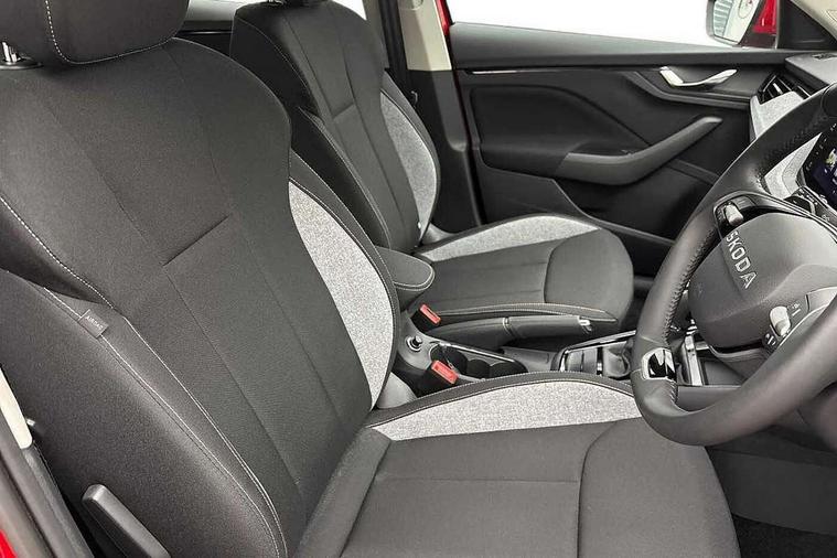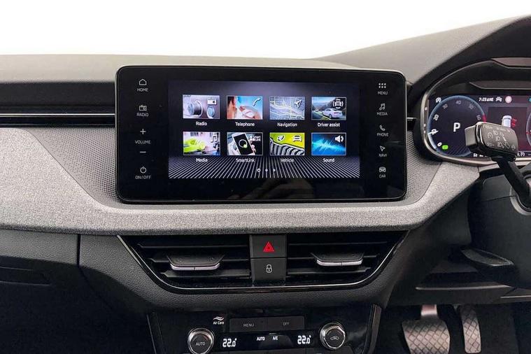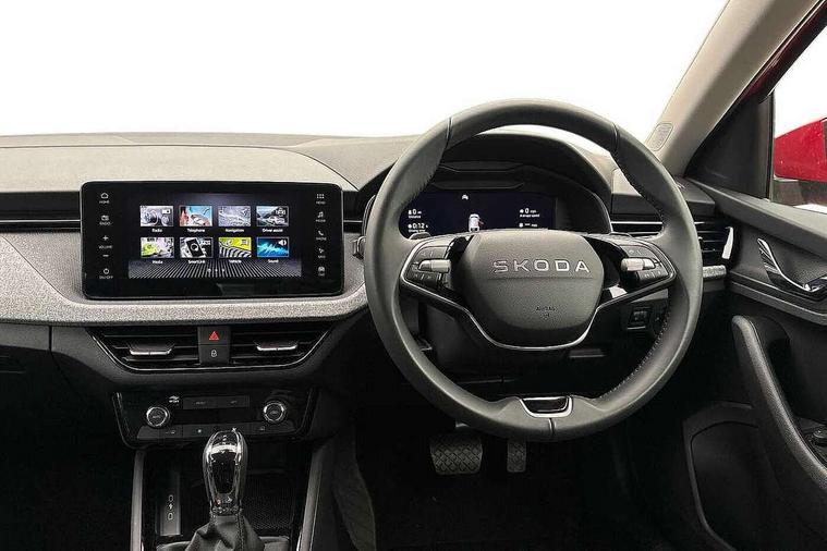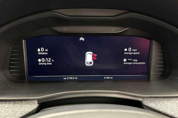 Advanced driver attention and drowsiness monitor, Bluetooth, e-Call (emergency call), Front assist system, PAS, Rear parking sensors, Rear view camera, Speed limiter, Tailgate, Traffic sign recognition, Virtual Cockpit - 10.25" digital display, Voice control system, Wireless smartlink, 4 USB C ports, 8 Speakers, 9.2" Skoda navigation display, DAB radio, Auto dimming rear view mirror, Automatic headlamp activation with Coming home and Leaving home feature, Automatic high/low beam, Body colour bumpers, Body colour door mirrors and handles, Chrome moulding around grille, Front and rear electric windows, Full LED headlights, Heated rear window, LED 3rd brake light, LED brake lights, LED daytime running lights, LED front turning lights, LED high beam, LED low beam, LED taillights, Rear LED fog light, Rear side wing doors, Rear wiper, Tinted windows, Unique dark chrome design logo on alloy wheels, 12V socket in luggage compartment, 3 seat bench in 2nd row, Black / Grey armrest stitching, Black hotstamping, Cargo elements, Chrome inner door handles, Door inserts in satin black, Driver and passenger sun visors with vanity mirror, Dual zone climate control, Front and rear roof lights, Front centre armrest, Front head restraints, Glasses storage in roof liner, Height adjustable driver seat, Height adjustable passenger seat, Ice scraper, Illuminated glove compartment, Inner circulation control with pollen filter, ISOFIX for front passenger seat, Isofix preparation for back seats, Leather gearknob and handbrake lever, Loft cloth upholstery, Luggage net under rear parcel shelf, Manual lumbar support for front seats, Net package and top tether hooks in boot space, Pearl grey ceiling, Pocket on the back of both front seats, incl. mobile phone pockets, Single front passenger seat, Skoda lettering on steering wheel, Textile floor mats, Third rear headrest, Ticket holder, Top tether for front passenger seat, Umbrella in driver's door, 3x3 point rear seatbelts, ABS, Child locks, Curtain airbags and front side airbags, Disc brakes, Driver and front passenger airbags, ESP, Hill hold control, Manual leather parking brake, One tone horn, Passenger airbag switch off function, Seatbelt reminder for driver and front passenger, Tyre pressure monitoring system, Anti theft alarm system with interior monitoring, backup horn and towing protection, Anti-theft wheel bolts, Remote central locking with 2 remote folding keys, SAFE function for remote central locking, Decord pad, door inserts Kota uni,
