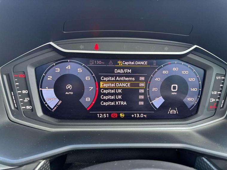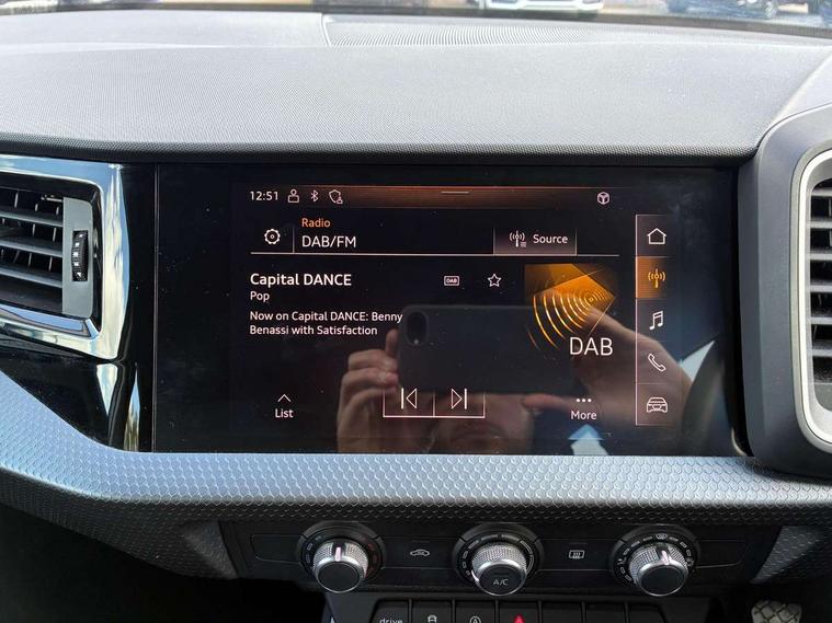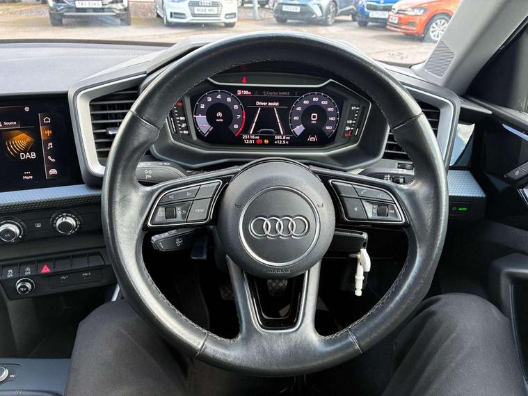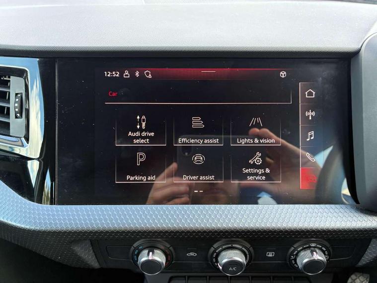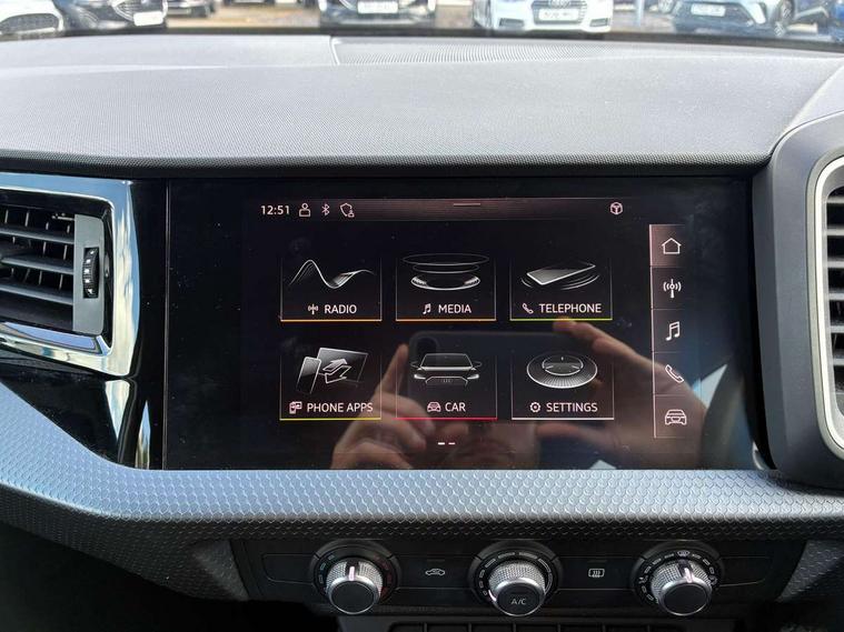 10.25" Digital instrument cluster display classis style instrument dials + speed, odometer, time, outside temperature, telephone menu + fuel level warning, Audi connect safety emergency and service including E-call, Audi drive select - power steering assistance + engine, Audi smartphone interface with connect compatible smartphone via USB directly MMI display + Nav, music, third party apps controlled via MMI controller, Automatic start/stop system, Bluetooth interface, Cruise control, Driver's information system, Electromechanical power steering, Lane departure warning system, Service interval indicator, Speed limiter, Voice control system, Washer fluid level indicator, Dynamic suspension, 1 x SDXC card reader, 2 x USB type C connection points, DAB Digital radio, MMI radio plus with 8.8" colour MMI display screen and MMI touch, Auto dimming rear view mirror, Body coloured bumpers, Body coloured door mirrors, Electric front and rear windows, Electrically adjustable, heated, folding door mirrors with integrated LED side indicator, Front side air inlets in grained matt black and C frame in titanium black, Heat insulating glass windscreen and side windows, Heated rear windscreen, LED headlights with LED rear lights + dynamic rear indicators + headlight adjustment and high beam, turning light + LED daytime running lights, Radiator grille and rear diffuser in matt titanium black, Radiator protective grille frame in matt aluminium silver, Rain and light sensors, Rear fog lights, Rear wiper, Scandium grey tailpipe trim, Side front spoiler lips in grained matt black, 12V socket in centre console with two cup holders, 3 rear seats with headrests, 40:60 Split folding rear seat or folded fully, Door sill trims with aluminium inlay, Driver and passenger seat with manual height adjust with forward and backwards adjustment, Front head restraints, Front/rear floor mats, Height and reach adjustable steering wheel, ISOFIX child seat mounting for front passenger and outer rear seats including top tether attachment point of outer rear seats, Leather gear knob with aluminium trim, Leatherette handbrake grip, Luggage compartment light with front and rear reading lights, Manually adjustable lumbar support in front seats, Novum cloth upholstery with front sport seats, Titanium grey cloth headlining, Luggage compartment pack - A1, 3x3 point rear seatbelts, Audi pre-sense front with pedestrain and cyclist recognition, Brake assist function, Driver and front passenger airbag with front side and head airbags, Electronic Stability Control including ABS, EBD, ASR and EDL, Front and rear seatbelt reminder, Front passenger airbag deactivation switch, Hill hold assist, Seatbelt height adjustment for front seats, Seatbelt monitoring, Tyre pressure warning light, Warning triangle and first aid kit, Anti theft alarm, Anti theft wheel bolts and loose wheel warning, Immobiliser, Remote central locking with 2 foldaway keys, Aluminium trim for control switches, air vents and digital instrument cluster, Silver grey accent areas including air vents, door handle recesses and centre console in diamond paint finish, Slate grey inlays polygon structure in fine paint finish,