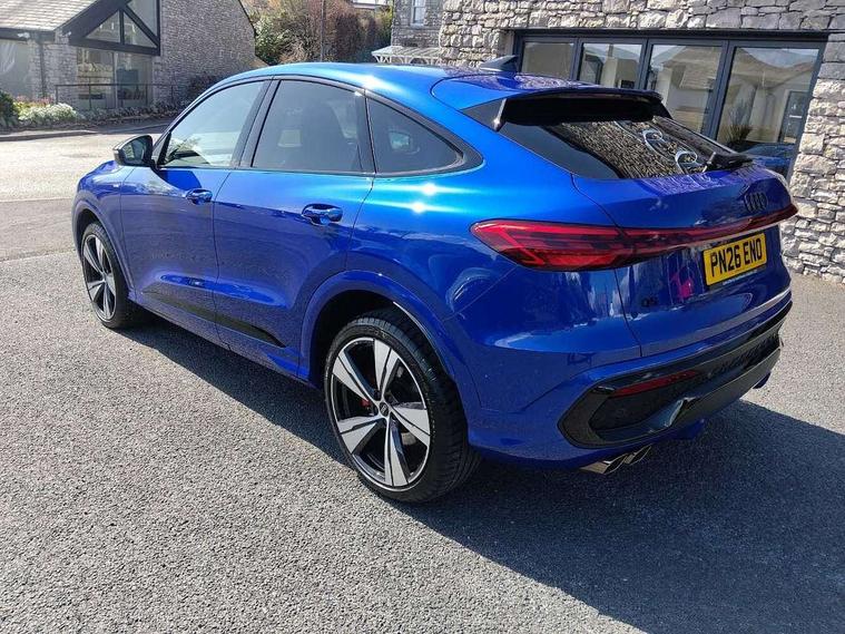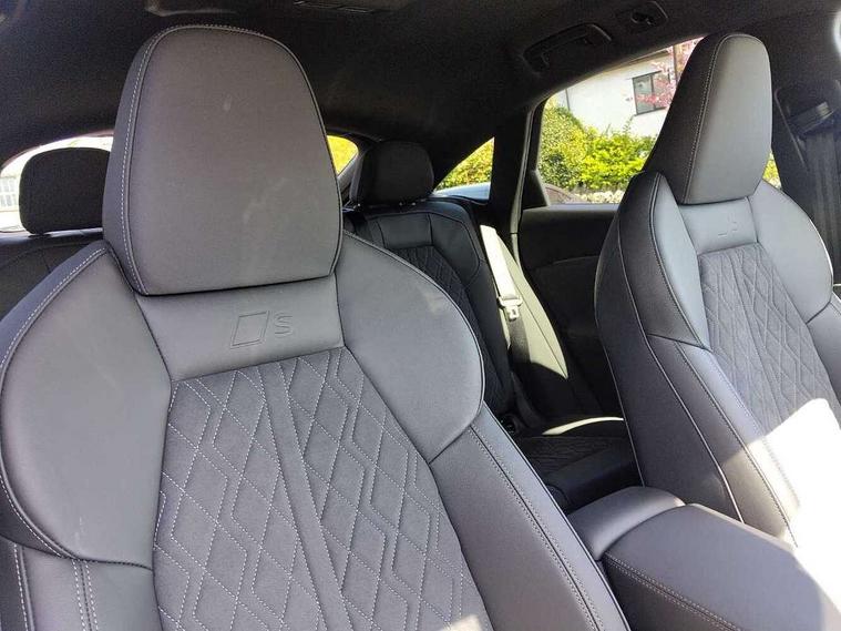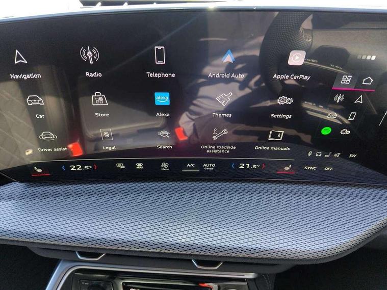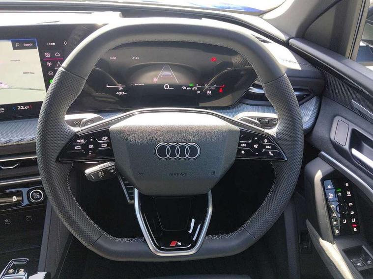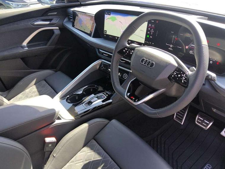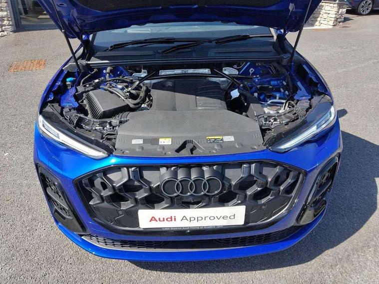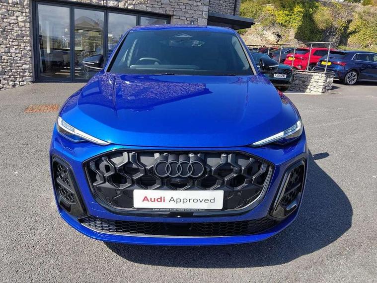 Adaptive cruise assist plus, Attention and drowsiness detection with driver observation, Audi application store, Audi connect emergency call and service, Audi digital key, Audi drive select, Audi smartphone interface, Audi virtual cockpit plus with 11.9" OLED colour display, Camera based traffic sign recognition, Front cross traffic intersection assist, Lane change assistant with exit warning system, rear cross traffic alert and rear turn assist, Lane departure warning with emergency assist, MMI 10.9" front passenger touch display, MMI navigation plus with high resolution 14.5" OLED touchscreen colour display, Park assist plus, PAS, Reversing camera, Swerve assist and front turn assist, Traffic sign based speed limiter, Audi sound system impressive sound with 8 loudspeakers including centre speaker and subwoofer, 6-channel amplifier with a total output of 180 watts, DAB Digital radio, Smartphone compartment with wireless charging, Active digital light signatures - Six additional combinations of active daytime running light signature, All weather light, Auto dimming rear view mirror, Automatic dynamic headlight range control, Dynamic light scenarios of the coming home/leaving home function when stationary, Electrically adjustable heated and folding + automatically dimming exterior mirrors, Exhaust tailpipes in dark chrome, Front and rear electric windows, Front door sill trims with aluminium inlays, illuminated with 'S' logo, Full body paint finish, Grill frame, inlay and front air inlets in matt anthracite chrome, Headlight cleaning system, Heated rear window, High beam assist, High gloss window surrounds, LED daytime running light with 8 digital light signature, LED rear lights pro incl. dynamic rear indicators and illuminated light strip with animated coming and leaving home function, Logo projection light in exterior mirrors, Manoeuvring light, Matrix LED headlights, Memory function for door mirrors, Motorway light, Privacy glass, Projection third brake light for rear window in LED, Radiator grille in phantom black, Rear and side windows with heat insulating glass, Rear honeycombe grille in matt black with inlay in matt anthracite chrome, Rear side wing doors, Rear wash/wipe, S Line badge on the front wings, Static cornering light, Turning light, Windscreen with acoustic glazing, 3 rear head restraints, 3 seat bench in 2nd row, 3 spoke leather steering wheel with multi-function buttons with touch control, flattened on top and bottom, with S badging and contrast stitching, 4 way electric lumbar support for driver and front passenger, Black carpets, Comfort centre armrest front, Deluxe 3 zone electronic climate control, Dinamica microfiber/leather upholstery with diamond stitching, Electrically adjustable front seats with memory function for driver's side, Front and rear floor mats, Front sport seats with integrated head restraints, Headlining in black cloth, Heated front seats, i-Size child seat mounting on the front passenger side and outer rear seats, i-Size and top tether on the outer rear seats, Increased charging capacity for USB ports 2X100 Watts in rear, 2X60 Watts in front, Interior trim in aluminium look, Luggage compartment lid, electrically opening and closing, Manual steering column adjustment, S embossed logo on front sport seats, Single front passenger seat, Softwrap in black, Softwrap in Dinamica, Stainless steel pedals and footrest, Steering wheel grips in perforated leather and shift paddles, Ambient lighting package plus - Q5, Black styling package plus - Q5, Rear seat bench plus pack - Q5, Storage and luggage compartment pack with luggage net - Q5, 3x3 point rear seatbelts, ABS, Acoustic vehicle alerting system, Convenience key with safelock, Driver and front passenger airbag with passenger airbag deactivation, Electric child safety locks, First aid kit with warning triangle and high visibility vests, Front emergency brake assist, Hill hold assist, Proactive passenger protection system for front, sides and rear, Rear seat occupant reminder, Red brake calipers, Side airbags in front and rear with head airbag system and front interaction airbag, Tyre pressure loss indicator, Anti-theft wheel bolts, Thatcham approved category 1 anti theft alarm, Black dashboard with contrast stitching, Upper and lower interior elements in dinamica microfiber, Tyre repair kit,