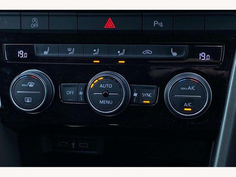 'Lights On' Reminder warning buzzer, Adaptive cruise control with front assist, radar sensor controlled distance monitoring, city emergency braking, Automatic start/stop system, Bluetooth telephone and audio connection for compatible devices, Car information display, Driver tips and journey analysis, Emergency call service, Lane assist with warning text instrument cluster, Modified key software - reduce switch off time for key status change to Long no motion, Multifunction computer with visual gear change recommendation for fuel consumption, Service interval indicator, Think blue trainer driver tips and journey analysis, Voice activation, Wireless app connect for apple carPlay, Battery regeneration during braking, Centre arm rest including USB type C interface and USB charging socket, DAB Digital radio, Diversity antenna for FM reception, Front USB type C Interface 2X and USB charging socket, Music playback - MP3, WMA and AAC files, Premium USB cable in choice of either Apple or Android smartphone compatibility, SD card slot, Simultaneous pairing of 2 compatible mobile devices, Single CD player, glovebox mounted, SMS functionality - read, compose and send SMS messages using touch-screen display, Storage compartment with longitudinal and height adjustable in armrest and two rear air vents, Title and cover art display, Auto dimming interior rear view mirror, Automatic hazard lights activation under emergency braking, Black grained lower door protectors, Black grained wheel arches, Body colour bumpers with silver metallic underbody fascia, Body colour door handles, Chrome trim on upper and lower radiator grille, Dusk sensor, Electrically foldable, adjustable and heated door mirrors with puddle lights and reverse activated kerb-view adjustment on passenger's door mirror, Front and rear electric windows, Front windscreen wiper with intermittent wipe and 4 position delay, Fully galvanised body, Heated rear window, High level 3rd brake light, LED rear number plate lights, Manual coming/automatic leaving home lighting function, Rain sensor, Rear wash/wipe with intermittent wipe setting, Volkswagen roundel, 2 front reading lights, 3 rear head restraints, 4 load lashing points in luggage compartment, Climate control - 2 zone electronic air conditioning with automatic air recirculation and allergy filter, Drawer under drivers seat, Front cupholders x 2, Front seat back storage pockets, Glovebox, Height adjustable front seats, Height/reach adjust steering wheel, Illuminated vanity mirrors, Instrument lighting, white adjustable panel illumination, Interior light delay, Isofix easy fit child seat preparation for 2 outer rear seats, Load through provision with single cup holder when folded down, Luggage compartment cover, removable, Luggage compartment lighting, Split folding rear seat backrests with centre armrest, Storage compartment in left and right luggage area, Storage compartment in rear doors, Storage compartments in driver and front passenger doors, 3 rear three point seatbelts, ABS, Curtain airbags, Driver and front passenger safety-optimised head restraints, Drivers and front passengers airbags with passengers deactivation switch, Drivers seatbelt reminder, Electronic parking brake with auto hold, Electronic stability control (ESC) includes ASR, EDL, EDTC and trailer stabilisation function, Front seat side impact airbags, Predictive pedestrian protection, Rigid safety cell with front and rear crumple zones, Three point height adjust front seatbelts + pretensioners, Tyre pressure loss indicator, Ventilated front and rear disc brakes, Volkswagen roadside assistance, Alarm with remote central locking and interior protection, Electronic engine immobiliser, Remote central locking with 2 remote folding keys, Limestone grey decorative inserts in dash and door panel,