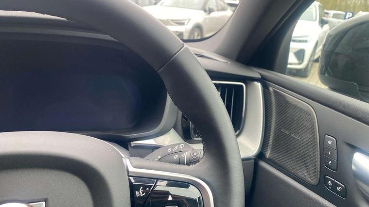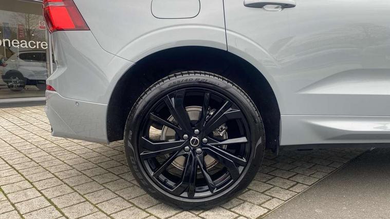 11.2" centre console touch screen, 12.3" Progressive Driver Display, 360 degree surround view parking camera with side proximity sensors, Adaptive cruise control, Adjustable steering wheel force, Android auto (Wired), Apple carplay (wired), Bluetooth handsfree system, Driver alert control with lane keeping aid, Emergency services call system, Front and rear park assist, Google Automotive Services, Intelligent speed assistance, Oncoming Lane Mitigation, PAS, Power operated tailgate with handsfree opening and closing, Service interval indicator, Speed limiter, Speed sensitive steering, Trip computer, Volvo cars services with app, Volvo on call with App, Wireless/Inductive Mobile Phone Charging, 8 speed automatic transmission with start/stop + manual change functions, DAB Digital radio, Premium Sound by Harman Kardon, dirac unison, dolby pro logic II surround sound, 13 speakers/600W output and fresh air subwoofer, Steering wheel remote infotainment controls, Adaptive brake lights with high level LED brake lights, Auto dimming interior + exterior mirrors, Automatic headlight levelling system, Automatic LED Headlights + Active high beam incorporating daytime running lights, Dark tinted windows for rear side windows and cargo area, Electric adjustable/heated/auto power folding door mirrors, Electric front+rear windows, Front aluminium tread plates, Heated front windscreen, High gloss black door mirrors and window surround, High gloss black front and rear bumper decoratives, High gloss black front grille, Surround, Strikethrough and Ironmark, High gloss black rear model, engine and volvo logo badges, Home safe and approach lighting, Integrated roof rails in high gloss black, Puddle lights, Rain sensor with automatic windscreen wiper activation, Rear side wing doors, Rear wiper, Roof antenna, Roof spoiler, Tinted windscreen, Visible VIN plate, 12V socket in front tunnel console and luggage compartment, 3 seat bench in 2nd row, 3 Spoke tailored steering wheel with chrome trim, 4 Zone electronic climate control, A-pillar parking ticket holder, Air purifier particulate matter (PM) 2.5 filter, B Pillar ventilation, Bright metal luggage scuff plate, Centre console cupholders and storage, Charcoal floor mats, Contour sports seats with nappa soft leather/textile upholstery, Front and rear courtesy lights, Front and rear door pocket illumination, Front cupholder illumination, Front footwell illumination, Front reading lights, Front seat cushion extensions, Glovebox compartment with illumination, Head restraints for all seats, Heated front seats, Heated steering wheel, Height/reach adjustable steering column, Illuminated luggage compartment, Illuminated vanity mirrors + ticket holder, Inner door release handle illumination, ISOFIX attachment on outer rear seats, Load cover, Load protection net, Multi directional lumbar support, Power driver seat with memory + exterior mirrors memory, Power height adjustable passenger seat, Power passenger seat with memory, Rear armrest with cupholder, Rear footwell and front and rear side step illumination, Rear reading lights, Rear seat concealed storage, Single front passenger seat, Tailgate illumination and ambient door lighting, Underfloor stowage compartment, Versatile split folding rear seat - 60/40, Driver assist pack without Adaptive cruise control - XC60, 5 three point seatbelts, City safety with steering support with Pedestrian + cyclist + front collision warning with full auto brake and rear auto brake, Drivers knee airbag, Dual stage driver/passenger airbags, Electronic parking brake with auto hold, First aid kit, Front seats SIPS airbags, Hill descent control - Off-road drive mode, Hill start assist, IC (Inflatable Curtains) - Full Length, Passenger airbag cut-off device, Power child locks on rear doors, Road sign information display, Run off Road Mitigation, Run off Road Protection, Seatbelt reminder and pretensioners, SIPS (Side Impact Protection System), Slippery road and hazard light alert, Stability and Traction Control with Spin control, Engine Drag Control and Corner Traction Control, Tyre pressure monitoring system, Vehicle deceleration control with Anti-lock Brake System, Electronic Brake Distribution and Emergency Brake Assist, Warning triangle, WHIPS whiplash protection system - front, Anti-theft alarm including immobiliser/volume sensor + level sensor, Key integrated remote control central locking + fuel flap with deadlocking system and auto open/close power windows, Keyless Drive (includes Keyless Entry and Keyless Start), Locking wheel nuts, Private locking for tailgate, 21" 5 Double spoke high gloss black alloy wheels, Summer tyres,