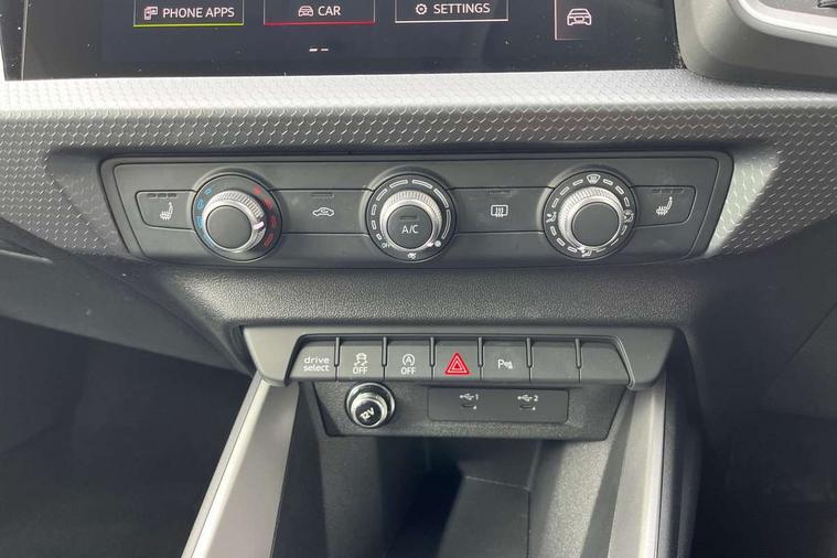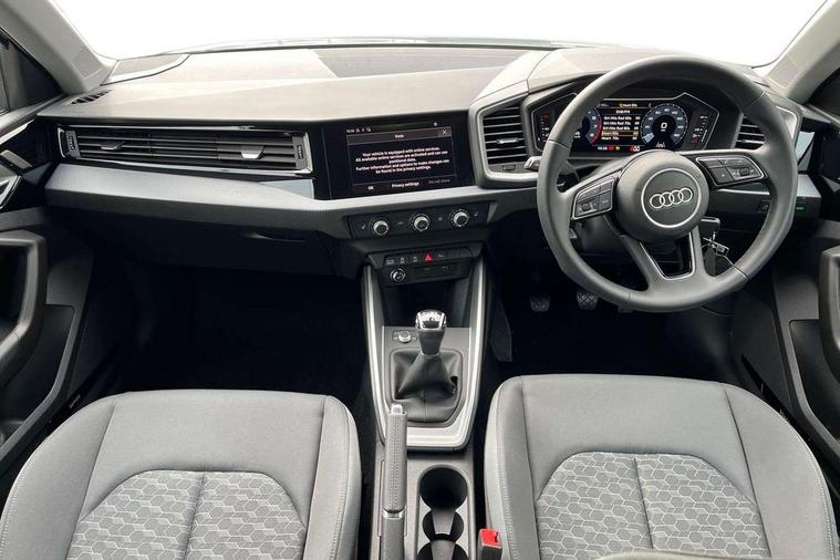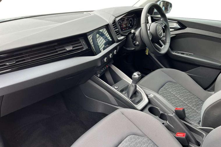 10.25" Digital instrument cluster display classis style instrument dials + speed, odometer, time, outside temperature, telephone menu + fuel level warning, Audi drive select - power steering assistance + engine, Audi smartphone interface with connect compatible smartphone via USB directly MMI display + Nav, music, third party apps controlled via MMI controller, Automatic start/stop system, Bluetooth interface, Cruise control, Driver's information system, Electromechanical power steering, Emergency e-call, Emergency services call system, Lane departure warning system, Service interval indicator, Speed limiter, Voice control system, Washer fluid level indicator, Dynamic suspension, 1 x SDXC card reader, 2 x USB type C connection points, DAB Digital radio, MMI radio plus with 8.8" colour MMI display screen and MMI touch, Auto dimming rear view mirror, Body coloured bumpers, Body coloured door mirrors, Electric front and rear windows, Electrically adjustable, heated, folding door mirrors with integrated LED side indicator, Front side air inlets in grained matt black and C frame in titanium black, Heat insulating glass windscreen and side windows, Heated rear windscreen, High level LED brake light, LED headlights with LED rear lights + dynamic rear indicators + headlight adjustment and high beam, turning light + LED daytime running lights, Radiator grille and rear diffuser in matt titanium black, Radiator protective grille frame in matt aluminium silver, Rain and light sensors, Rear fog lights, Rear side wing doors, Rear wing door, Rear wiper, Side front spoiler lips in grained matt black, 12V socket in centre console with two cup holders, 3 rear seats with headrests, 3 seat bench in 2nd row, 40:60 Split folding rear seat or folded fully, Door sill trims with aluminium inlay, Driver and passenger seat with manual height adjust with forward and backwards adjustment, Front head restraints, Front passenger seat, Front/rear floor mats, Height and reach adjustable steering wheel, ISOFIX child seat mounting for front passenger and outer rear seats including top tether attachment point of outer rear seats, Leather gear knob with aluminium trim, Leatherette handbrake grip, Luggage compartment light with front and rear reading lights, Manually adjustable lumbar support in front seats, Novum cloth upholstery with front sport seats, Titanium grey cloth headlining, Luggage compartment pack - A1, 3x3 point rear seatbelts, Audi pre-sense front with pedestrain and cyclist recognition, Brake assist function, Driver and front passenger airbag with front side and head airbags, Electronic Stability Control including ABS, EBD, ASR and EDL, Front passenger airbag deactivation switch, Hill hold assist, Manual rear child locks, Seatbelt height adjustment for front seats, Seatbelt monitoring, Tyre pressure warning light, Warning triangle and first aid kit, Anti theft alarm, Anti theft wheel bolts and loose wheel warning, Immobiliser, Remote central locking with 2 foldaway keys, Aluminium trim for control switches, air vents and digital instrument cluster, Silver grey accent areas including air vents, door handle recesses and centre console in diamond paint finish, Slate grey inlays polygon structure in fine paint finish,