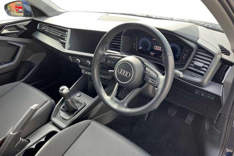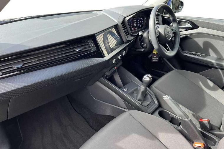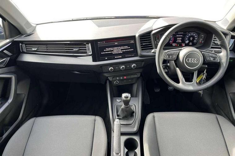 10.25" Digital instrument cluster display classis style instrument dials + speed, odometer, time, outside temperature, telephone menu + fuel level warning, Audi smartphone interface with connect compatible smartphone via USB directly MMI display + Nav, music, third party apps controlled via MMI controller, Automatic start/stop system, Bluetooth interface, Driver's information system, Electromechanical power steering, Emergency e-call, Emergency services call system, Lane departure warning system, Service interval indicator, Speed limiter, Voice control system, Washer fluid level indicator, Dynamic suspension, 1 x SDXC card reader, 2 x USB type C connection points, 6 passive loudspeakers, DAB Digital radio, MMI radio plus with 8.8" colour MMI display screen and MMI touch, Auto dimming rear view mirror, Body coloured bumpers, Body coloured door mirrors, Electric front and rear windows, Electrically adjustable, heated, folding door mirrors with integrated LED side indicator, Front side air inlets with front spoiler lip and rear diffuser in matt black grained, Heat insulating glass windscreen and side windows, Heated rear windscreen, High level LED brake light, LED headlights with LED rear lights + dynamic rear indicators + headlight adjustment and high beam, turning light + LED daytime running lights, Radiator grille in matt black, Rain and light sensors, Rear fog lights, Rear side wing doors, Rear wing door, Rear wiper, 12V socket in centre console with two cup holders, 3 rear seats with headrests, 3 seat bench in 2nd row, 3 spoke leather multifunction plus steering wheel, 40:60 Split folding rear seat or folded fully, Air vents, door handle recesses and centre console in black, Delta cloth upholstery, Driver and passenger seat with manual height adjust with forward and backwards adjustment, Front head restraints, Front passenger seat, Front/rear floor mats, Grey cloth headlining, Height and reach adjustable steering wheel, ISOFIX child seat mounting for front passenger and outer rear seats including top tether attachment point of outer rear seats, Leather gear knob with aluminium trim, Leatherette handbrake grip, Luggage compartment light with front and rear reading lights, Manual air conditioning, Luggage compartment pack - A1, 3x3 point rear seatbelts, Audi pre-sense front with pedestrain and cyclist recognition, Brake assist function, Driver and front passenger airbag with front side and head airbags, Electronic Stability Control including ABS, EBD, ASR and EDL, Front passenger airbag deactivation switch, Hill hold assist, Manual rear child locks, Seatbelt height adjustment for front seats, Seatbelt monitoring, Tyre pressure warning light, Warning triangle and first aid kit, Anti theft alarm, Anti theft wheel bolts and loose wheel warning, Immobiliser, Remote central locking with 2 foldaway keys, Black inlays polygon structure, 15" 5 arm design alloy wheels,