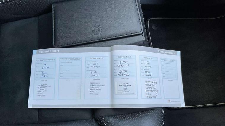 12.3" Active TFT crystal driver's instrument display, 9" Touch screen, Adjustable steering wheel force, Bluetooth hands free telephone kit, Drive mode selector, Front collision warning with full auto brake, Intelligent driver information system (IDIS), Lane keep assist with driver alert control, Oncoming Lane Mitigation, Power tailgate, Remote fuel flap release, Road Edge Detection, Service interval indicator, Speed limiter, Speed sensitive steering, Trip computer, Voice control system, Volvo on call, Active four-C chassis + four corner adaptive damper with electronic rear air suspension, Diesel particulate filter, DAB Digital radio, Active bending headlights with adaptive shadow technology, Adaptive brake lights, Auto dimming interior + exterior mirrors, Body colour bumpers, Dark tinted glass for rear windows + rear screen + side luggage area window, Dual integrated exhaust pipes with high gloss black surround, Electric folding door mirrors, Electric front+rear windows, Electrically adjustable and heated door mirrors, Headlamp cleaning system, Headlamp levelling, Heated aqua blades, High gloss black front grille, Home safe and approach lighting, Illuminated side steps, LED front fog lights with static cornering light function, LED Headlights + Active high beam incorporating daytime running lights, Matt silver finish door mirrors, Puddle lights, R Design tread plates, Rain sensor windscreen wipers, Rear wiper, Roof antenna, Roof spoiler, Silk metal grille surround, Silver matt window frame surround, Silver roof rails, Tinted windscreen, Visible VIN plate, 12V power point in luggage area, 12V socket in front + rear tunnel console, 3 spoke leather steering wheel with chrome trim, 60/40 split folding rear seat, A-pillar parking ticket holder, B Pillar ventilation, Black headlining, Bright metal luggage threshold, Centre armrest storage illumination, Centre console cupholders and storage, Contour sports seats with leather/nubuck upholstery, Door ambient lighting, Electric drivers seat with memory, height adjust and multi directional lumbar support + mirrors memory, Extended front seat cushions, Front and rear door pockets, Front footwell illumination, Front/rear reading lights, Gearshift paddles, Glovebox illumination, Head restraints for all seats, Heated front seats, Heated steering wheel, Height/reach adjustable steering column, High gloss black steering wheel remote infotainment controls, Illuminated driver/passenger vanity mirrors, Illuminated front cupholder, Illuminated luggage compartment, Illuminated tailgate, ISOFIX attachment on outer rear seats, Load cover, Multicolour theatre lights, Perforated leather gearknob, Perforated Leather Key Integrated Remote, Perforated leather steering wheel, Pollen filter, Rear armrest / integral cup holders / storage tray, Rear footwell illumination, Rear seat concealed storage, Sport pedals, Sports floor mats, Ticket holder, Underfloor stowage compartment, Vanity mirror with ticket holder, WHIPS - Whiplash Protection System, 5 three point seatbelts, ABS/EBD, City safety with steering support with Pedestrian + cyclist + large animal detection + front collision warning with full auto brake, Curtain airbags, Drivers knee airbag, DSTC-Dynamic Stability and Traction Control, Dual stage driver/passenger airbags, EBA, Electronic parking brake with auto hold, Fasten seatbelt reminder, First aid kit, Hill descent control, Hill start assist, Hydraulic Brake Assist (HBA), Passenger airbag deactivate switch, Road sign information display, Run off Road Protection, Seatbelt pre-tensioners, SIPS airbags, Tyre pressure monitor, Warning triangle, Anti-theft alarm including immobiliser/volume sensor + level sensor, Key integrated remote control central locking + fuel flap with deadlocking system and auto open/close power windows, Keyless drive (incudes keyless entry and start) with remote tag and handsfree tailgate open/close, Locking wheel nuts, Private locking for tailgate, Metal mesh inlays, Tailored instrument panel with contrast stitching,