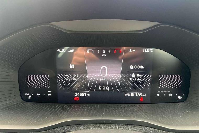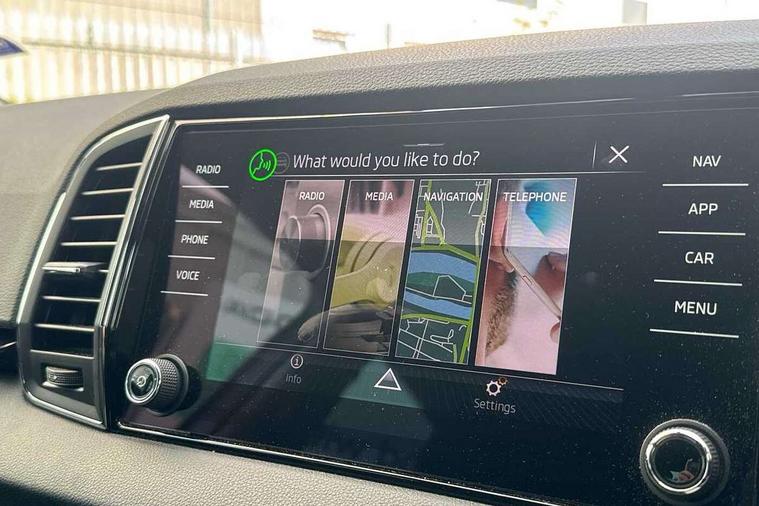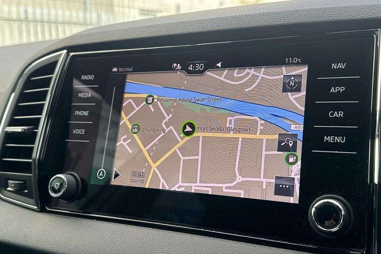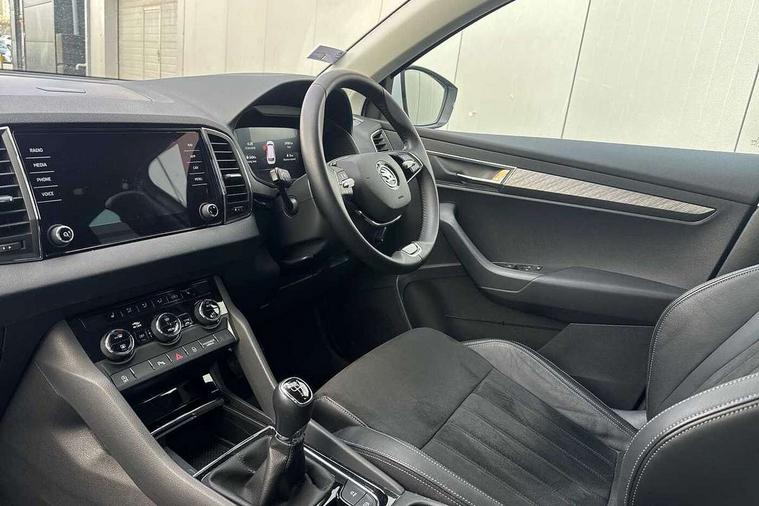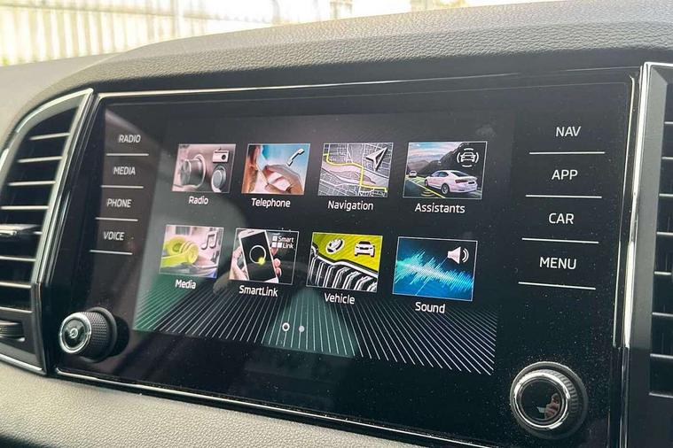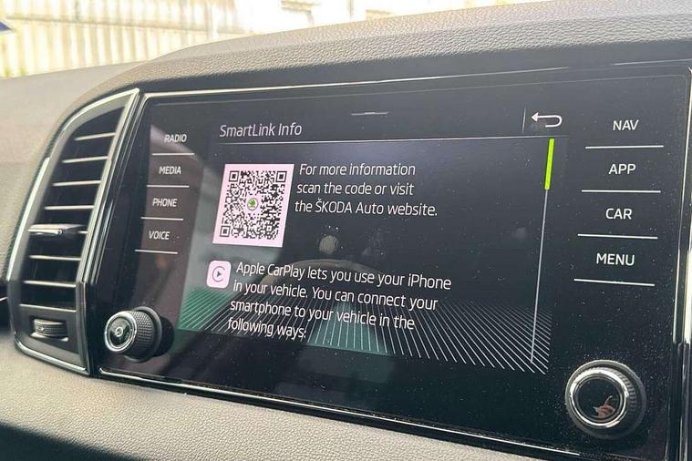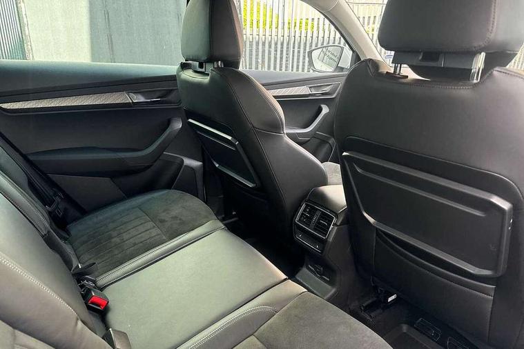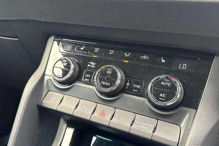 8" Digital display, Care connect, Driver fatigue sensor, Emergency services call system, Outside temperature gauge, Service interval indicator, SmartLink wireless for Apple and wired for Android, Start/stop system with regenerative braking, USB C Port x 2 in front centre console, 8 Speakers, DAB radio with Bluetooth, USB connection, Acoustic glass, Aero front windscreen wipers with intermittent function, Auto dimming rear view mirror with light and rain sensors, Black electric window control buttons, Body colour door mirrors and handles, Dynamic headlight range control with cornering light function, Electric front and rear windows with child proof lock, Heated rear windscreen, LED daytime running lights, LED rear lights with high functionality welcome effect and dynamic indicators, Light assistant (coming/leaving home/tunnel light), Plastic scuff plates, Privacy glass, Rear side wing doors, Rear spoiler, Rear window wiper with washer system and intermittent control, Safety reflectors on front doors, 1.5 litre bottle holders in driver and front passenger door panels, 12V socket in boot, 12v socket in front centre armrest with storage compartment and rear air vents, 2 spoke leather heated multifunction steering wheel, 2 x Tablet holder, 3 rear height adjustable headrests, 3 seat bench in 2nd row, 4 foldable roof handles with rear coat hooks, Black floor carpet, Chrome inner door handles, Double sided boot floor, Foldable hooks in the boot, Front head restraints, Height adjustable front three point seats belts with tensioners, Height/reach adjust steering wheel, Ice scraper, Illuminated glovebox, Illuminated luggage compartment, Isofix child seat preparation for front passenger seat, Isofix child seat preparation outer rear, Manual lumbar support for front seats, Pen holder, Pollen filter, Rear boot cover, Rear reading lights, Rubbish bin door, Safety vest holder, Single front passenger seat, Storage box in upper central dashboard closed, Sunvisors with illuminated vanity mirrors, Textile floor mats, Ticket holder, VarioFlex seats with standard rear seat release, Boot pack - Karoq, Design Pack - Karoq, Parking pack - Karoq, Automatic door unlocking in case of crash, Automatic fuel cut off in case of crash, Child locks on rear doors, Driver airbag, Electronic parking brake with auto hold function, Emergency rear braking signal, ESC including ABS, MSR, ASR, EDS, HBA, DSR, RBS, MKB and traction control, Front side airbags, Hill hold control, Knee airbags, Passenger airbag with switch-off function, Pedestrian monitor, Seatbelt reminder signalisation and pretensioner for all seats, Three point seatbelts rear, Two tone horn, Tyre pressure display, Tyre pressure monitor, Alarm with interior monitoring, back up horn and tilt sensor with safe function, Electronic engine immobiliser, Keyless entry and start/stop, Remote central locking with 2 remote folding keys, Chrome framed air vents, 18" Miran alloy wheels in black, Anti-theft wheel bolts protection, Tool kit,