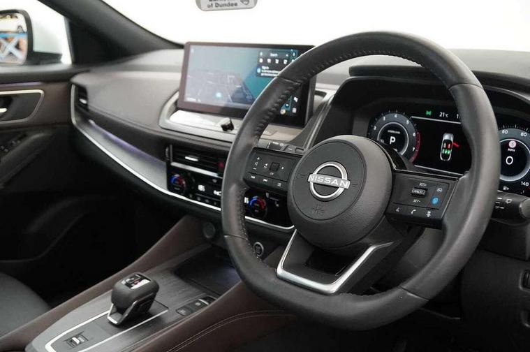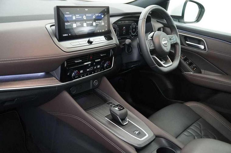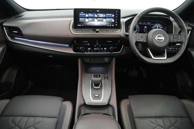 360 degree Intelligent around view monitor with moving object detection, Advanced windscreen head up display, Blind spot intervention, Blind spot warning, Drive assist custom mode, Drive modes (sport, normal, eco), Driver drowsiness and attention warning, Electric speed sensitive power steering, Emergency and breakdown call, Emergency lane keep assist, Emergency Stop Signal (ESS), Engine start/stop button, Event data recorder, Front and rear parking sensors, Full Digital 12.3" TFT Digital Combimeter, Google virtual personal assistance, Hands free power tailgate, Idle stop/start system, In-car WIFI hotspot, Intelligent Cruise control (ICC), Intelligent forward collision warning, Intelligent speed assist, Lane departure warning system, Nissan connect 12.3 inch touchscreen infotainment system, Nissan connect navigation with google maps, Nissan connect services 2.0 (Google Automotive System), Outside temperature sensor, Rear cross traffic alert, Reversing detection, Traffic jam pilot, Wireless Apple CarPlay/Android Auto, Wireless charging pad, Limited slip differential, 2 front USB-C ports, 2 rear USB-C ports, 6 speakers, AM/FM audio system with DAB, Bluetooth audio streaming, Auto dimming frameless rear view mirror, Auto rear wiper when reversing, Body colour mirror caps, Body coloured door handles, Bodyside mouldings, Chrome side window finisher, Electric auto folding door mirrors, Electrically adjustable and heated door mirrors with LED turn indicator, Follow me home headlights, Glossy black bumper inserts and fenders, High beam assist, Intelligent auto headlights, LED 3rd brake light, LED daytime running lights, LED headlights with adaptive driving beam, LED rear lights, LED sequential turn lights, One touch front and rear electric windows with remote opening and closing, One touch passenger window, Partially body coloured bumpers, Rear privacy glass, Rear roof spoiler, Rear side wing doors, Rear styling plate, Reverse tilting door mirrors, Shark fin antenna, Silver roof rails, Splash free rain sensing wipers, Super RED rear LED lights, Super UV and infrared cut glass, Thermaclear heated windscreen, 3 bench rear seats in 2nd row, 3 rear headrests, 60/40 split folding rear seat bench, Chrome interior door handles, Dark headlining, Driver seat back pocket, Dual zone automatic climate control with pollen filter, Fixed Glass roof with electric sunshade, Front door with bottle holders, Heated front seats, Heated steering wheel, Height adjustable front headrests, Luggage board system, Luggage space lighting, Multifunction steering wheel, Passenger seat back pocket, Quilted/PVC upholstery, Rear door bottle holders, RGB ambient light (Full area coverage), Single front passenger seat, Smooth leather steering wheel, Steering wheel gearshift paddles, Tilt/telescopic adjustable steering wheel, Two rear isofix child seat anchorage points with top tether, 3x3 point rear seatbelt pretensioners + load limiters, Autonomous emergency braking, Child locks on rear doors, Curtain and front side, far side airbags, Driver and passenger airbags, Driver, passenger and 2nd row rear seat belt reminder, Electric handbrake with auto hold function, Front seatbelt pretensioners + load limiters, Height adjustable front seatbelts, Hill start assist, intelligent front emergency braking, Rear automatic braking, Tyre pressure monitoring system, Vehicle dynamic control, Engine immobiliser, Intelligent key with walk away lock and approach unlock functions, Remote central door locking with deadlocking, Thatcham alarm, 19" Diamond cut alloy wheels, Tyre puncture repair kit,