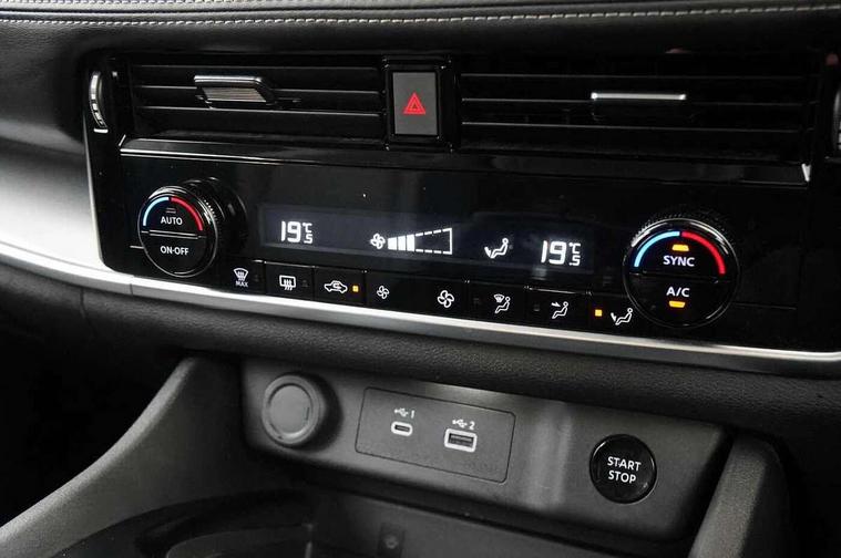 Android auto/Apple CarPlay (Wired), Blind spot warning, Drive assist custom mode, Drive modes (sport, normal, eco, snow, off-road), Driver drowsiness and attention warning, e-Pedal step, Electric speed sensitive power steering, Emergency and breakdown call, Event data recorder, Front and rear parking sensors, Full Digital 12.3" TFT Digital Combimeter, Idle stop/start system, Intelligent driver alert system, Intelligent forward collision warning, Intelligent lane departure warning, Intelligent lane intervention, Intelligent lane keep assist, Maximum speed limiter, Moving object detection, Nissan connect 8" touchscreen infotainment system, Push button starter, Rear cross traffic alert, Rear view camera, Reversing detection, Traffic sign recognition with legal speed adjustment, Trip computer, Wireless charging pad, 6 speakers, AM/FM audio system with DAB, Bluetooth audio streaming, Front USB connections (Type-A and Type-C), Rear USB charging only ports 2 Type-C, Auto dimming rear view mirror, Auto rear wiper when reversing, Body colour mirror caps, Body coloured door handles, Bodyside mouldings, Chrome side window finisher, e-4ORCE badging, e-POWER badging, Electric auto folding door mirrors, Electrically adjustable and heated door mirrors, Follow me home headlights, High beam assist, Intelligent auto headlights, LED 3rd brake light, LED daytime running lights, LED Headlights, LED rear lights, One touch front and rear electric windows with remote opening and closing, Partially body coloured bumpers, Rain sensing wipers, Rear reversing light (bulb lighting), Rear roof spoiler, Rear side wing doors, Rear styling plate, Shark fin antenna, Splash free wipers, Three blink turn signal, 12v power socket in dashboard and luggage, 3 bench rear seats in 2nd row, 3 rear headrests, 60/40 split folding rear seat bench, Butteryfly console, Chrome interior door handles, Cloth monoform upholstery, Driver and front passenger sunvisors with illuminated vanity mirrors, Driver seat back pocket, Dual zone automatic climate control with pollen filter, Front centre console and armrest, Front cupholders, Front door with bottle holders, Height adjustable driver's seat, Height adjustable front headrests, Height adjustable passenger seat, Leather shift knob, Leather steering wheel, Luggage space lighting, Multifunction steering wheel, Passenger seat back pocket, Rear armrest with 2 cupholders, Rear door bottle holders, Single front passenger seat, Tilt/telescopic adjustable steering wheel, Two rear isofix child seat anchorage points with top tether, 3x3 point rear seatbelt pretensioners + load limiters, ABS with EBD and brake assist, Active brake limited slip, Auto hold function, Child locks on rear doors, Curtain and front side, far side airbags, Driver and passenger airbags, Driver, passenger and 2nd row rear seat belt reminder, Electronic parking brake, Front seatbelt pretensioners + load limiters, Height adjustable front seatbelts, Hill start assist, Intelligent blind spot intervention, Intelligent front emergency braking with pedestrian, cyclist recognition and junction assist, Intelligent rear automatic braking, Tyre pressure monitoring system, Vehicle dynamic control, Approach unlock and walk away lock, Engine immobiliser, Remote central door locking with deadlocking, Thatcham Cat.1 alarm, 18" Diamond cut alloy wheels, Tyre puncture repair kit,