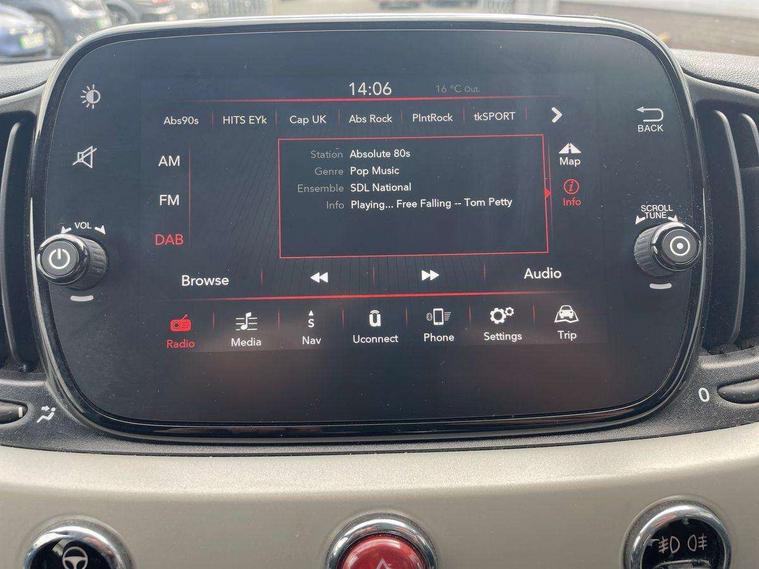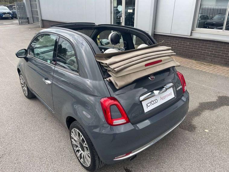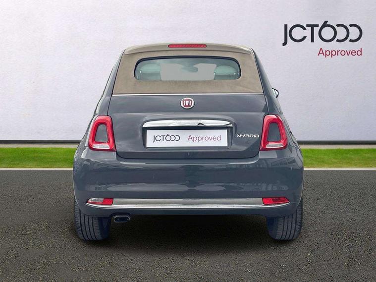 7" HD Touchscreen Radio with 3D Navigation, Bluetooth, USB, and DAB, 7" TFT instrument cluster, Apple car play/Android Auto, Cruise control, Dualdrive PAS, External temperature gauge, Rear parking sensor, Speed limiter, Stop/start system, Rear speakers, Body colour bumpers, Chrome plated exterior door handles, Electric front windows, Front fog lights, Heat insulated glass, Heated rear window, Hybrid logo on rear, LED daytime running lights, 1 passenger grab handle, 50/50 split folding rear seats with height adjustable rear headrests, Auto climate control, Auxilliary 12V power socket, Chrome entry kick plates, Front headrests, Height adjustable drivers seat, Height adjustable steering wheel, Isofix child seat preparation, Techno leather steering wheel with audio controls, Chrome pack - 500C, 7 airbags - Driver, passenger, side, window and drivers knee airbags, ABS/EBD, ESC + ASR/MSR + HBA + Hill holder, Tyre pressure monitoring system, Automatic door locking, Locking fuel filler cap, Remote central locking,