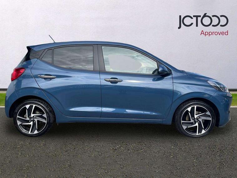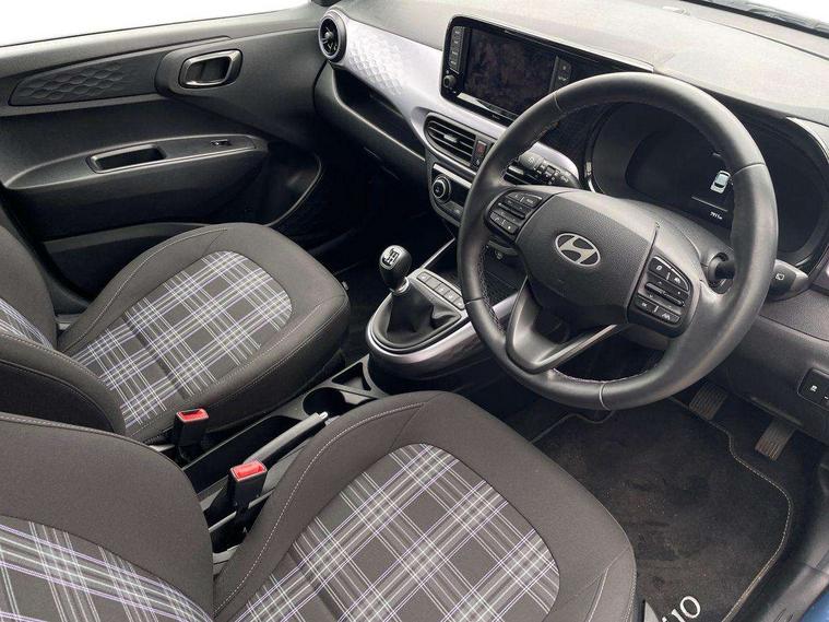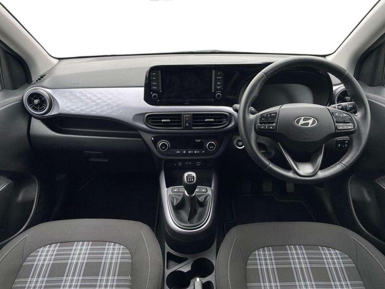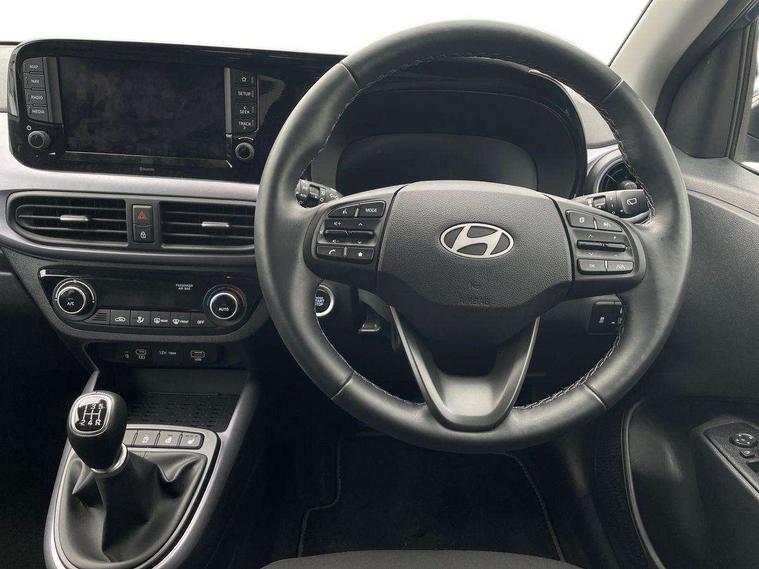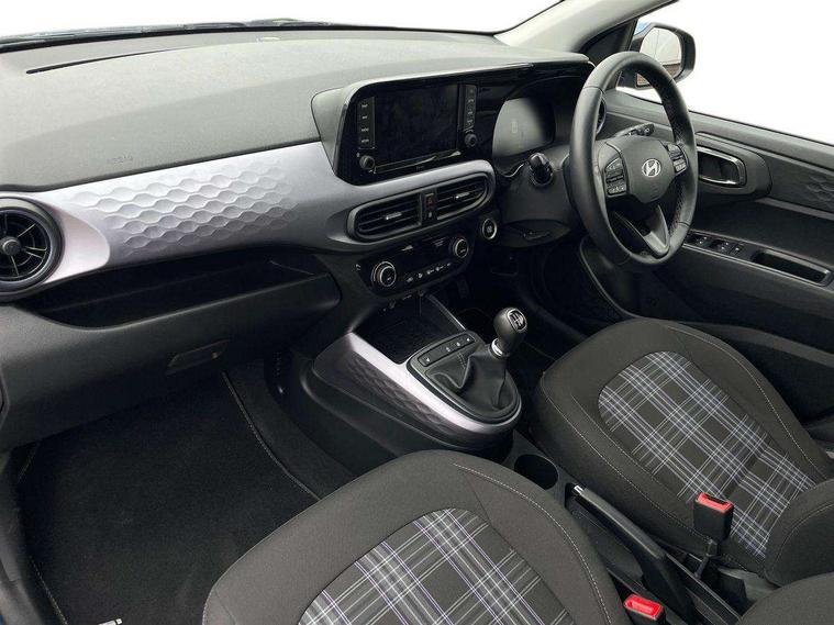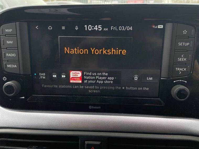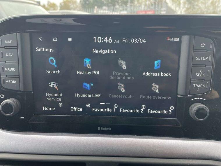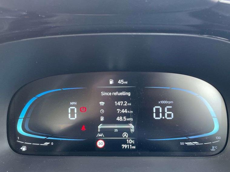 Apple car play/Android Auto, Bluelink mobile remote connectivity, Bluetooth connectivity with voice recognition, Cruise control, Driver attention alert system, eCall emergency call system, Forward Collision-Avoidance Assist (FCA) - Pedestrian/Cyclist, Front USB-C charging and USB-A data, Full-width 4.2" LCD instrument cluster, Intelligent speed limit assist, Lane departure warning system with lane keep assist - LKAS, Lane follow assist, PAS, Rear parking sensors, Rear view camera with guidelines, Roadside assistance, Start/Stop function, Tailgate, Trip computer, Wireless charging pad, 2 front/2 rear speakers, Rear USB-C device charger, Steering wheel audio, phone and cruise controls, 1 speed non intermittent rear windscreen wiper, Black finish on B pillars, Body colour door handles, Body coloured bumpers, Body coloured door mirrors, Electric folding door mirrors, Electric front windows, Electric rear windows, Electrically adjustable and heated door mirrors, Flat metal emblem, Front fog lights, Front grille in glossy black, Front intermittent wipers, Halogen bi-function headlights, Headlights inner with Black Blade design, Heated rear window, High beam assist, Indicator light on door mirrors, LED DRLs diamond mesh design, Privacy glass - Rear windows and tailgate, Rear roof spoiler with integrated LED brake light, Rear side wing doors, 12v power outlet - front, 3 seat bench in 2nd row, 60/40 split folding flat to floor rear seats, Air conditioning, Auto light control, Bottle holders in front/rear doors + front centre console, Cabin and luggage compartment interior lighting, Cloth upholstery, Driver + passenger vanity mirrors, Driver's seat height adjustment, Driver/passenger sunvisors with ticket holders, Floor mats, Front door pockets, Front Head Restraints - Vertical and Horizontal Adjustment, Front LED blue mood lighting, Glove compartment, Heated front seats, Heated steering wheel, Height adjustable steering column, Isofix child seat preparation, Leather multifunction steering wheel, Rear door pockets, Single front passenger seat, Vertical adjustment rear head restraints, 3x3 point rear seatbelts, Airbags - front, front side and curtain airbags, Anti-lock brake system (ABS), Autonomous emergency braking (AEB) with forward collision warning system, Brake assist function, Childproof rear door locks, Electronic stability control, Front and rear seatbelt reminder, Front seatbelt pretensioners, Hill start assist control (HAC), Passenger airbag deactivate switch, Traction control, Tyre pressure monitoring system, Immobiliser, Perimeter alarm, Rear occupant alert, Remote central locking, Second remote key, Smart key with motion sensor, Speed sensitive auto door locking, 16" alloy wheels, Tyre repair kit,