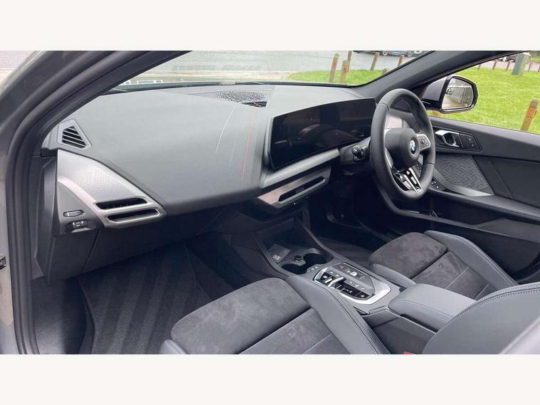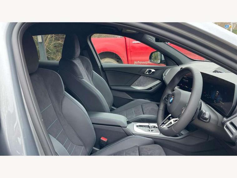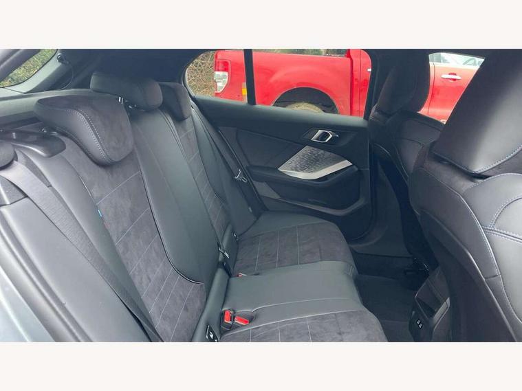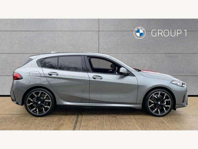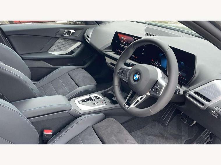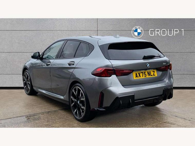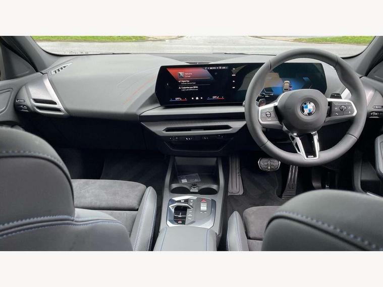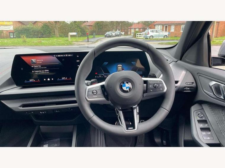 Active guard plus, Attentiveness assist, Bluetooth / WiFi interface for wireless connection of mobile terminal devices and audio streaming, BMW ConnectedDrive online services, BMW Live cockpit plus, BMW Teleservices, Check Control warning system for monitoring of lights and door/luggage compartment open warning, Eco pro mode, Electric power steering with Servotronic steering optimised at all speed ranges, Evasion assistant, Flat airvents in instrument panel with adjustable slats, Front and rear parking sensors, Front axle single joint with specific axle kinematics to minimise drive influences on steering + provide increased rigidity agile driving behaviour, Gearshift time display in manual mode, Integrated owners handbook, Left turn warning with brake function, My modes (Personal / Efficient / Sport), Oil sensor for level and grade, On board computer, Optimum shift indicator, Park assist including reversing assistant, lateral parking aid and reversing assist camera, Personal e-SIM, Personal Profile, Pull away assistant, Rigidly mounted rear subframe - Multi link construction with separate spring / damper configuration and excellent driving characteristics, Speed limit Info including no-overtaking indicator, Speed limiter, 49 litre fuel tank, Aluminium lightweight construction, Anti roll bar front and rear, Balancer shaft, Double VANOS twin scroll turbocharging system, Drive Performance Control, Electronic differential lock, Electronic selector lever, High precision injection, M Adaptive suspension, Petrol Particulate Filter, Steptronic transmission with double clutch, Twin tube gas filled shock absorbers with degressive characteristic curve, VALVETRONIC engine management, DAB Digital radio, Auto dimming rear view mirror, Automatic windscreen wipers and automatic headlight, Body colour door handles, Body colour roof trims, Chrome 'M' logo side designation, Chrome exhaust twin tailpipes round 90mm in left, Chrome kidney grille frame with Satin Aluminium struts, Direction indicator side lights in exterior mirrors, Electrically adjustable exterior mirror with mirror adjustment switch on drivers armrest and aspheric on driver side, convex on passenger side, Exterior M sport design elements, Fading support, Folding side mirrors with auto dimming/folding wing mirrors with auto dimming, Follow me home headlights, Front and rear bumper system with replaceable deformation elements, Front and rear electric windows with open and close fingertip control, anti trap facility and comfort closing, Front bumper panel with M specific design in vehicle colour with inserts in black high gloss, Front door sill finishers in black plastic with M designation in metallic look, Green tinted heat protection glazing, Heated rear window, High gloss black exterior mirrors, High gloss shadowline window frame, Recess cover mirror frames and B/C pillar embelisher trim, High level third brake light, Integrated front windscreen with washer jets, LED daytime running lights, LED eyebrow turn indicators, LED front fog lights, LED Headlights, Lightweight engineering, Matt black air guide grilles, Matt black wheel arch trim, Model badge on tailgate right, Nearside reverse light in rear light cluster, Preparation for high beam assistant, Rain sensor, Rear bumper panel with M-specific design in vehicle colour with inserts in black high gloss, Rear fog lights, Rear side wing doors, Rear window wiper, Shark fin antenna, Side sill covers with M specific design in body colour, Trailer stabilisation logic, Visible VIN plate, Welcome lighting, 12V power socket in front centre console with blanking plug, 3 rear seat head restraints, 3 seat bench in 2nd row, 3 spoke sports leather steering wheel with black leather and stitching, pearl chrome decorative finish, specific M Badge, Anthracite front and rear floor mats, Anthracite headlining, Black boot net with lashing eyes, Cargo function on 2nd seat row, Child seat ISOFIX attachment for two outer rear seats and front passenger seat with anchorage points, Conditioned based service, Driver and front passenger backrest net on rear, Driver and front passenger seat heating, Driver side folding compartment in instrument panel, Dual zone automatic air conditioning with extended contents, Folding rear clothes hook, Footrest and pedals in black plastic, Four grab handles integrated in roof lining, Front and rear door pockets with bottle holders, Front and rear side armrest integrated into door trim, Front armrest with storage compartment, Gearshift paddles on steering wheel, Glove compartment, Height adjustable front head restraints, Luggage compartment for bag hooks on left and right, foldable luggage compartment liner and four lashing eyelets, Manual adjust steering wheel, Multi-function controls for steering wheel, Rear seat backrest with manual 60:40 split folding with 3 top tether clips integrated on rear of seat panels, Single front passenger seat, Storage compartment in centre console, Storage compartment in luggage compartment, Stowage of the parcel shelf in luggage compartment trim, Sun visors with vanity mirrors and insert tab, Two front centre console cupholders, Type C two USB ports in rear centre console, Upper retaining strap integrated into backrest rear panels, Connected pack professional - 1 Series, Interior lights pack - 1 Series, M Sport exterior styling aerodynamics pack - 1 Series, 2 tone horn, 3 point seatbelts on all seats, front pyrotechnic belt tensioners, stopper and belt force limiters, rear coded belt buckles, Airbags - Front driver/passenger, front and rear curtain head protection, front side, manual deactivation of front passenger airbag, Anti lock braking system (ABS) with brake assist, BMW emergency call, Brake drying, Braking readiness, Child proof locking system in rear door, Comfort modes, Cornering brake control, Crash sensor activating of airbags, Unlocking doors, hazard warning lights, interior light, safety battery terminal, Driver and front passenger seat bel