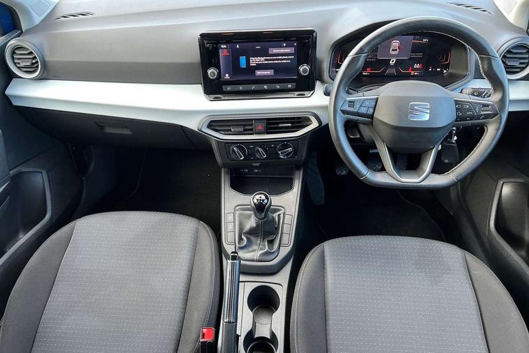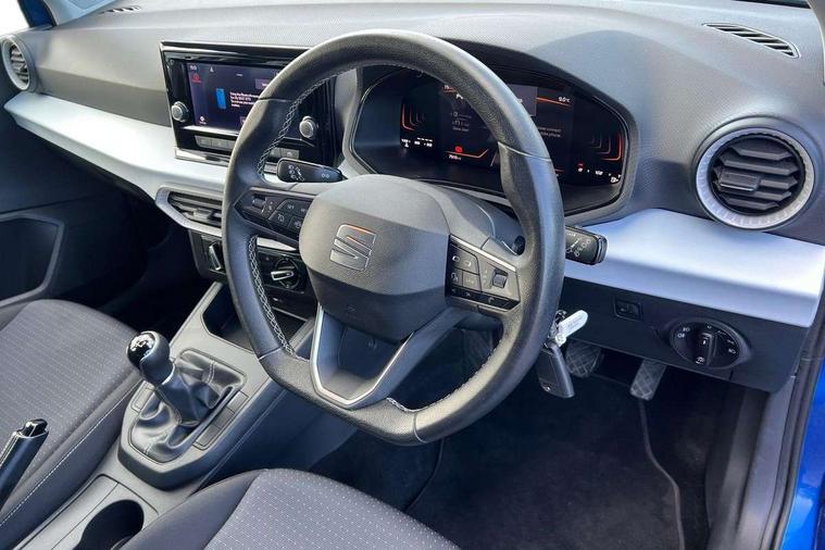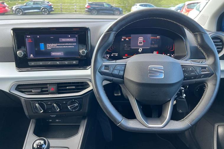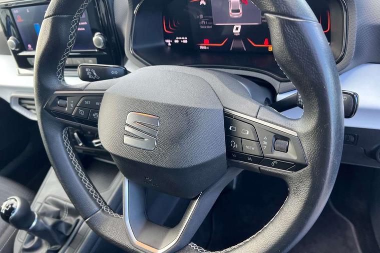'Lights On' Reminder warning buzzer, 8" Digital cockpit, 8.25" touchscreen display with type C USB socket and DAB/AM/FM radio, Auto start and stop system, Bluetooth audio streaming with handsfree system, Cruise control, Digital clock, E-call, Full link smartphone integration with mirror link, wireless apple carplay, Google android auto + USB Type C cable for apple and android devices, Lane assist, Low fuel warning light, Outside temperature gauge, Power Steering, Seat connect with safety, service and remote, SEAT logo boot release, Speed limiter, Trip computer, Comfort suspension, Auxiliary input socket, Radio/MP3 player, Steering wheel mounted controls, Anti theft roof antenna, Body colour bumpers, Body colour door handles, Body colour door mirrors, Dimming interior rear view mirror, ECO LED automatic headlights and LED daytime running lights, Electric front windows, Electric headlight adjustment, Electrically adjustable door mirrors, Front/rear fog lights, Halogen tailights, Rain sensor, Rear side wing doors, Rear wiper, Third brake light, 3 seat bench in 2nd row, 60/40 split folding rear seat, Air conditioning with dust and pollen filter, Chrome interior detailing and grey headlining, Cloth upholstery, Comfort seats, Front courtesy lights, Front cupholders x 2, Front reading lights, Gear shift indicator, Glovebox, Height adjustable front and rear headrests (five), Height adjustable front seats, Height/reach adjust steering wheel, Illuminated boot, Instrument lighting with brightness control, Isofix, Leather multifunction flat bottomed sports steering wheel, Passenger sunvisor, Single front passenger seat, Sunvisors with mirror and driver side card holder, 3 point seatbelts on all 3 rear seats, ABS, Active front headrests, Child locks on rear doors, Electronic stability control, Energy recovery system, Front assist forward collision warning and autonomous emergency braking, Front driver and passenger side airbags with curtain airbag and front passenger airbag deactivation, Hill hold control, Multi-Collision braking, Seat belt reminder for front and rear seats, Tiredness recognition system, Tyre pressure monitoring system, Electronic engine immobiliser, Locking wheel bolts, Remote central locking + deadlocks, 15" Enjoy alloy wheels in Brilliant silver, Emergency tyre repair kit,