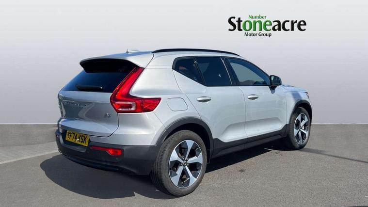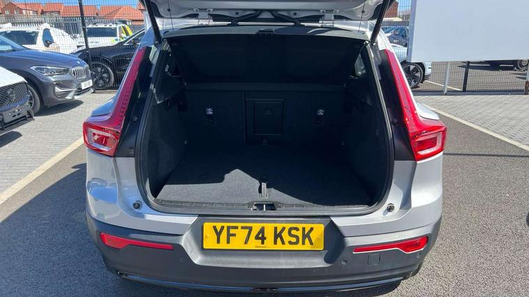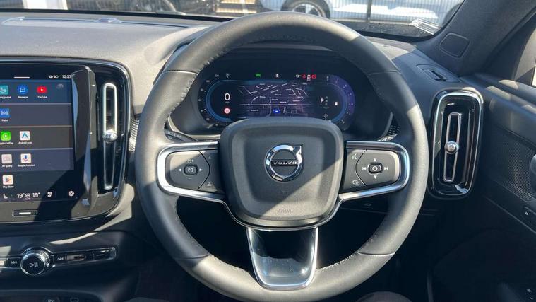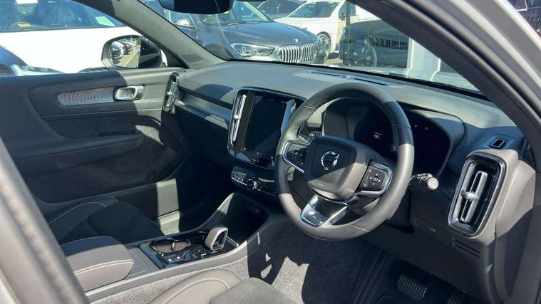 12.3" Progressive Driver Display, 9" centre console portrait touch screen, Adjustable steering wheel force, Apple carplay (wired), Bluetooth handsfree system, Cruise control, Driver alert control, E-call, Front park assist, Google automotive services - Enabled entertainment apps, navigation with google maps, voice recognition with google assistant, Hands free power tailgate, Intelligent speed assistance, Lane keeping aid, Oncoming Lane Mitigation, Rear park assist, Rear park assist camera, Speed sensitive steering, Volvo cars services with app - Driving journal, emergency and breakdown call, engine remote start, remote door locking/unlocking and vehicle dashboard, Wireless/Inductive Mobile Phone Charging, Automatic transmission with start/stop and manual change functions, Dynamic chassis, DAB Digital radio, Steering wheel mounted remote controls, Adaptive brake lights with high level LED brake lights, Auto dimming interior mirror, Automatic headlamp levelling, Automatic LED Headlights + Active high beam incorporating daytime running lights, Front aluminium tread plates, Front and rear electric windows, High gloss black front and rear skid plate, High gloss black front bumper deco, High gloss black mesh front grille with high gloss black surround, High gloss black window trim, Home safe and approach lighting, Integrated roof rails in high gloss black, LED front fog lights, Puddle lights, Rain sensor with automatic windscreen wiper activation, Rear side wing doors, Rear wiper, Roof antenna, Roof spoiler, Visible VIN plate, 12V socket in front tunnel console and cargo compartment, 2 zone electronic climate control with clear zone air quality system and pollen filter, 3 seat bench in 2nd row, 3 Spoke tailored steering wheel with chrome trim, 60/40 versatile split folding rear seat, Centre console cupholders and storage, Flexible load floor and grocery bag holder, Floor mats, Front cabin courtesy lights, Front door pocket, front cupholder, ambient front door, rear reading, rear courtesy, instrument panel and tailgate lighting, Front footwell illumination, Front headrests, Front reading lights, Front seat cushion extensions, Front side step illumination (under door), Glovebox bag hook, Heated front seats, Height adjustable passenger seat, Height/reach adjustable steering column, High gloss centre tunnel deco, Illuminated glovebox, Illuminated luggage compartment, Illuminated vanity mirrors + ticket holder, Integrated waste bin, Isofix attachments on rear seats, Load cover, Load protection net, Multi directional lumbar support for driver and passenger seat, Power driver seat with memory + exterior mirrors memory, Rear armrest with cupholders, Rear headrests, Single front passenger seat, Underfloor cargo storage, Climate pack without heated front seats - XC40, 3x3 point rear seatbelts, City safety with steering support with Pedestrian + cyclist + front collision warning with full auto brake and rear auto brake, Driver and passenger airbags, Drivers knee airbag, Electronic parking brake with auto hold, First aid kit, Front and outer rear seatbelt reminder and pretensioners, Front seats SIPS airbags, Hill descent control, Hill start assist, Inflatable curtain, Passenger airbag cut-off device, Power child locks on rear doors, Road sign information display, Run off Road Protection, SIPS (Side Impact Protection System), Slippery road and hazard light alert, Stability and Traction Control with Spin control, Engine Drag Control and Corner Traction Control, Tyre pressure monitoring system, Vehicle deceleration control with Anti-lock Brake System, Electronic Brake Distribution and Emergency Brake Assist, Warning triangle, WHIPS whiplash protection system - front, 2 x Key integrated remote control central locking including with deadlocking system and auto open/close windows, Anti-theft alarm including immobiliser/volume sensor + level sensor, Keyless drive includes keyless entry and keyless start, Locking wheel nuts,