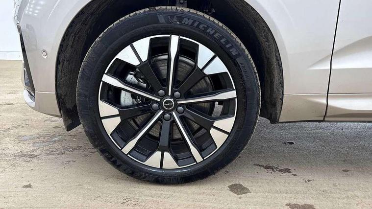 11.2" centre console touch screen, 12.3" Progressive Driver Display, 360 degree surround view parking camera with side proximity sensors, Adaptive cruise control, Adjustable steering wheel force, Android auto (Wired), Apple carplay (wired), Bluetooth handsfree system, Driver alert control with lane keeping aid, Emergency services call system, Front and rear park assist, Google Automotive Services, Intelligent speed assistance, Oncoming Lane Mitigation, PAS, Power operated tailgate with handsfree opening and closing, Service interval indicator, Speed limiter, Speed sensitive steering, Trip computer, Volvo cars services with app, Volvo on call with App, Wireless/Inductive Mobile Phone Charging, 8 speed automatic transmission with start/stop + manual change functions, Active four-C chassis + four corner adaptive damper with electronic rear air suspension, DAB Digital radio, Premium sound by Bowers and Wilkins, dirac live, dolby pro logic II surround sound, 14 speakers/1100W output and fresh air subwoofer, Steering wheel remote infotainment controls, Active bending headlights with adaptive shadow technology, Adaptive brake lights with high level LED brake lights, Auto dimming interior + exterior mirrors, Automatic headlight levelling system, Automatic LED Headlights + Active high beam incorporating daytime running lights, Dark tinted windows for rear side windows and cargo area, Electric adjustable/heated/auto power folding door mirrors, Electric front+rear windows, Front aluminium tread plates, Headlight cleaning system, High gloss black door mirrors and window surround, High gloss black front and rear bumper decoratives, High gloss black mesh front grille with high gloss black surround, Home safe and approach lighting, Integrated roof rails in high gloss black, LED front fog lights with static cornering light function, Power glass tilt and slide panoramic sunroof with sun curtain, Puddle lights, Rain sensor with automatic windscreen wiper activation, Rear side wing doors, Rear wiper, Roof antenna, Roof spoiler, Tinted windscreen, Visible VIN plate, 12V socket in front tunnel console and luggage compartment, 3 seat bench in 2nd row, 4 Zone electronic climate control, A-pillar parking ticket holder, Air purifier particulate matter (PM) 2.5 filter, B Pillar ventilation, Bright metal luggage scuff plate, Centre console cupholders and storage, Charcoal floor mats, Front and rear courtesy lights, Front and rear door pocket illumination, Front cupholder illumination, Front footwell illumination, Front reading lights, Front seat cushion extensions, Glovebox compartment with illumination, Head restraints for all seats, Heated front seats, Heated steering wheel, Height/reach adjustable steering column, Illuminated luggage compartment, Illuminated vanity mirrors + ticket holder, Inner door release handle illumination, ISOFIX attachment on outer rear seats, Load cover, Load protection net, Multi directional lumbar support, Power driver seat with memory + exterior mirrors memory, Power folding rear headrests, Power passenger seat with memory, Rear armrest with cupholder, Rear footwell and front and rear side step illumination, Rear reading lights, Rear seat concealed storage, Single front passenger seat, Tailgate illumination and ambient door lighting, Underfloor stowage compartment, Versatile split folding rear seat - 60/40, Driver assist pack without Adaptive cruise control - XC60, 5 three point seatbelts, City safety with steering support with Pedestrian + cyclist + front collision warning with full auto brake and rear auto brake, Drivers knee airbag, Dual stage driver/passenger airbags, Electronic parking brake with auto hold, First aid kit, Front seats SIPS airbags, Hill descent control - Off-road drive mode, Hill start assist, IC (Inflatable Curtains) - Full Length, Passenger airbag cut-off device, Power child locks on rear doors, Run off Road Mitigation, Run off Road Protection, Seatbelt reminder and pretensioners, SIPS (Side Impact Protection System), Slippery road and hazard light alert, Stability and Traction Control with Spin control, Engine Drag Control and Corner Traction Control, Tyre pressure monitoring system, Vehicle deceleration control with Anti-lock Brake System, Electronic Brake Distribution and Emergency Brake Assist, Warning triangle, WHIPS whiplash protection system - front, Anti-theft alarm including immobiliser/volume sensor + level sensor, Key integrated remote control central locking + fuel flap with deadlocking system and auto open/close power windows, Keyless Drive (includes Keyless Entry and Keyless Start), Locking wheel nuts, Private locking for tailgate, Tailored instrument panel with contrast stitching, Summer tyres,