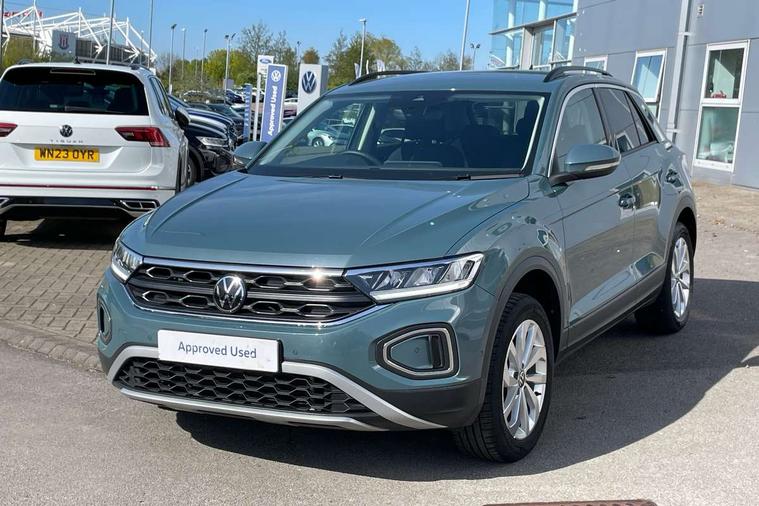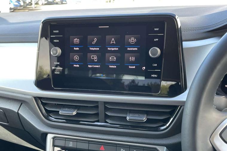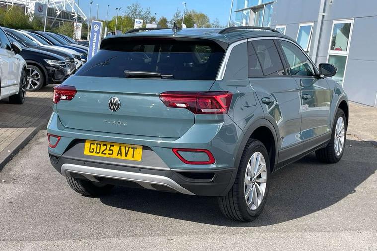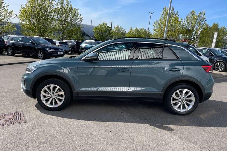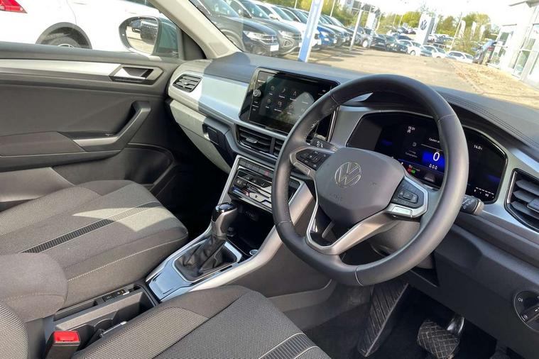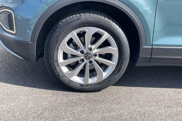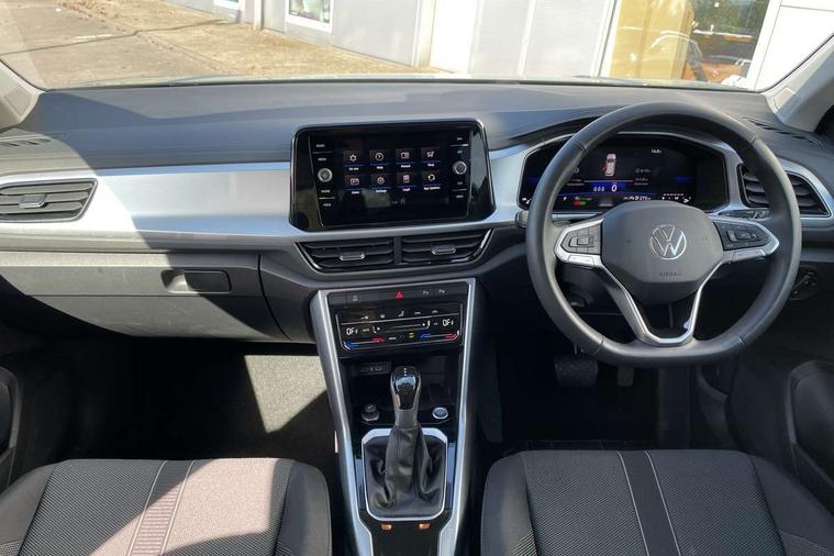 Advanced driver attention and drowsiness monitor, Dynamic road sign display, Emergency call service, Lane keeping system Lane Assist, Mobile phone interface, Modified key software - reduce switch off time for key status change to Long no motion, Online services, Park assist including front and rear parking sensors, Power assisted speed sensitive steering, Rear view camera, Service interval indicator, Tailgate/trunk lid release from outside, Think blue trainer driver tips and journey analysis, Warning sound and light for front seatbelts unfastened, Wireless app connect, Battery regeneration during braking, Front shock absorption, Rear shock absorption chassis with increased ride height, Start/stop function with battery regeneration, DAB Digital radio, Diversity antenna for FM reception, Music playback - MP3, WMA and AAC files, SD card slot, Simultaneous pairing of 2 compatible mobile devices, Title and cover art display, We Connect and We Connect Plus functionality, Auto dimming interior rear view mirror, Automatic hazard lights activation under emergency braking, Automatic headlight control with LED separate daytime running lights with coming/leaving home function, Black roof rails, Body coloured bumpers and radiator grille with chrome trim and front fog lamps with chrome bezel, Body coloured exterior mirror housings and door handles, Electrically adjustable and heated door mirrors, Extended roof spoiler, Exterior mirrors aspherical on driver side, convex on front passenger side, External USB type C socket and charging sockets, Front windscreen wiper with intermittent wipe and 4 position delay, Heated rear window, LED 3rd brake light, LED rear combination lamps, LED rear number plate lights, Power windows with comfort operation and circuit breaker, Privacy glass for rear side windows and rear window, Rain sensor, Rear exhaust tailpipe, Rear fog light on one side and reversing lights on both sides, Rear side wing doors, Rear wash/wipe with intermittent wipe setting, Remote electrically foldable door mirrors, puddle lights and reverse activated passenger's door mirror, 12V power socket in centre console, 3 rear head restraints, 3 seat bench in 2nd row, 4 load lashing points in luggage compartment, Air care climatronic air conditoning system with active combination filter and 2-zone temperature control, Black stitching for floor mats, Ceramique roof liner, Cloth upholstery, Door and side trim panel in cloth, Drawer under drivers seat, Driver/front passenger seat height adjustment, Front centre armrest, Front comfort sports seats, Front cupholders x 2, Front reading light, Front seat back storage pockets, Glove compartment door with light, Instrument lighting, white adjustable panel illumination, Interior ambient lighting and surround lighting, Interior light delay, Isofix child seat preparation, Leather gearshift handle, Load-through provision with cup holder when folded down ('Unsplit rear seat bench, split folding backrest, with centre armrest), Luggage compartment lighting, Lumbar support for driver's and front passengers seat, Non-folding front passenger seat backrest, Single front passenger seat, Storage compartment in left and right luggage area, Storage compartment in rear doors, Storage compartments in driver and front passenger doors, Sunvisors with illuminated vanity mirrors, Variable boot floor, height adjustable and removable, Driver assistance pack without proactive passenger protection - T-Roc Life/Match, 3 point height adj front seatbelts + pretensioners, 3 point seatbelts in outer rear with ECE label, ABS, Child locks on rear doors, City emergency braking and pedestrian monitoring, Driver and front passenger airbag with front passenger airbag deactivation, Driver and front passenger safety-optimised head restraints, Drivers seatbelt reminder, Electronic parking brake, Electronic Stability Control (ESC) inc EDL (Electronic Differential Lock) and ASR (Traction Control), Front and rear passengers curtain airbag system including front side airbags, Front disc brakes, Hill start assist, Predictive pedestrian protection, Rear disc brakes, Two tone horn, Tyre pressure loss indicator, Volkswagen roadside assistance, Alarm with interior protection, Keyless locking and starting system keyless access with safelock, Pewter matt decorative inserts for intrument panel, centre console and door panels at the front, Trims for alloy wheels,