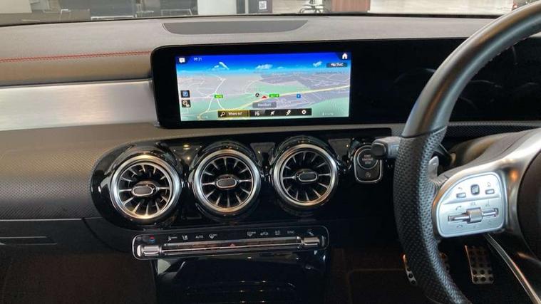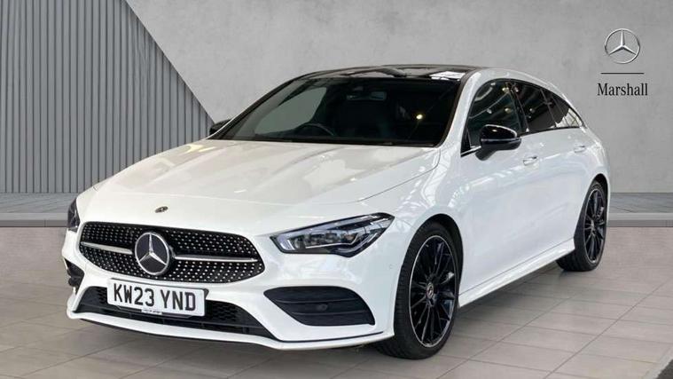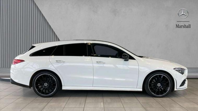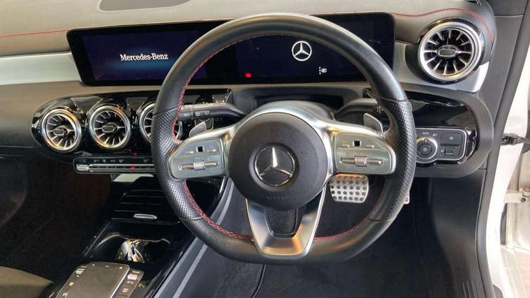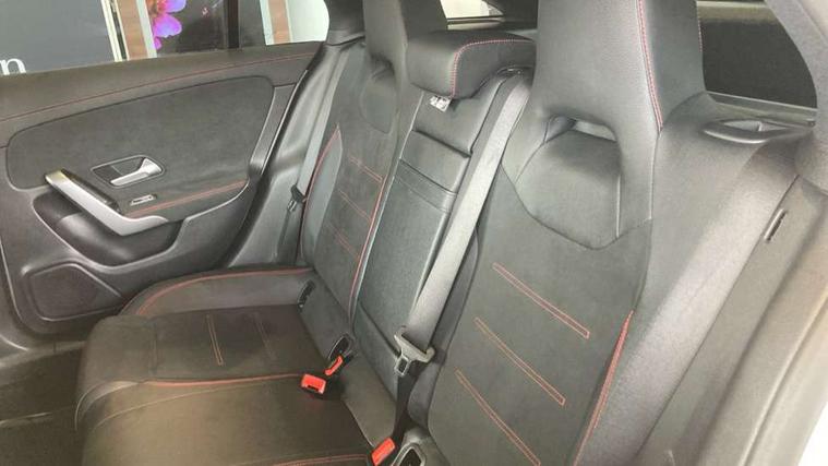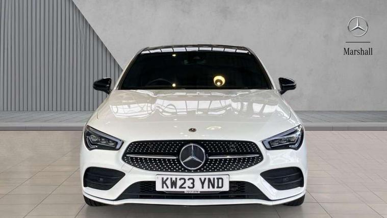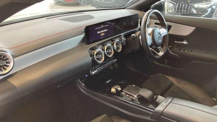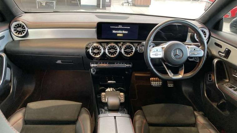 10.25 inch Instrument display with digital cockpit, 10.25 inch touchscreen central media display, Active lane keeping assist, Attention assist - Monitors steering behaviour and long journey fatigue, Blind spot assist, Bluetooth connection, Car wash mode, Cruise control with limiter, Direct steer system with speed sensitive power steering, DYNAMIC SELECT with a choice of driving modes (ECO, Comfort, Sport and Individual), ECO start/stop function, Fluid level warning indicator for fuel, oil, coolant and washer fluid, Hard-disk navigation, Hey Mercedes Voice activation, Lamp failure indicator, Mercedes me connect including emergency call system, accident recovery, breakdown and maintenance management, Mercedes me remote services, Outside temperature gauge, Owners manual and service booklet in English, Pre-installation of private car share, Preinstallation for Mercedes Benz link, Radio aerial integrated into front and rear windshields, Service indicator (ASSYST), Smartphone integration with Apple CarPlay and Android auto, Speed limit assist, Tailgate, Traffic sign assist, Trip computer in multifunction display with current consumption indicator, Lowered comfort suspension, Rear axle multi-link, DAB digital radio tuner, MBUX multimedia system, Mid-range sound system, USB (type C) ports (2) in stowage compartment and 1 in front of centre console, Adaptive brake lights, AMG body styling with AMG front apron and rear apron and visible exhaust tailpipe in chrome trim elements, AMG bodystyling side skirts, Body colour bumpers, Body colour door handles, Chrome beltline strips, Diamond radiator grille pins in chrome, Electric panoramic sunroof with automatic tilt and convenience closing fuinctions, rain sensor auto closing and electronic roller sunblind, Electric windows, Electrically adjustable and heated door mirrors with integrated LED indicators, Exhaust system with 2 Visible tailpipe trim elements and rear apron with trim in chrome, Headlamp assist automatic headlamp activation, Heated glass rear windscreen + timer control, High level LED third brake light, Integrated LED daytime running lights, Interior mirror with black reading lamps and frameless, LED tail lamp, Multibeam LED headlamps with adaptive highbeam assist plus, Privacy glass with dark tinting on rear side windows and rear window, Rain sensing windscreen wipers with two sensitivity settings, Rear fog lamp, Rear side wing doors, Rear wiper, Variable front intermittent wipers, Window line trim strip in chrome, 3 seat bench in 2nd row, 3 spoke flattened bottom nappa leather multifunction steering wheel with perforated leather in grip area, 40:20:40 split folding rear seat backrests, Air condition air vents with surround in silver chrome, Air conditioning - Two zone thermotronic luxury automatic climate control with display, Artico man-made leather upholstery, Automatic child seat recognition sensor, Black roof lining, Brushed stainless steel sports pedals with rubber studs, Electrically adjustable front memory seats including lumbar support, Floor mats with stitched AMG lettering, Front centre armrest with stowage, Galvanished gear shift paddles on steering wheel, Heated front seats, Illuminated front door sills with changeable cover, Illuminated glove compartment stowage, Interior lighting - 64 colour Ambient lighting, Luggage net on driver/front passenger seat backrest, Manually adjustable front seats, Manually height and reach adjustable steering column, Rear armrest with two integral cup holders for drinks, Rear head restraints, Single front passenger seat, Sport seats with fixed head restraints, Stowage compartment in centre console with retractable cover, Sunvisors with illuminated vanity mirrors, Touchpad on center console, Twin front cupholders, Two outer rear seat isofix and top tether child seat fixing points, Keyless go comfort pack - CLA with easy pack tailgate, Light and sight pack - CLA, Mirror pack - CLA, Night package - CLA, Parking package - CLA, Active bonnet pedestrain safety measure which detects an impact and raises bonnet by 65mm, Active brake assist includes forward collision warning system with autonomous braking, Adaptive brake assist with hold function and hill start assist, Anti lock braking system (ABS) with brake assist, Black seat belts, Bonnet with power domes, Brake pad wear warning indicator, Childproof locks manually operated for rear doors and electrically operated for rear power windows, Crash responsive emergency lighting, Driver and front passenger head and sidebags, Driver and front passenger windowbags, Drivers knee airbag, Dual stage driver and front passenger airbags, Electric parking brake, Electronic stability programme with acceleration skid control, ESP curve dynamic assist, Exit warning, Front and rear seatbelt reminder, Front passenger seat occupancy sensor, Three point rear seat belts, Tyre pressure monitoring system, Warning triangle and first aid kit, Guard 360 degree guard vehicle protection system with immobiliser and interior protection, Remote central locking and crash sensor with emergency opening function, Light aluminium with longitudinal grain interior trim, 19" AMG multi-spoke black painted light alloy wheels with high sheen rim finish, Summer tyres, Tirefit tyre sealant kit,