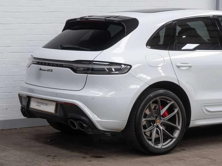 Analogue clock on dashboard, Automatic start/stop system, Digital boost pressure gauge on colour display of instrument cluster, Integrated cluster of three round instruments with black rev counter and GTS logo, Off-road button, On board computer, Porsche Communication Management (PCM) including online navigation module, mobile phone preparation, audio interfaces and voice control system, Power tailgate, Sports button in centre console, 7 Speed Porsche Doppelkupplung with manual controls on steering wheel and automatic mode, 75 litre fuel tank, Direct fuel injection (DFI), Gasoline particulate filter, Sport air suspension with ride-height adjustment including lowering of 10mm, VarioCam Plus variable valve timing and switchable valve lift, 2 USB sockets in rear centre console, Apple CarPlay with Siri voice recognition, Connect Plus including online navigation, LTE communication module with SIM card reader, wireless internet access, Porsche Car Connect services, DAB Digital radio, Porsche Vehicle Traking System Plus (PVTS Plus), Two USB C charging and connectivity ports in the front centre console storage compartment, Active radiator grille shutters, Automatic headlight activation including welcome home lighting, Bumper system with high strength cross members and two deformation elements + One threaded fixture point for towing eye contained in onboard tool kit, Dynamic cornering lights, speed-sensitive headlight and dynamic range control, adverse weather function, four-point LED daytime running lights, Electric front and rear windows with remote closing function + anti trap + one touch, Electrically adjustable, folding and heated exterior mirrors with aspherical on driver's side, Front apron middle section painted in black matt, Front light modules with LED position lights and direction indicators, Front windscreen wipers with two speeds, intermittent wipe and rain sensor, Front with integrated cooling air intakes, Fully galvanised body, Heated rear window with automatic switch off, High gloss black side window trims, High level 3rd LED brake light integrated into roof spoiler, Loading edge protection in aluminium, Porsche logo and model designation on tailgate in matt black, Rear window wiper with intermittent function and washer jet, Roof spoiler with fixed double wing design and fin like look in high gloss black, Side skirts in sport design, Switchable sports exhaust system, Tinted LED taillights including light strip, Towbar preparation, Twin sports tailpipes in black with sports exhaust, 3 adjustable rear headrests, 3 zone auto climate control separate temperature setting+air recirculation include quality sensor, airflow regulation+AC MAX button+humidity sensor, 4 way adjustable front head restraints, 40:20:40 split folding rear bench seat, Cloth hook b-pillar, Five seats rear seat system with two comfort outer seats and a central seat, Fold up centre console armrest with fore/aft adjustment, Front and rear bottle holders in door panels, Glove compartment, Isofix fastening system for child seats on outer rear seats, Luggage compartment cover, Particle/pollen filter with active carbon filter, Rear armrest with 2 cupholders, Storage bin in centre console, Storage compartment in side of luggage compartment and storage compartment in spare wheel recess, Storage pocket in front and rear doors, Two integrated cup holders in front with variable diameter, Two socket 12V power outlets in front console and luggage compartment, Uncovered storage compartment in centre console, Ambient comfort lighting pack - Macan, Lower exterior trim package in painted exterior colour - Macan, 3-point automatic seatbelts with front and outer rear seats pretensioners and force limiter + manually height adjustable seatbelt + reminder warning, 6-piston aluminium monobloc fixed caliper brakes at front, internally vented brake discs, Auto hold function, Brake calipers with red finish, Brake discs with diameter of 390mm at front and 356 mm at rear, Curtain airbags along entire roof frame and side windows from A pillar to the C pillar, Electronic parking brake, Front passenger airbag deactivation facility for installation of child seats indicator in overhead console, Front side airbags integrated into seat, Full size driver and passenger airbags, Multi-Collision braking, Porsche hill control (PHC), PTM(Porsche Traction Management) and All-wheel drive with map-controlled multi-plate clutch, Roll over sensor for curtain airbag and seatbelt pretensioners, Side impact protection in doors, Tyre pressure monitoring system, Vehicle stability system, Porsche stability management (PSM) including ABS, ASR, ABD, MSR and trailer stability management, Vented discs brake with combination floating calipers at rear, Alarm system with ultrasonic interior surveillance, Engine immobiliser with key transponder, Remote control central locking, Accent trims with silver coloured finish, Wheel centre caps with full colour Porsche crest,