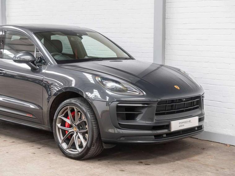 Analogue clock on dashboard, Automatic start/stop system, Automatic tailgate, Digital boost pressure gauge on colour display of instrument cluster, eCall emergency call system, Instrument cluster with high resolution 4.8-inch TFT display, gear indicator for PDK, service interval display, external temperature indicator, fuel gauge, Off-road button, On board computer, Porsche Communication Management (PCM) including online navigation module, mobile phone preparation, audio interfaces and voice control system, Sports button in centre console, 7-Speed Porsche Doppelkupplung (PDK) with automatic mode and manual controls (gearshift paddles) on steering wheel, 75 litre fuel tank, Direct fuel injection (DFI), Gasoline particulate filter, GTS Specific Porsche Active Suspension Manage, reduced ride height, Electric controll active damp system, 3 manual select modes comfort, sport, sport+, VarioCam Plus variable valve timing and switchable valve lift, 2 USB sockets in rear centre console, Apple CarPlay with Siri voice recognition, Connect Plus including online navigation, LTE communication module with SIM card reader, wireless internet access, Porsche Car Connect services, DAB Digital radio, Porsche Vehicle Traking System Plus (PVTS Plus), Two USB C charging and connectivity ports in the front centre console storage compartment, Active radiator grille shutters, Automatic headlight activation including welcome home lighting, Bumper system with high strength cross members and two deformation elements + One threaded fixture point for towing eye contained in onboard tool kit, Dynamic cornering lights, speed-sensitive headlight and dynamic range control, adverse weather function, four-point LED daytime running lights, Electric front and rear windows with remote closing function + anti trap + one touch, Electrically folding and heated exterior mirrors, Front light modules with LED position lights and direction indicators, Front windscreen wipers with two speeds, intermittent wipe and rain sensor, Front with integrated cooling air intakes, Fully galvanised body, Heated rear window with automatic switch off, High gloss black side window trims, High level 3rd LED brake light integrated into roof spoiler, Loading edge protection in aluminium, Rear side wing doors, Rear window wiper with intermittent function and washer jet, Roof spoiler with fixed double wing design and fin like look in high gloss black, Side skirts in sport design, Switchable sports exhaust system, Tinted LED taillights with three-dimensional lighting graphics, integrated fourpoint brake lights and light strip, Towbar preparation, Twin sports tailpipes in black with sports exhaust, 3 adjustable rear headrests, 3 rear seats, 4 way adjustable front head restraints, 40:20:40 split folding rear bench seat, Cloth hook b-pillar, Fold up centre console armrest with fore/aft adjustment, Front and rear bottle holders in door panels, Front passenger seat, Glove compartment, Isofix fastening system for child seats on outer rear seats, Luggage compartment cover, Particle/pollen filter with active carbon filter, Rear armrest with 2 cupholders, Storage bin in centre console, Storage compartment in side of luggage compartment and storage compartment in spare wheel recess, Storage pocket in front and rear doors, Two integrated cup holders in front with variable diameter, Two socket 12V power outlets in front console and luggage compartment, Uncovered storage compartment in centre console, Ambient comfort lighting pack - Macan, Lower exterior trim package in painted exterior colour - Macan, 3-point automatic seatbelts with front and outer rear seats pretensioners and force limiter + manually height adjustable seatbelt + reminder warning, 6-piston aluminium monobloc fixed caliper brakes at front, internally vented brake discs, Auto hold function, Brake discs with diameter of 390mm at front and 356 mm at rear, Child locks on rear doors, Curtain airbags along entire roof frame and side windows from A pillar to the C pillar, Electronic parking brake, Front passenger airbag deactivation facility for installation of child seats indicator in overhead console, Front side airbags integrated into seat, Full size driver and passenger airbags, Multi-Collision braking, Porsche hill control (PHC), PTM(Porsche Traction Management) and All-wheel drive with map-controlled multi-plate clutch, Roll over sensor for curtain airbag and seatbelt pretensioners, Side impact protection in doors, Tyre pressure monitoring system, Vehicle stability system, Porsche stability management (PSM) including ABS, ASR, ABD, MSR and trailer stability management, Vented discs brake with combination floating calipers at rear, Alarm system with ultrasonic interior surveillance, Engine immobiliser with key transponder, Remote control central locking, Accent trims with silver coloured finish, Wheel centre caps with full colour Porsche crest,