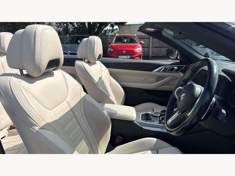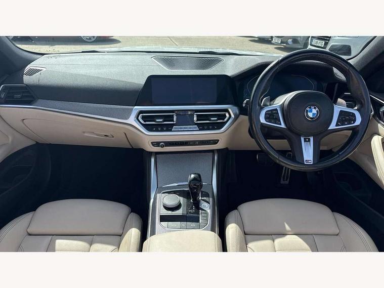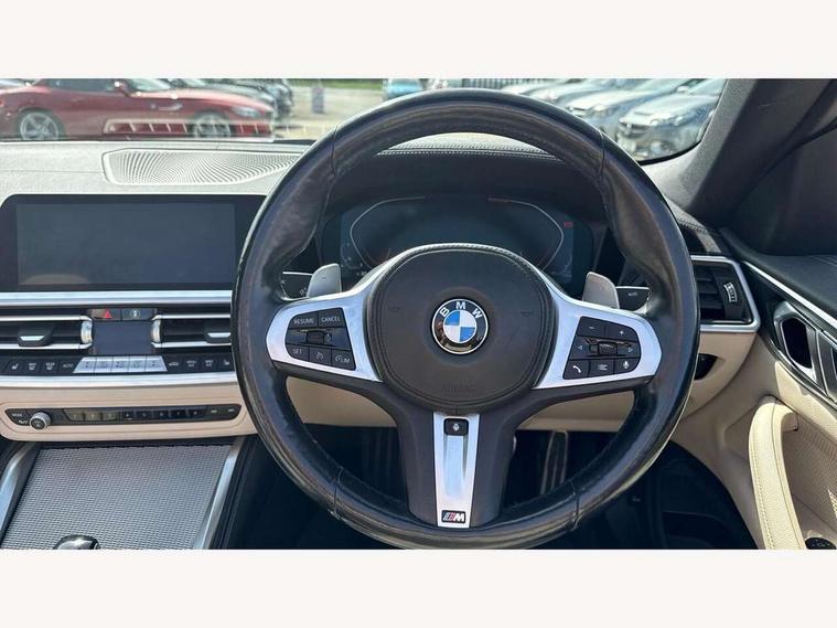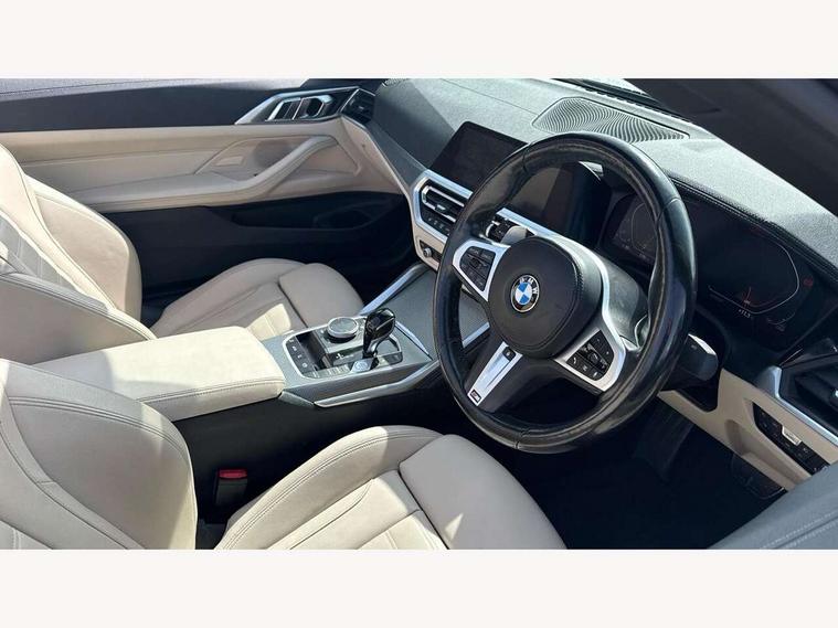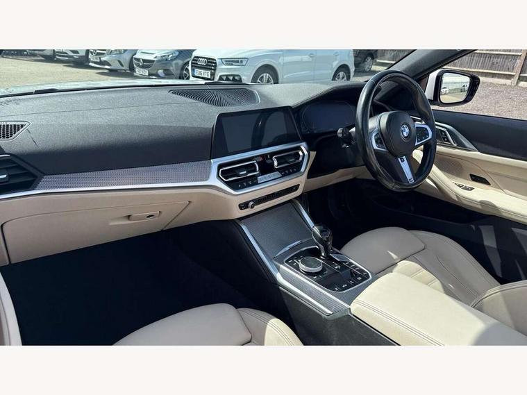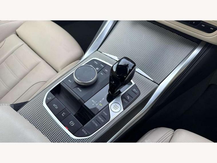 Active guard plus, Attentiveness assist, Auto start-stop, BMW ConnectedDrive online services, BMW iDrive controller on centre console, BMW Live Cockpit Professional Nav with 12.3" instrument display + 10.25" display, Intelligent Voice Assist, BMW OS 7, HDD, 2USB, 4G LTE connect, BMW service history, BMW Teleservices, Brake pad wear indicator in front and rear, Check Control warning system for monitoring of lights and door/luggage compartment open warning, Condition based service, Cruise control with brake assist, Electric power steering with Servotronic steering optimised at all speed ranges, Gearshift time display in manual mode, Instrument cluster with speedometer with mph readout, tachometer, fuel gauge and oil temperature gauge, Integrated owners handbook, Oil sensor for level and grade, warning by check control system, On board computer - average speed, fuel consumption, outside temp display with acoustic warning, clock/date, service interval, odometer/trip meter, Optimum shift indicator, Variable sport steering, 8 speed automatic steptronic transmission with gearshift paddles, Balanced 50/50 weight distribution, Double VANOS, Drive performance control - ECO PRO, comfort and sport modes, Electronic differential lock control (EDLC), High precision injection, Low centre of gravity, M sport suspension, Petrol Particulate Filter, Stroke dependent dampers, VALVETRONIC engine management, DAB tuner, Electronic service booklet, Acoustic glazing, Automatic headlight beam throw control with load dependent regulating reaction, dynamic compensation of braking dive and acceleration squat, Automatic windscreen wipers and automatic headlight, Automatically dimming electrochromatic rear view mirror, BMW emblem on engine compartment lid and tailgate, BMW kidney grille with mesh grille front side of the nuggets in matt aluminium and frame in chrome high gloss, Body colour fuel filler flap, Body colour roof fin, Brushed aluminium inserts in the front door sill finishers with BMW designation, Dynamic brake lights, Electric windows - front and rear, with open/close fingertip control, anti trap facility and comfort closing function all round, Exhaust tailpipe - split left and right, Exterior mirrors - electrically folding with anti-dazzle, Fading support, Follow me home headlights, Front and rear bumper system, Front apron plastic in body colour, Green tinted heat protection glazing, High gloss shadow line exterior trim, Illuminated bow type door handles in body colour drivers side with door lock, Interior rear view electrochromatic mirror with automatic anti dazzle function, LED daytime running lights, LED front fog lights, Licence plate panel integrated into front bumper and tailgate, Lightweight engineering, M designation on front side panels, left and right, Model designation on right side of tailgate, One piece front bumper cover including towing eye cover in body colour, Preparation for high beam assistant, Rear boot, Reversing light, Side frame decorative moulding black matt, Third brake light, Two part LED tailights in L-shape with components in smoked glass, brake light, LED turn indicator and rear fog light, Visible VIN plate, Welcome lights in interior and door handle area, Widened track and increased camber values for max transverse dynamics, agility and steering precision, Window recess cover black high gloss, Windscreen wipers with integrated heated washing jets, 12V power socket in front centre console, 2 2nd row folding seats, 2 front cupholder in centre console with clamping elements and matt black inlay, 2 Rear seat headrests, 2nd row centre armrest with built-in cupholders, 3 spoke M sport leather multifunction steering wheel, 3 zone automatic air conditioning, 4 pieces lashing eyelets in luggage compartment, Ambient lighting with welcome carpet light, Armrest integrated in front and rear door trim + front centre console armrest, Electric seat adjustment with memory, Four grab handles integrated in roof lining, Front and rear door pockets, Front and rear footwell lights, Front and rear reading lights, Front headrests, Front sport seats, Heated driver and front passenger seats, Height adjustable mechanically and infinitely variable steering column, Illuminated armrest storage compartment, Illuminated glove compartment with separate small compartment, Luggage compartment light, Make-up mirror lights, Single front passenger seat, Storage compartment in rear centre console, Sunvisors with vanity mirrors and ticket pocket, Toolkit located in luggage compartment, USB type - C cable charging function in the rear centre console, Velour front floor mats, Vernasca leather upholstery, Connected professional package - 4 Series, M sport exterior styling pack - 4 Series, Park assist pack - 4 Series, 2 x 3-point rear seatbelts, Battery safety cut-off, BMW emergency call, Brake energy regeneration, Braking pre-tensioning, Child proof rear door locking, Coasting in idle in ECO PRO mode, Cornering brake control (CBC), Crash sensor activating of airbags, Unlocking doors, hazard warning lights, interior light, safety battery terminal, Driver and front passenger side airbags, integrated in the door side seat backrest bolsters for all seat variants, Driver/Front Passenger airbags, Dry braking, Dynamic brake control, Dynamic stability control + (DSC+) - Anti-lock Braking System (ABS) with brake assist and cornering brake control + Automatic Stability Control (ASC), Dynamic Traction Control - DTC, Electric parking brake including automatic hold function and automatic release of the parking brake when driving off, Front and rear ventilated brake disc, Front passenger manual airbag deactivation, Head airbags for all 4 outer seats, Hill start assistant, Seat belt security check for driver and front passenger, Seat belt with belt stopper, pyrotechnic belt tensioners and belt force limiters, Side impact protection, Tyre pressure monitoring with three level warning strategy, Warning triangle and first aid kit, Alar
