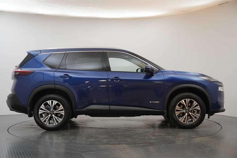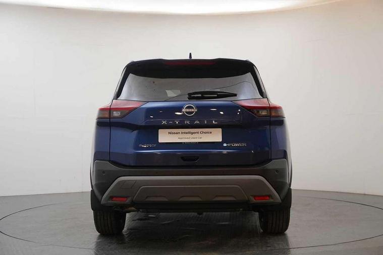 Android auto/Apple CarPlay (Wired), Blind spot warning, Drive modes (sport, normal, eco, snow, off-road), e-Pedal step, Electric speed sensitive power steering, Emergency and breakdown call, Front and rear parking sensors, Full Digital 12.3" TFT Digital Combimeter, Google maps services - search, weather, 3D maps and Google street view, Idle stop/start system, Intelligent around view monitor, Intelligent Cruise control (ICC), Intelligent driver alert system, Intelligent forward collision warning, Intelligent lane departure warning, Intelligent lane intervention, Intelligent lane keep assist, Maximum speed limiter, Moving object detection, Nissan connect 12.3 inch touchscreen infotainment system, Nissan connect nav with TomTom traffic, Push button starter, Rear cross traffic alert, Rear view camera, Remote control services - door locks, lights, horn and car locator, Telematics - notifications and connectivity services, TomTom live traffic services, Traffic sign recognition with legal speed adjustment, Trip computer, Virtual personal assistant and firmware over the air capability, Wireless apple carplay, 6 speakers, AM/FM audio system with DAB, Bluetooth audio streaming, Front USB connections (Type-A and Type-C), Rear USB charging only ports (Type-A and Type-C), 3rd brake light, Auto dimming rear view mirror, Auto rear wiper when reversing, Body colour mirror caps, Body coloured door handles, Bodyside mouldings, Chrome side window finisher, e-4ORCE badging, e-POWER badging, Electric auto folding door mirrors, Electrically adjustable and heated door mirrors, Follow me home headlights, Headlights auto levelling system, High beam assist, Intelligent auto headlights, LED daytime running lights, LED Headlights, LED rear lights, One touch front and rear electric windows with remote opening and closing, Partially body coloured bumpers, Rain sensing wipers, Rear privacy glass, Rear reversing light (bulb lighting), Rear roof spoiler, Rear side wing doors, Rear styling plate, Shark fin antenna, Splash free wipers, Super UV and infrared cut glass, Three blink turn signal, 12v power socket in dashboard and luggage, 3 bench rear seats in 2nd row, 3 rear headrests, 60/40 split folding rear seat bench, Butteryfly console, Chrome interior door handles, Cloth monoform upholstery, Driver and front passenger sunvisors with illuminated vanity mirrors, Driver seat back pocket, Dual zone automatic climate control with pollen filter, Front centre console and armrest, Front cupholders, Front door with bottle holders, Height adjustable driver's seat, Height adjustable front headrests, Height adjustable passenger seat, Leather shift knob, Leather steering wheel, Luggage board system, Luggage space lighting, Multifunction steering wheel, Passenger seat back pocket, Rear armrest with 2 cupholders, Rear door bottle holders, Single front passenger seat, Tilt/telescopic adjustable steering wheel, Two rear isofix child seat anchorage points with top tether, 3x3 point rear seatbelt pretensioners + load limiters, ABS with EBD and brake assist, Active brake limited slip, Auto hold function, Child locks on rear doors, Curtain and front side, far side airbags, Driver and passenger airbags, Driver, passenger and 2nd row rear seat belt reminder, Electronic parking brake, Front seatbelt pretensioners + load limiters, Height adjustable front seatbelts, Hill start assist, Intelligent blind spot intervention, Intelligent front emergency braking with pedestrian, cyclist recognition and junction assist, Intelligent rear automatic braking, Tyre pressure monitoring system, Vehicle dynamic control, Engine immobiliser, Intelligent Key, Remote central door locking with deadlocking, Thatcham Cat.1 alarm, 18" Diamond cut alloy wheels, Tyre puncture repair kit,