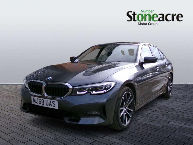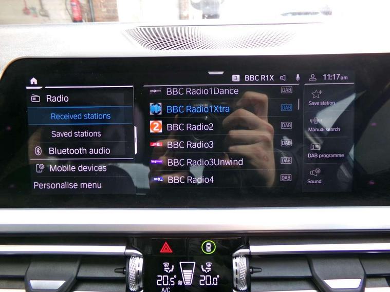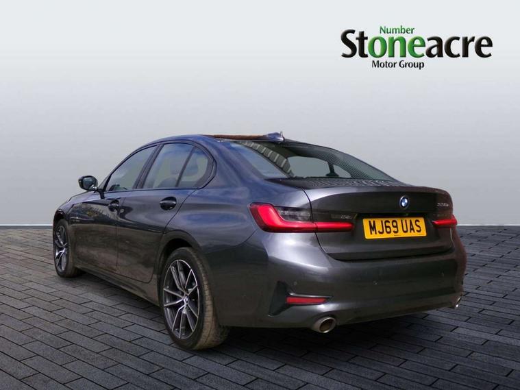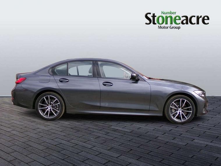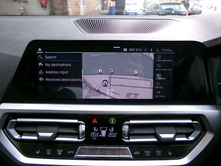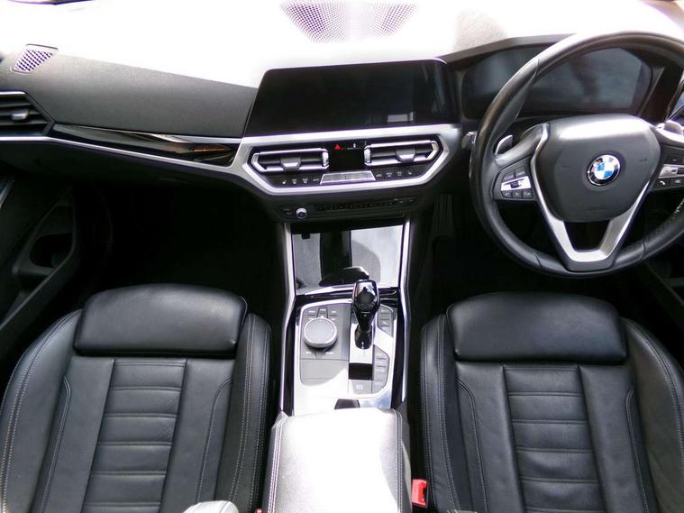 Active guard plus, Attentiveness assist, Auto start-stop, BMW ConnectedDrive online services, BMW iDrive controller on centre console, BMW Live Cockpit Professional sat nav system including 10.25" high resolution display and Intelligent Voice Assistant, BMW service history, BMW Teleservices, Brake pad wear indicator in front and rear, Check Control warning system for monitoring of lights and door/luggage compartment open warning, Condition based service, Cruise control with brake function + speed limiter, Electric power steering, Electric power steering with Servotronic steering optimised at all speed ranges, Instrument cluster with speedometer with mph readout, tachometer, fuel gauge and oil temperature gauge, Integrated owners handbook, Oil sensor for level and grade, warning by check control system, On board computer - average speed+fuel consumption, service interval, clock/date, odometer/trip meter, outside temperature display and ice warning, Optimum shift indicator, Personal Profile - automatic lock when driving away selectable, Balanced 50/50 weight distribution, Battery cut-out switch, Drive performance control - ECO PRO, comfort and sport modes, Electronic differential lock control (EDLC), Sport automatic transmission with steering-wheel mounted gearshift paddles and launch control, Stroke dependent dampers, DAB tuner, Electronic service booklet, Acoustic glazing, Active airstream chrome frame kidney grille with 8 high gloss black vertical slats, Automatic headlight beam throw control with load dependent regulating reaction, dynamic compensation of braking dive and acceleration squat, Body colour roof mouldings, Brushed aluminium inserts in the front door sill finishers with BMW designation, Dynamic brake lights, Electric windows - front and rear, with open/close fingertip control, anti-trap facility and comfort closing, Exhaust tailpipe - split left and right, Extended LED headlights, Exterior mirrors - electrically folding with anti-dazzle, Fading support, Front and rear bumper system with replaceable deformation elements, Green tinted heat protection glazing, High gloss black front bumper with specific design elements, High gloss black rear bumper with specific design elements, High gloss shadow line exterior trim, Interior rear view electrochromatic mirror with automatic anti dazzle function, LED front fog lights, Lightweight engineering, Matt black exterior B pillar, Model designation on right side of tailgate, Rain sensor with automatic headlight activation, Rear wiper, Shark fin antenna, T-shaped design element right and left in black high gloss, Two part LED tailights in L-shape with components in smoked glass, brake light, LED turn indicator and rear fog light, Visible VIN plate, Welcome lights in interior and door handle area, Windscreen wipers with integrated washing jets, 12V power socket in front storage compartment, 2 front cupholder in centre console with clamping elements and matt black inlay, 3 rear seats with non folding headrests with 3 point seat belts, 3 zone automatic air conditioning, 4 pieces lashing eyelets in luggage compartment, 40:20:40 split folding rear seat with loading system, Ambient lighting with welcome carpet light, Armrest integrated in front and rear door trim + front centre console armrest, Centred top Luggage compartment lights, Four grab handles integrated in roof lining, Front and rear door exit lighting (left / right), Front and rear door pockets, Front and rear reading lights, Front and rear velour floor mats, Front head restraints, Front sport seats, Heated driver and front passenger seats, Height adjustable mechanically and infinitely variable steering column, Illuminated armrest storage compartment, Illuminated glove compartment with separate small compartment, Interior lighting - front centre over interior mirror with soft light, rear centre and front and rear footwell lighting, Make-up mirror lights, Rear centre armrest with 2 cupholders, Rear centre console with storage compartment and ventilation grille, Sunvisors with vanity mirrors and ticket pocket, Three spoke multifunction sport leather steering wheel, Toolkit located in luggage compartment, Vernasca leather upholstery with contrast stitching, Connected pack professional - 3 Series Saloon/Touring, Parking assistant pack - 3 Series, 2 tone horn, BMW emergency call, Brake energy regeneration, Braking pre-tensioning, Child proof locking system in rear door, Child seat ISOFIX attachment rear outer seats, Coasting in idle in ECO PRO mode, Crash sensor activating of airbags, Unlocking doors, hazard warning lights, interior light, safety battery terminal, Driver and front passenger side airbags, integrated in the door side seat backrest bolsters for all seat variants, Driver/Front Passenger airbags, Dry braking, Dynamic brake control, Dynamic stability control + (DSC+) - Anti-lock Braking System (ABS) with brake assist and cornering brake control + Automatic Stability Control (ASC), Dynamic Traction Control - DTC, Electric parking brake including automatic hold function and automatic release of the parking brake when driving off, Front passenger manual airbag deactivation, Head airbags for all 4 outer seats, Hill start assist, Seat belt security check for driver and front passenger, Side impact protection, Three 3 point seat belts on all seats including front belt stopper, pyrotechnic belt tensioners and belt force limiters, Tyre pressure monitoring with three level warning strategy, Ventilated front and rear disc brakes, Warning triangle and first aid kit, Alarm system (Thatcham 1) with remote control and electronic engine immobiliser, Central locking switch for all doors, fuel filler cap and luggage compartment, Remote control with integrated key one button open/close vehicle and windows, sole opening of the luggage compartment lid and panic mode, Start/stop button with Comfort Go keyless engine start and auto Start/stop deactivation button, Reduced rolling resistance tyres,