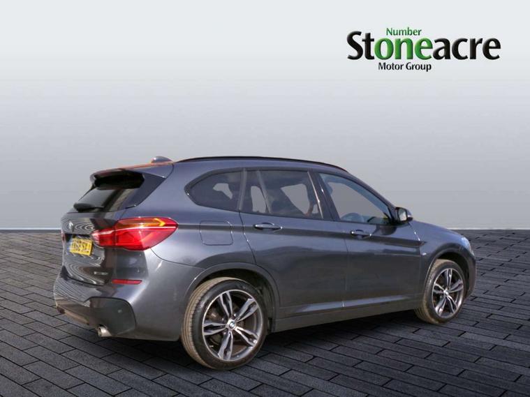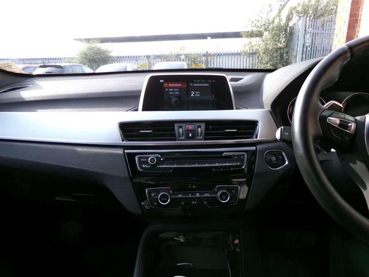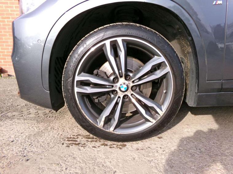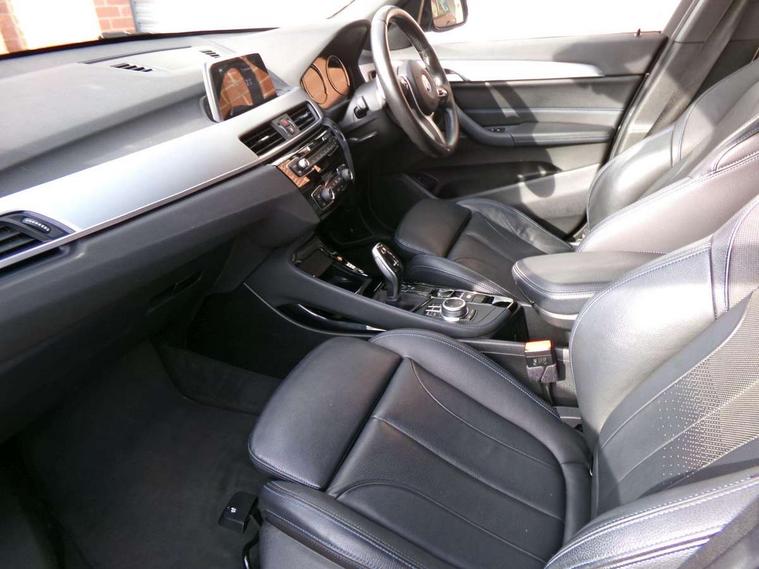 Active Guard incl speed limiting and lane departure functions with auto steering, and front collision warning with brake intervention, Ambient temperature display, Attentiveness assist, Automatic tailgate opening, BMW Online services, BMW remote services, BMW Teleservices, Brake pad wear indicator in front and rear, Lights on warning, Lights on warning by audio warning signal when ignition is switched off, On board computer, Outside temperature gauge, Personal Profile - automatic lock when driving away selectable, Service interval indicator, Speed limiter, Stop/start button, Tyre puncture warning system, Drive performance control with ECO PRO comfort + sport mode, Electronic differential lock, High precision injection, Performance Control, 2 USB Power socket for rear seat, BMW professional radio with CD player, DAB Digital radio, USB connection located in centre console, USB/audio interface, Adaptive LED Headlights, Adjustable headlights, Body colour bumpers, Body colour door handles, Body colour door mirrors, Chrome tailpipe finisher, Clear lenses direction indicator lights, Direction indicator side lights integrated exterior mirrors, Dynamic brake lights, Electrically adjustable and heated door mirrors, Fingertip control / anti-trap function on electric window, Follow me home headlights, Front and rear electric windows, Front fog lights, Halogen headlights, Headlight beam throw control, Heat insulating tinted glass, Heated windscreen washer jets, High level third brake light, kidney grille with high gloss black vertical slats, LED daytime running lights, Lightweight engineering, M door entry sills, Rain sensor including auto headlights activation, Rear fog lights, Rear window wash/wipe, Reversing light in rear light cluster, Twin chrome exhaust tailpipes x2, Visible VIN plate, Welcome home function, 12v power point in centre console, 3 rear headrests, 3 spoke sport nappa leather steering wheel, 4 grab handles, Anthracite headlining, Boot light, Centre console with cupholders, Driver and front passenger heated seats, Driver/passenger sunvisors with ticket holders, Drivers folding storage compartment, Dual zone automatic air conditioning, Extended storage, Front and rear door armrests, Front centre armrest/sliding cover, Front passenger isofix child seat attachment, Front sports seats, Front/rear adjustable head restraints, Illuminated glovebox, Isofix rear child seat preparation, Leather gearknob/gaiter/handbrake grip, LED ambient lighting in door trim, Luggage area underfloor compartment, Luggage compartment lighting, Multifunction steering wheel, Rake/reach adjustable steering wheel, Rear coded belt buckles, Sliding/split/reclining 40/20/40 rear seat with 60/40 split rear seat base, Steering wheel gearshift paddles, Velour floor carpets, Extended storage package - X1, 3 rear 3 point seatbelts, ABS/EBD, Audio/visual collision warning system, Automatic Stability Control (ASC), Battery safety cut-off, BMW emergency call, Brake drying, Brake energy regeneration, Braking readiness, Collision mitigation braking system, Cornering brake control (CBC), Crash Sensor - activates hazard/interior lighting + unlocks doors, Driver/Front Passenger airbags, Driver/front passenger side airbags, Dynamic brake control, Dynamic stability control + (DSC+), Dynamic Traction Control - DTC, Electronic parking brake, Front and rear head airbags, Front passenger airbag deactivation, Front seatbelt force limiters, Front ventilated disc brakes, Hill start assist, Pyrotechnically pre-tensioned front seatbelts, Rear disc brakes, Rear door child safety locks, Seatbelt warning, Twin horns, Tyre pressure monitor, Warning triangle and first aid kit, Auto door lock when driving, Central locking including boot and fuel flap with deadlocks, Engine immobiliser, Locking wheel nuts, Remote control Thatcham category 1 alarm, High gloss black centre console, Low rolling resistance tyres,