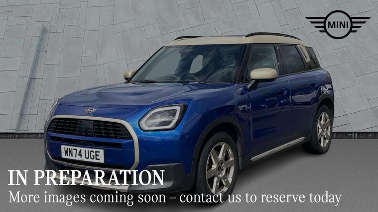 Bluetooth connection, Circular OLED Screen, Compatible mobile phone bluetooth with audio streaming, Cruise Control (DCC), Digital dashboard display, E-call, Electro-mechanical speed dependant steering assistance, MINI Experience Modes, Mini navigation system, MINI TeleServices, Parking assistant in camera and ultrasound based assistance system, rear view camera, parking aid and distance control, Auto transmission with Paddles, 6 speakers, DAB Digital radio, Personal eSim, Auto tailgate, Electric adjustable heated door mirrors, Front and rear electric windows, Heated rear window, LED daytime running lights, LED Headlights, LED rear lights, LED third brake light, Logos in Vibrant Silver, Rain sensor with auto headlights, Rear side wing doors, Rear window wiper, Roof rails, Vibrant silver grille surround, 3 seat bench in 2nd row, 60/40 split rear bench seat, Anthracite headliner, Auto air conditioning, Floor mats, Front armrest, Front headrests, Front sport seats, Heated steering wheel, Height and length steering column adjustment, Lidded storage box in Petrol knit, Rear headrests, Single front passenger seat, Sport Vescin Steering Wheel, Sunvisors with vanity mirrors, Vescin synthetic leather upholstery, Vibrant Silver sill inlay, 3x3 point rear seat belts, 6 Airbags - front, side, head and seat belt tensioners, ABS, DSC - Dynamic Stability Control, Electronic handbrake, Electronic Stability Programme (ESP), Front ISOFIX (iSize), Hill hold assist, Hill start assist, Manual rear child locks, Traction control, Tyre pressure monitoring system, Warning triangle, Alarm system with tilt sensor, monitoring doors, bonnet interior and tailgate, Auto drive away locking, Deadlocking function, Electronic vehicle immobiliser, Locking wheel bolts, Remote control locking, Start/stop toggle with keyless go, Petrol/Brown dashboard knit, MINI Mobility Kit,