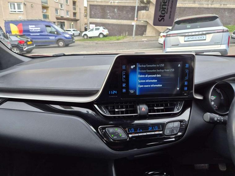 7" Coloured TFT multi informational display, 8" touch screen, Adaptive cruise control, Adjustable speed limiter, Bluetooth connectivity, Electric power steering, Intelligent parking assist with front & rear parking sensors, Lane departure alert with steering control, Lights on warning, Push button starter, Reversing camera, Reversing camera display in audio screen, Road sign assist - RSA, Touch 2 Go navigation system, Trip computer, Voice recognition, Vehicle Stability Control (VSC), 6 speakers, DAB Radio (Digital Audio Broadcasting), Steering wheel mounted controls, USB and Aux in connectors + 12V front outlet, Wi-fi connectivity, Auto high beam, Automatic headlight levelling, Automatic headlights, Automatic retractable door mirrors, Body colour door handles, Body colour door mirrors, Body coloured bumpers, Boot door release with push button, Electric folding/heated door mirrors with integrated indicators, Electrochromatic rear view mirror, Follow me home headlights, Front and rear electric windows, Front fog lights, Hard tonneau cover, Heated rear windscreen, Intermittent wipe, LED daytime running lights, LED High mounted stop lamp, LED rear brake lights, Projector and reflector halogen headlights, Rain sensitive windscreen wipers, Rear combination lamp, Rear privacy glass, Rear spoiler, Rear wiper, Shark fin antenna, Trailer Sway Control, 12V Accessory socket, 3 spoke leather steering wheel with multimedia switches, Ambient lighting, Chrome interior door handles, Clean air filter, Cloth upholstery, Driver + front passenger electric lumbar support, Driver and front passenger personal light, Driver and front passenger Whiplash Injury Lessening seats, Driver/passenger sunvisors and illuminated vanity mirrors, Dual zone automatic air conditioning, Folding rear seats, Front and rear door pockets, Front console box and front cupholders, Front cupholders x 2, Front head restraints, Gear shift indicator, Glovebox with internal light, Heated driver and front passenger seats, Illuminated entry system, Isofix seat fixing, Leather effect padded armrest on front console box, Leather gearshift, Light blue ambient lighting on front doors, Pollen filter, Rear headrests, Tilt/telescopic steering column, 3x3 point rear seatbelts, ABS+EBD+Brake assist, Electronic parking brake, ESP + traction control, Front and rear seatbelt reminder, Front passenger airbag on/off switch, Hill start assist control (HAC), Pre collision system with pedestrian detection, Rear child proof door locks, Road sign information display, Supplemental restraint system (SRS) airbags - 7 airbags including driver, front passenger, curtain, side and knee airbags, Toyota safety sense, Tyre pressure monitoring system, Immobiliser, Intrusion alarm, Motion sensor alarm, Remote central locking, Smart entry + Smart start, 18" 5 double spoke black machined face alloy wheels, Tyre repair kit,