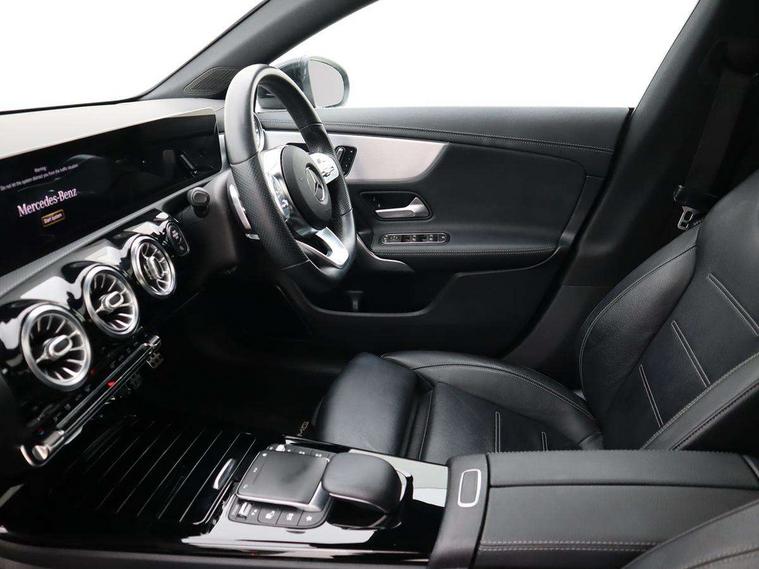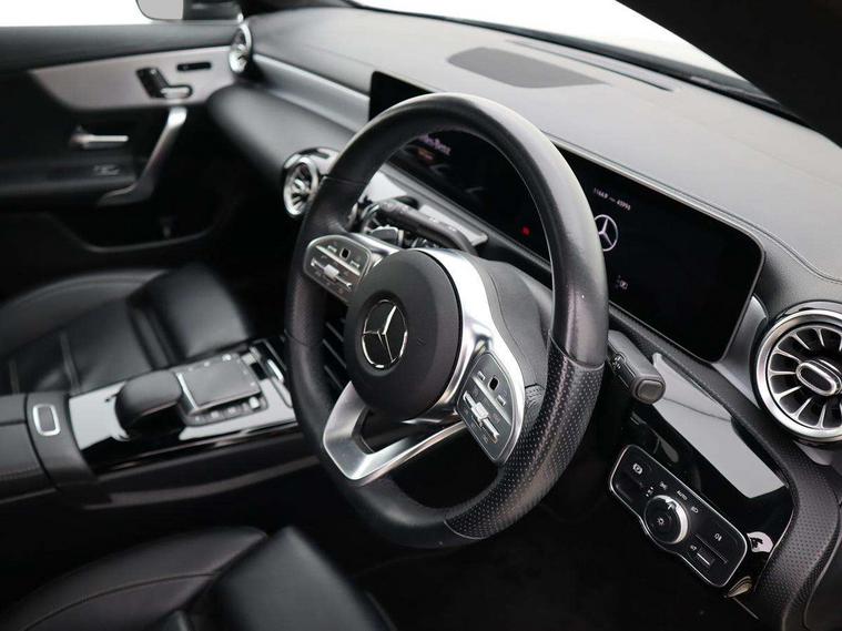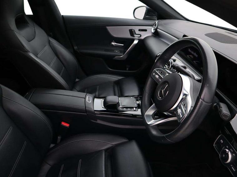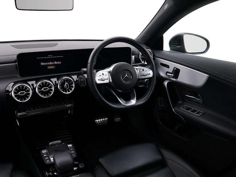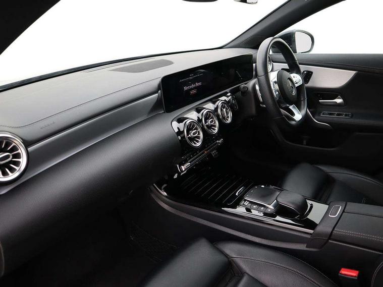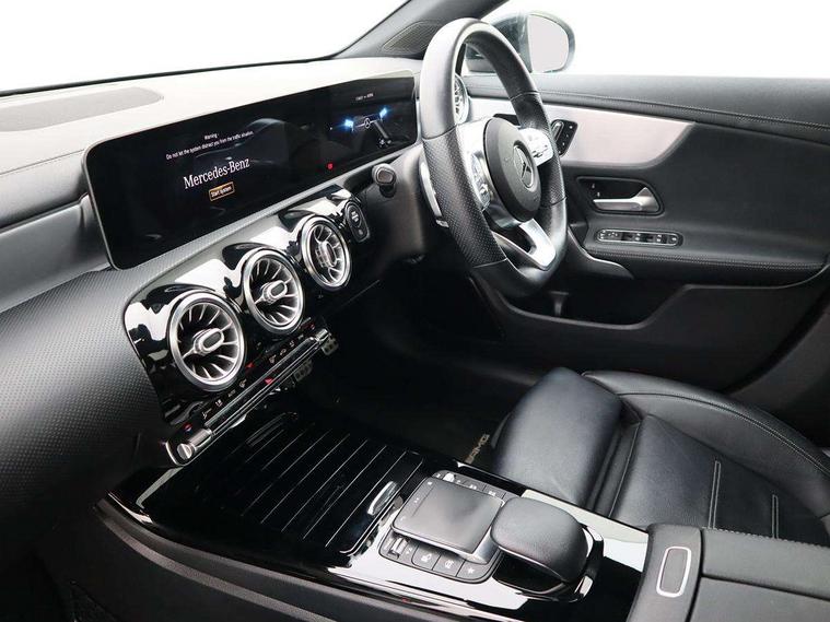 10.25 inch Instrument display with digital cockpit, 10.25 inch touchscreen central media display, Attention assist - Monitors steering behaviour and long journey fatigue, Bluetooth connection, Car wash mode, DYNAMIC SELECT with a choice of driving modes (ECO, Comfort, Sport and Individual), ECO start/stop function, Fluid level warning indicator for fuel, oil, coolant and washer fluid, Hard-disk navigation, Hey Mercedes Voice activation, Lamp failure indicator, MBUX augmented reality for navigation, Mercedes me connect including emergency call system, accident recovery, breakdown and maintenance management, Outside temperature gauge, Owners manual and service booklet in English, Pre-installation for Vehicle Monitoring, Pre-installation for Vehicle Setup, Pre-installation of private car share, Preinstallation for Mercedes Benz link, Radio aerial integrated into front and rear windshields, Service indicator (ASSYST), Smartphone integration with Apple CarPlay and Android auto, Traffic sign assist, Trip computer in multifunction display with current consumption indicator, Wireless charging, Lowered comfort suspension, Rear axle multi-link, DAB digital radio tuner, MBUX multimedia system with DAB digital radio and touchpad including satellite navigation, Mercedes Benz advanced sound system (225 W) with 10 speakers, 1 central speaker, speakers on doors, a tweeter on door, one sub woofer + boost amplifier, USB (type C) ports (2) in stowage compartment and 1 in front of centre console, Adaptive brake lights, AMG body styling with AMG front apron and rear apron and visible exhaust tailpipe in chrome trim elements, AMG bodystyling side skirts, Body colour bumpers, Body colour door handles, Chrome beltline strips, Chrome weather strip, Diamond radiator grille pins in chrome with silver painted louvres and chrome insert, Electric panoramic sliding sunroof, Electric windows, Electrically adjustable and heated door mirrors with integrated LED indicators, Exhaust system with 2 Visible tailpipe trim elements and rear apron with trim in chrome, Headlamp assist automatic headlamp activation, Heated glass rear windscreen + timer control, High level LED third brake light, Integrated LED daytime running lights, Interior mirror with black reading lamps and frameless, LED tail lamp, Multibeam LED headlamps with adaptive highbeam assist plus, Privacy glass with dark tinting on rear side windows and rear window, Rain sensing windscreen wipers with two sensitivity settings, Rear fog lamp, Window line trim strip in chrome, 3 spoke flattened bottom nappa leather multifunction steering wheel with perforated leather in grip area, 40:20:40 split folding rear seat backrests, Air condition air vents with surround in silver chrome, Air conditioning - Two zone thermotronic luxury automatic climate control with display, Automatic child seat recognition sensor, Black roof lining, Brushed stainless steel sports pedals with rubber studs, Electrically adjustable front memory seats including lumbar support, Floor mats with stitched AMG lettering, Front centre armrest with stowage, Galvanished gear shift paddles on steering wheel, Heated front seats, Illuminated glove compartment stowage, Illuminated Mercedes benz door sills with Mercedes Benz lettering, Interior lighting - 64 colour Ambient lighting, Luggage net on driver/front passenger seat backrest, Manually height and reach adjustable steering column, Rear armrest with two integral cup holders for drinks, Rear head restraints, Sport seats with fixed head restraints, Stowage compartment in centre console with retractable cover, Sunvisors with illuminated vanity mirrors, Touchpad on center console, Twin front cupholders, Two outer rear seat isofix and top tether child seat fixing points, Keyless go pack - CLA, Light and sight pack - CLA, Mirror pack - CLA, Parking package - CLA, Seat comfort pack - CLA, Active bonnet pedestrain safety measure which detects an impact and raises bonnet by 65mm, Adaptive brake assist with hold function and hill start assist, Anti-lock braking system (ABS), Black seat belts, Bonnet with power domes, Brake pad wear warning indicator, Childproof locks manually operated for rear doors and electrically operated for rear power windows, Crash responsive emergency lighting, Driver and front passenger head and sidebags, Driver and front passenger windowbags, Drivers knee airbag, Dual stage driver and front passenger airbags, Electric parking brake, Electronic stability programme with acceleration skid control, ESP curve dynamic assist, Front and rear seatbelt reminder, Front passenger seat occupancy sensor, Perforated front brake discs, Three point rear seat belts, Tyre pressure monitoring system, Warning triangle and first aid kit, Remote central locking and crash sensor with emergency opening function, Urban guard vehicle protection system with immobiliser and interior protection, Light aluminium with longitudinal grain interior trim, 18" 5 twin spoke design alloy wheels painted in titanium grey with high sheen finish, Summer tyres, Tirefit tyre sealant kit,