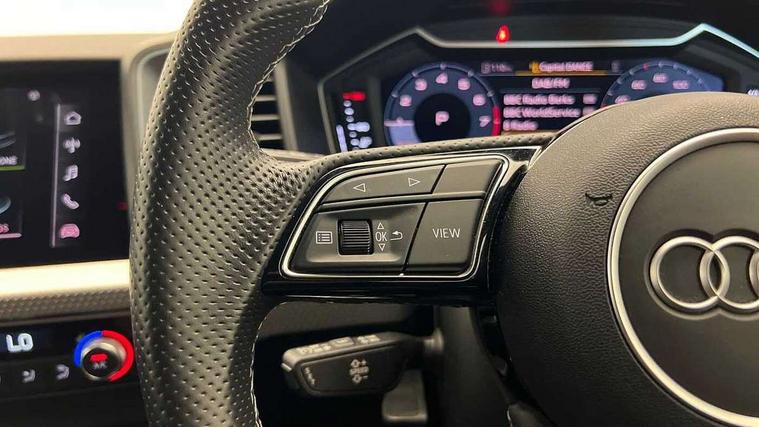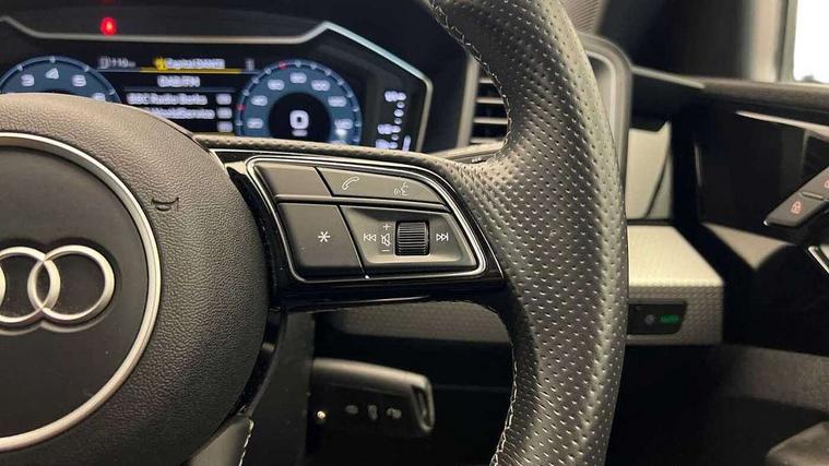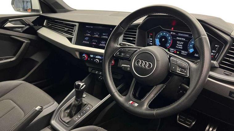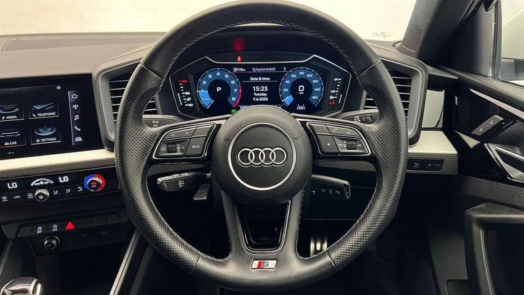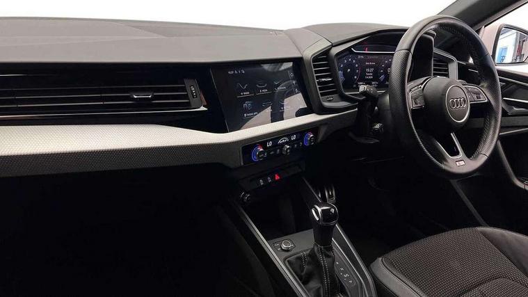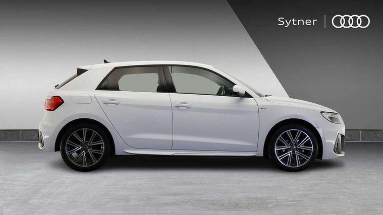 Aluminium trim for control switches, air vents and digital instrument cluster, Silver grey inlays polygon structure in diamond paint finish, Structured grey accent areas including air vents, door handle recesses and centre console in quartz paint finish, LED interior lighting pack - A1, Luggage compartment pack - A1, S line exterior styling pack - A1 Sportback, Anti theft alarm, Anti theft wheel bolts and loose wheel warning, Audi pre-sense front with pedestrain and cyclist recognition, Immobiliser, Remote central locking with 2 foldaway keys, 1 x SDXC card reader, 2 x USB type C connection points, DAB Digital radio, MMI radio plus with 8.8" colour MMI display screen and MMI touch, 3x3 point rear seatbelts, Brake assist function, Driver and front passenger airbag with front side and head airbags, Electronic Stability Control including ABS, EBD, ASR and EDL, Front passenger airbag deactivation switch, Hill hold assist, Manual rear child locks, Seatbelt height adjustment for front seats, Seatbelt monitoring, Tyre pressure warning light, Warning triangle and first aid kit, Auto dimming rear view mirror, Body coloured door mirrors, Door sills with aluminium inlays and S Line logo, Electric front and rear windows, Electrically adjustable, heated, folding door mirrors with integrated LED side indicator, Front side air inlets in grained matt black and C frame in titanium black, Heat insulating glass windscreen and side windows, Heated rear windscreen, High level LED brake light, LED headlights with LED rear lights + dynamic rear indicators + headlight adjustment and high beam, turning light + LED daytime running lights, Radiator grille and rear diffuser in matt titanium black, Radiator protective grille frame in matt aluminium silver, Rain and light sensors, Rear fog lights, Rear side wing doors, Rear wing door, Rear wiper, S line badges on front wings, Side front spoiler lips in grained matt black, 12V socket in centre console with two cup holders, 3 rear seats with headrests, 3 seat bench in 2nd row, 40:60 Split folding rear seat or folded fully, Black cloth headlining, Driver and passenger seat with manual height adjust with forward and backwards adjustment, Front and rear black floor mats with contrast stitching in fine silver, Front head restraints, Front passenger seat, Height and reach adjustable steering wheel, ISOFIX child seat mounting for front passenger and outer rear seats including top tether attachment point of outer rear seats, Leather gear knob with aluminium trim, Luggage compartment light with front and rear reading lights, Manually adjustable lumbar support in front seats, Stainless steel pedals, 10.25" Digital instrument cluster display classis style instrument dials + speed, odometer, time, outside temperature, telephone menu + fuel level warning, Audi smartphone interface with connect compatible smartphone via USB directly MMI display + Nav, music, third party apps controlled via MMI controller, Automatic start/stop system, Bluetooth interface, Cruise control, Driver's information system, Electromechanical power steering, Emergency e-call, Emergency services call system, Lane departure warning system, Service interval indicator, Speed limiter, Voice control system, Washer fluid level indicator, Sports suspension,