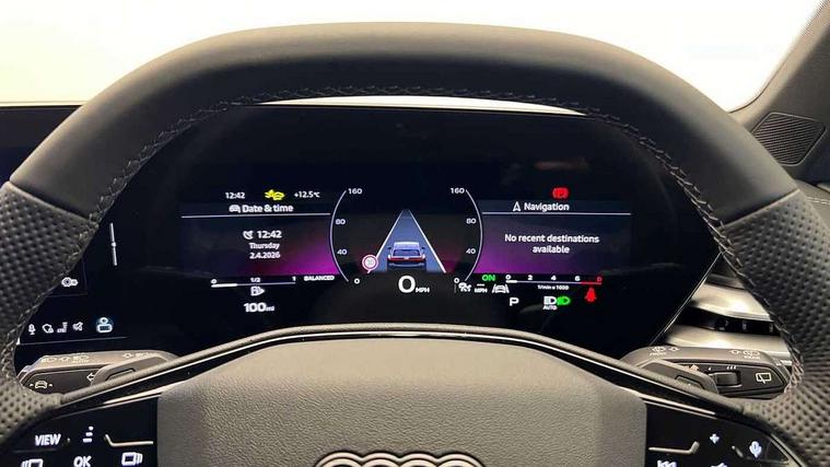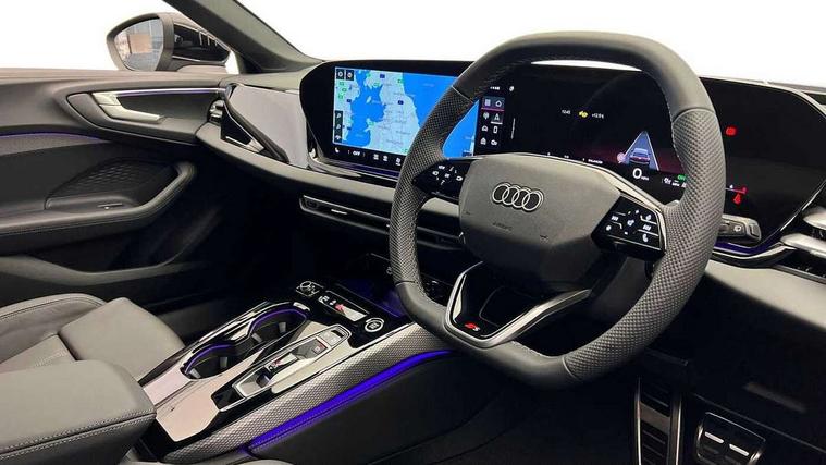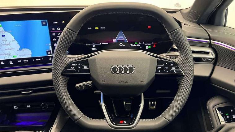 Adaptive cruise control, Advanced driver attention and fatigue montior, Audi application store, Audi assistant, Audi connect emergency call and service, Audi drive select, Audi virtual cockpit plus with 11.9" OLED colour display, Automatic start/stop system with coasting functionality, Camera based traffic sign recognition, Intersection assist, Lane departure warning, MMI navigation plus with high resolution 14.5" OLED touchscreen colour display, Park assist plus, Parking system plus with 360 display, Progressive steering with servotronic, Rear view camera, Smartphone interface, Swerve assist and turn assist, Traffic sign based speed limiter, Sports suspension lowered by 20mm, 2 USB-C ports in both the front and rear, Audi sound system impressive sound with 8 loudspeakers including centre speaker and subwoofer, 6-channel amplifier with a total output of 180 watts, DAB digital radio reception, Smartphone compartment with wireless charging, Aluminium roof rails, Aluminium window trims, Auto dimming rear view mirror, Body colour door mirrors, Door mirrors - electrically adjustable, heated, folding and auto dimming on both sides, Front and rear electric windows, Front door sill trims with aluminium inlays, illuminated with 'S' logo, High beam assist, LED headlights Plus incl. digital daytime running lights, turning light, all-weather light, motorway light, manouevring light and intersection light, LED rear lights pro incl. dynamic rear indicators and illuminated light strip with animated coming and leaving home function, LED third brake light, Privacy glass, Rear and side windows with heat insulating glass, Rear side wing doors, Rear wash/wipe, S Line badges on the front wings, S line bumpers, radiator grille and diffuser in phantom black and diffuser insert in matt anthracite, White rhombus logo projection light in exterior mirrors, Windscreen with acoustic glazing, 3 rear headrests, 3 seat rear bench, 3 spoke leather steering wheel with multi-function buttons with touch control, flattened on top and bottom, with S badging and contrast stitching, 3-zone automatic climate control, 40:20:40 split folding rear seat bench with centre armrest and cup holders, Comfort front centre armrest, Front and rear floor mats, Front seats with manual adjustment for position and 4-way electric lumbar support, Front sport seats with integrated headrest and S embossed logo, Headlining in black cloth, Heated front seats, i-Size child seat mounting on the front passenger side and outer rear seats, i-Size and top tether on the outer rear seats, Luggage compartment lid, electrically opening and closing, Manual steering column height and depth adjustment, Single front passenger seat, Stainless steel pedals and footrest, Steering wheel grips in perforated leather and shift paddles, Ambient lighting package plus - A5, 3x3 point rear seat belts, Driver airbag, Electric child safety locks, First aid kit with warning triangle and vests, Front emergency brake assist, Front passenger airbag, Front passenger airbag deactivation, Front side airbags with head airbag system and front interaction airbag, Hill hold assist, Seat belt monitoring with rear seat occupant reminder, Tyre pressure loss indicator, Anti theft alarm, Anti-theft wheel bolts, Keyless Go, Accent surfaces and control buttons in gloss black, Black dashboard with contrast stitching, Inlays in matt brushed aluminium with linear embossing, anthracite, Softwrap in leatherette with contrast stitching, Upper and lower interior elements in leatherette, Tyre repair kit,