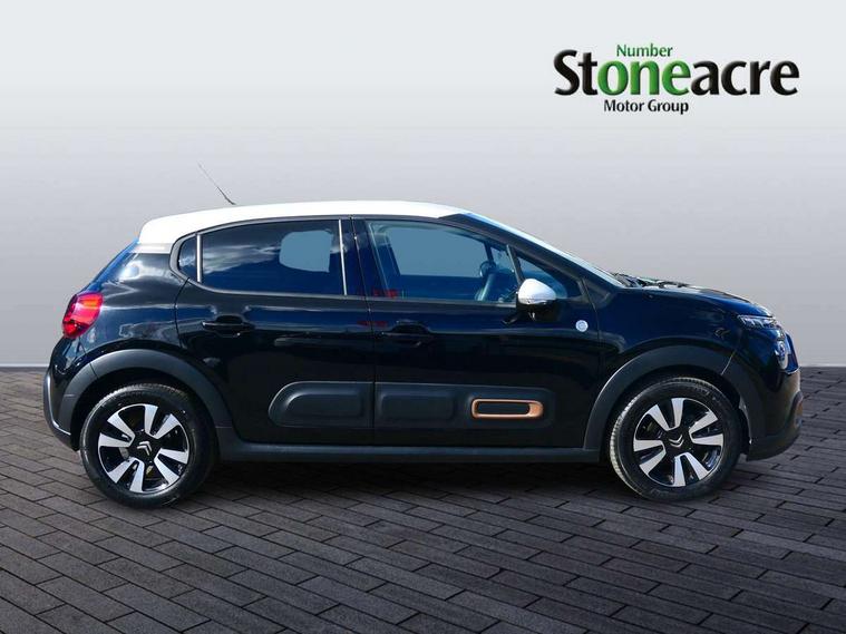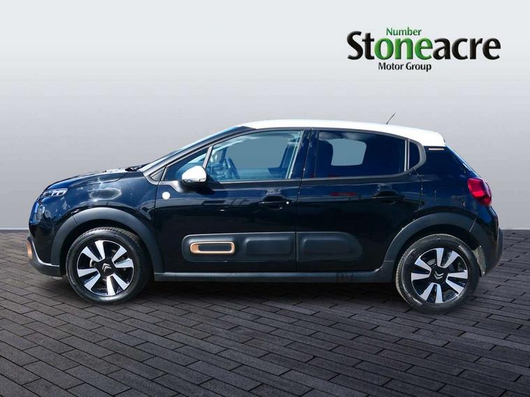 Coffee Break Alert, Cruise control + speed limiter, eCall emergency call system, Exterior temperature display, Instrument cluster with white LCD and analogue gauges, Multi function trip computer, Rear parking sensors, Reversing camera, Variable assistance power steering, USB connection, 3D rear light signature, Airbump on side door panel, Auto headlights, Automatic activation of hazard warning lights, Badge under exterior door mirrors, Body colour bumpers, Body colour door handles, C column sticker, C-Series Edition roof sticker, Chrome decoration on front face, under chevrons and around daytime running lights, Citroen illuminated signature in LED headlights and LED daytime running lights, Dark tinted tailgate and rear side windows, Electrically adjustable door mirrors, Electrically folding door mirrors, Fog lights integrated into front bumper, Front sequential electric windows with one-touch open/close and anti-pinch system, Heated door mirrors, LED Headlights, LED third brake light, Matt black finish B pillar, Perla nera black bi-tone roof, Rear sequential electric windows with one-touch open/close and anti-pinch system, Rear side wing doors, Rear windscreen wiper with intermittent mode linked to vehicle speed and automatic activation when reverse gear selected, Roof colour rear view mirror caps, Standard day night switchable interior rear view mirror, Variable front intermittent wipers, 1/3 to 2/3 split folding rear seat, 12V socket, Automatic air conditioning, Boot light, C-Series Edition carpet mats, Driver and passenger's sun visor with courtesy mirror, Driver's seat height adjustment, Front lighting panel with map reading lights, Front seats adjustable with forward back slide and adjustable backrest, Height adjustable front head restraints, Height/reach adjust steering wheel, ISOFIX mounting on outer rear seats with top tether and labels indicating fixing points, Mica cloth upholstery, Parcel shelf, Row 2 - Three seats with individually adjustable head rests, Seatbelt unfastened on the move audible and visual alert for front and rear seats, Single front passenger seat, Soft touch gear lever with leather effect gaiter and overstitching, Standard ambience, Steering wheel with satin chrome elements and audio/telephone controls, Three rear headrests, Upholstered armrest in front and rear doors, Anodised bronze colour pack - C3, C-Series Edition style pack - C3, Safety pack 1 - C3, Visibility pack with automatic lights - C3, ABS with Electronic brakeforce distribution and Emergency braking assistance, Driver and front passenger seatbelts with pyrotechnic pretensioners and force limiters, Driver's airbag, Electric child locks, ESP with anti skid system, Front passenger airbag, Front passenger airbag deactivation, Front side airbags + front/rear curtain airbags, Hill start assist, Manual parking brake with chrome finish button, Mono-tone horn, Outer rear seats with pretensioners and force limiters, Three rear 3-point seatbelts, Tyre pressure monitoring system, Anti theft alarm, Automatic door and boot locking when moving off with automatic unlocking in case of impact, Central locking with locked indicator and interior one touch lock button, Immobiliser, Remote control central locking with two plip keys, Soft touch leather effect dashboard finish with grey surround, 16" Matrix diamond cut alloy wheels, Tyre puncture repair kit,