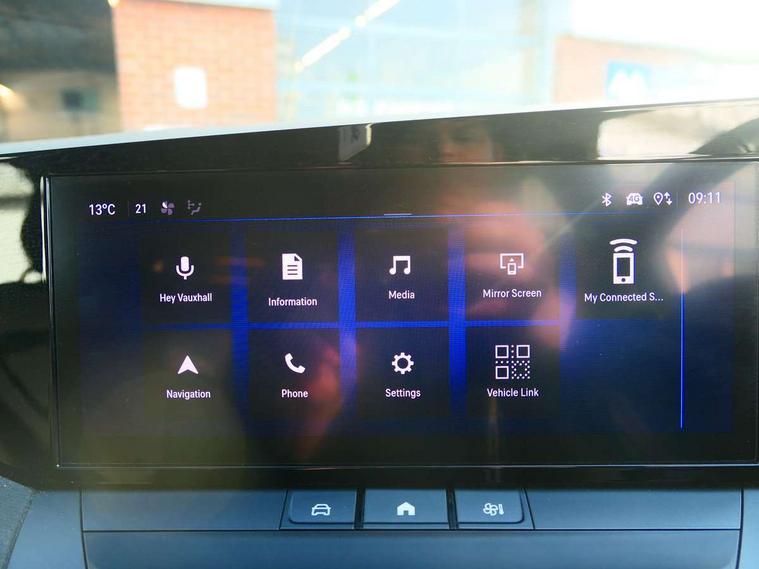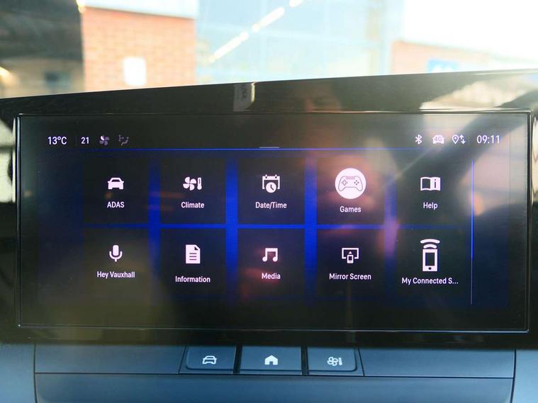 Bluetooth connectivity, Breakdown call (b-call), Cruise control with intelligent speed adaption, Digital central facia display with audio info, digital clock with automatic RDS time adjustment and Outside air temperature with ice warning function, Digital instrumentation - Speedometer, rev counter, satellite navigation display, low fuel & water temperature warning light, shift up/down indicate light, Drive Smart - Live navigation provided by TomTom and Real time traffic news, Driver drowsiness alert system, Driver information display - Total mileage, service due indicator, oil life, eCall emergency system, Front and rear parking distance sensors, Front camera system, Handsfree calls via steering wheel controls, In-crash braking, Lane departure warning with lane keep assist, Lights on audible warning, Multifunction trip computer - Trip mileage, vehicle range, average speed and fuel economy, instantaneous fuel economy and driving time, Natural voice recognition with satellite navigation commands, phone connectivity functions, choice of music playback and operation of electronic clima, Over the air updates and WiFi updates, PAS, Phone book access, Pure Panel Digital Display - 10" Digital instrument cluster, RDS with traffic programme, Satellite navigation system with natural voice recognition, Service interval indicator, Speed sign recognition, Start/stop system, Vauxhall connect, Vehicle microphone, Vehicle status and information, 6 speakers, AM/FM stereo radio with 36 station presets, Bluetooth connectivity with A2DP audio streaming function (Advanced audio distribuition profile), DAB Digital radio, Front USB connection, Front USB connection with iPod control, Pure Panel Digital Display - 10" Infotainment colour touchscreen, Smartphone interface with Apple CarPlay, Android Auto and Wireless smartphone projection, Steering wheel audio, phone and cruise controls, Active bonnet/headlight/wiper structure, Adaptive brake lights, Automatic lighting control, Black door mirrors, Black lower window frame moulding, Body colour bumpers with grained black lower front grille and rear valance panel, Body colour roof and rear roof spoiler, Body coloured door handles, Chrome-effect Griffin logo and vizor frame, Door to door illumination, Electrically operated front and rear windows with safety auto reverse and one touch up/down facility, Heated rear window, High beam assist, Intermittent rear window wash/wipe, LED daytime running lights, LED front fog lights, LED Headlights, LED side repeat indicators, LED tail lights, Manual folding door mirrors, Manual headlight levelling, Rear side wing doors, Rear view mirror, Shark fin aerial, Soundproof insulated windscreen, Third brake light, Twin electrically adjustable and heated door mirrors, Two speed rain-sensitive windscreen wipers with variable intermittent wipe, Windscreen and side window demist vents, 12V electrical accessory socket in front, 3 seat bench in 2nd row, 60/40 split folding rear seat, Chrome effect interior door handles, Cloth upholstery with cloth side bolsters and surrounds, Driver's and front passenger's sunvisors, Electronic climate control, Fade up/down front and rear courtesy light, Folding storage box on driver side lower facia, Four adjustable facia vents, Four lashing eyes in load compartment, Four way adjustable height, reach, backrest, head restraint in front passengers seat, Front and rear seatbelts, Front door pockets, Front head restraints, Fully carpeted load area, Glovebox with lid, Illuminated load area, Illuminated vanity mirrors, Interior tailgate handle, Isofix child seat mounting points on outer rear seats, Luggage compartment cover, Pollen filter, Reach and rake adjustable steering column, Rear centre headrest, Rear door pockets, Rear head restraints, Rear reading lights, Single front passenger seat, Six way adjustable height, reach, backrest, head restraint in drivers seat, Storage compartment in centre console, Three spoke flat bottom design leather covered steering wheel with satin chrome effect accents, Twin gas assisted tailgate struts, Two drinks holder in centre console, 3x3 point rear seat belts, 8 Airbags - Drivers and front passengers airbags, Front seat side-impact airbags and Full-size curtain airbags, Anti-lock braking system (ABS), Automatic emergency braking with pedestrian detection, Child locks on rear doors, Cornering brake control, Deactivation switch for front passengers front and side impact airbags, Drag torque control, Electronic brake force distribution, Electronic parking brake, Emergency brake assist, ESC - Electronic Stability Control + traction control, Fading brake support, Forward collision alert at low speed, Front and outer rear seatbelt force limiters, Hill start assist, Outer rear seatbelt pretensioners, Rollover mitigation, Seatbelt unfastened audible warning and warning light, Straight line stability control, Tyre pressure monitoring system, Upper and lower bumper design to reduce upper and lower leg injuries, Deadlocking system, Key left in ignition audible warning, Keyless start, Locking wheel nuts, Remote control central locking, Remote control ultrasonic security alarm system, Birdie grey trim inserts on front doors, Black facia with modene trim inserts, Instrument panel bar in Alexit grey, 16" Silver alloy wheels, Emergency tyre inflation kit,