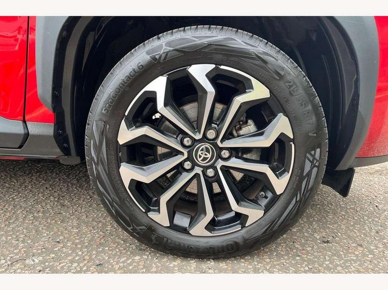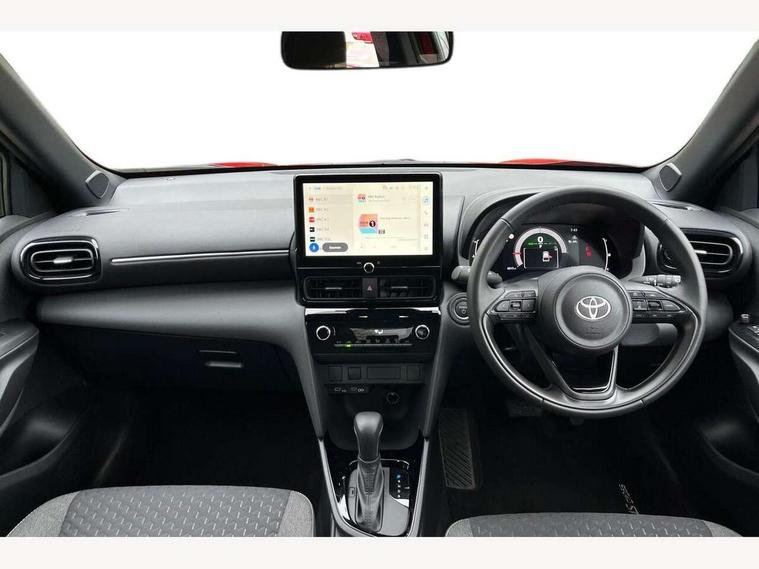 10.5" Multimedia display screen, 7" Multi information display screen, Adaptive cruise control, multi info switches on steering wheel, Adjustable speed limiter, Bluetooth connectivity, Color multi-information display, Digital speedometer, Digital tachometer, Drive mode selector, Driver attention alert system, eCall emergency system, Electric power steering, Emergency driving stop system, Full range intelligent adaptive cruise control, Hybrid system indicator, Intersection turn assist, Key reminder warning, Lane trace assist, My T Connected services, Pre-collision system enhanced with emergency steering assist, Reversing camera, Road sign assist - RSA, Static guide lines on reversing camera, Tailgate, Telephone switch on steering wheel, Wireless Smartphone integration incl Apple CarPlay, Steering assisted vehicle stability control, 6 speakers, DAB Digital radio, Front USB Type-C connector, Front USB-C device charger, Acoustic windscreen glass, Anti-jam protection on power windows, Auto high beam [AHB] with on/off switch, Auto intermittent windscreen wipers, Automatic headlights, Automatic headlights cut-off, Black door moulding, Black lower front grille, Black protection moulding on side doors, Black roof rails, Black upper front grille, Black wheel arch mouldings, Body colour door handles, Body colour front bumper, Body colour rear bumper, Electric adjustable heated door mirrors, Follow me home headlights, Front and rear electric windows with auto up/down function, Headlight cut off reminder, Indicators integrated on door mirrors, Intermittent rear wiper, LED 3rd brake light, LED daytime running lights guide, LED front fog lights, LED front light guide, LED Indicators, LED projector headlights, LED rear lights with sequential indicators, Manual day/night rear view mirror, Manual headlight levelling, Manually retractable door mirrors, Noise reduction layer on windscreen, Pre wiring for towing hook, Privacy glass, Rain sensor, Rear roof spoiler, Rear side wing doors, Rear window defogger, Shark fin antenna, 12v power outlet - front, 2x Rear coat hooks, 3 seat bench in 2nd row, 3 spoke leather steering wheel, 40/60 split deckboard, 40:20:40 split folding rear bench seat, Adjustable rear headrests, Adjustable speed limiter switch on steering wheel, Auto air conditioning, Black roof lining, Boot light, Central armrest, Driver and front passenger personal lights, Driver and front passenger Whiplash injury Lesseing seats, Fabric door trim, Fabric upholstery, Front console box, Front cup holders, Front door pockets, Front head restraints, Front/rear assist grips, Gear shift indicator, Gloss black surround on gear shift console, Height adjustable driver's seat, Height adjustable front passenger seat, Hooks for luggage holding belts, ISOFIX child restraint system, Lane departure alert switch on steering control, Leather gearshift, LED centre room light, Manual telescopic and tilting steering wheel, Mirror on driver and passenger sun visor, Pollen air filter, Power adjustable lumbar support on driver seat, Rear cup holders, Rear door pockets, Rear head restraints, Remote air-conditioning system, Single compartment glovebox, Single front passenger seat, Soft tonneau cover, Storage box under boot floor, Voice recognition switch on steering wheel, Yaris cross floor mats, 3x3 point rear seat belts, ABS+EBD+Brake assist, Driver and passenger central airbags, Driver and passenger front airbags, Driver and passenger side airbags, Electronic parking brake, Emergency brake light system (EBS), Front seat belt reminder, Hill start assist control (HAC), Passenger airbag on/off switch, Pre-collision system with pedestrian and cyclist detection, Rear door child safety locks, Rear passenger side airbags, Rear seat belt reminder, Traction control, Tyre pressure warning system, Immobiliser, Intrusion alarm, Keyless smart entry with push button start, Power door locks, Power passenger window lock, Remote door lock, Gloss black side air vent surrounds, Tyre repair kit,