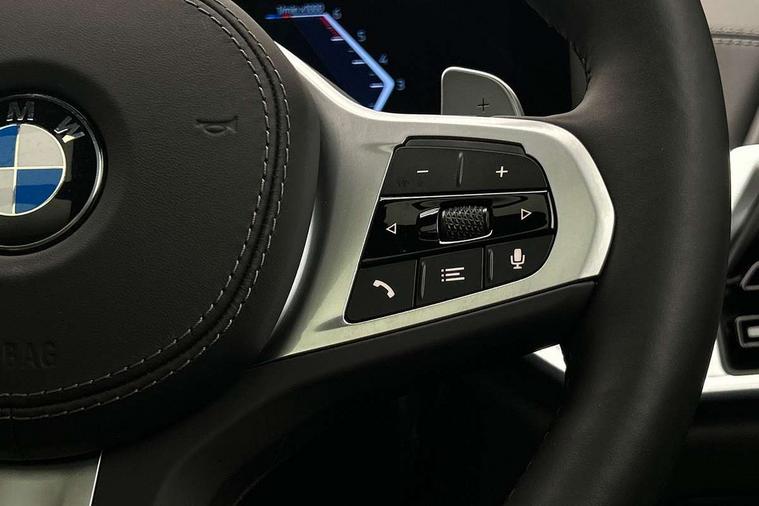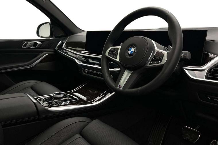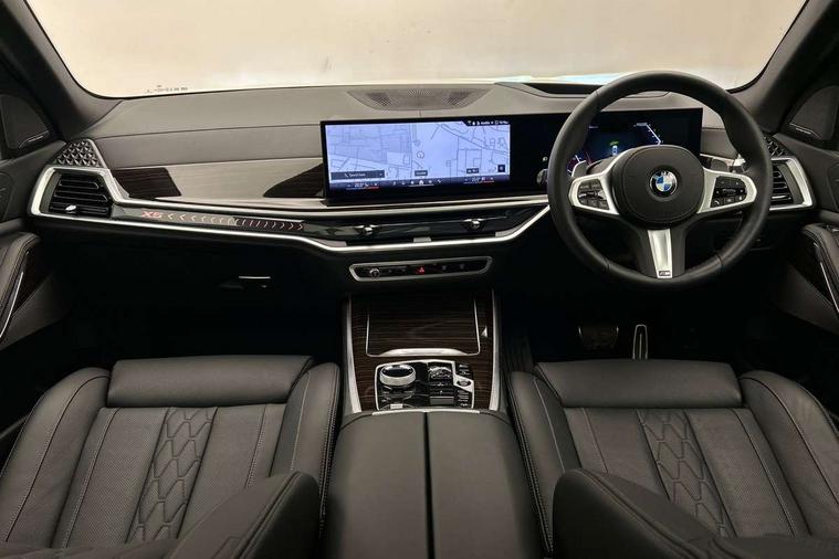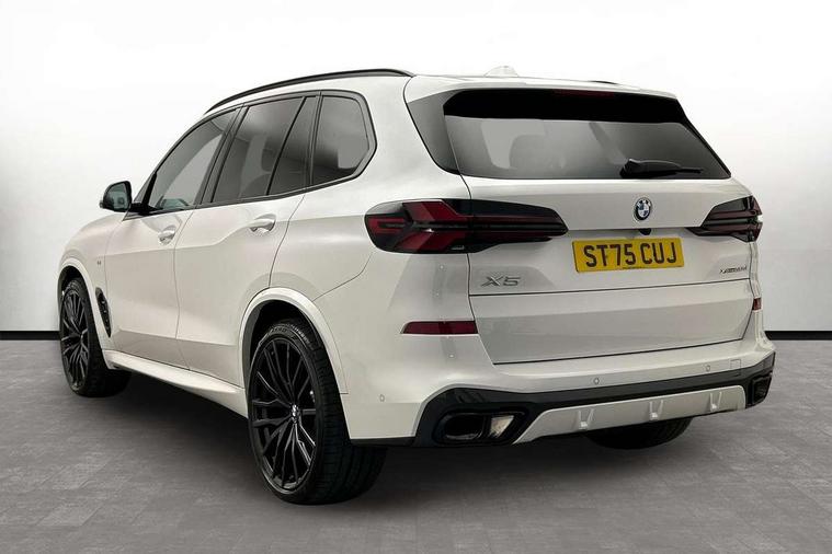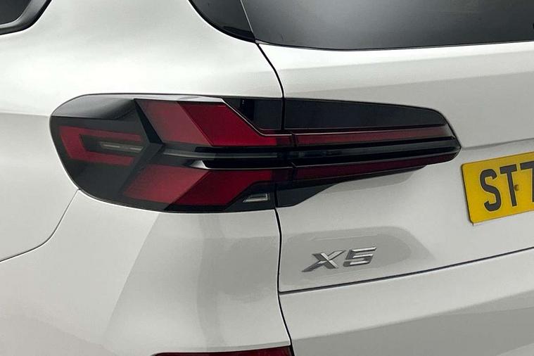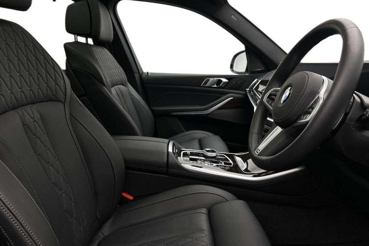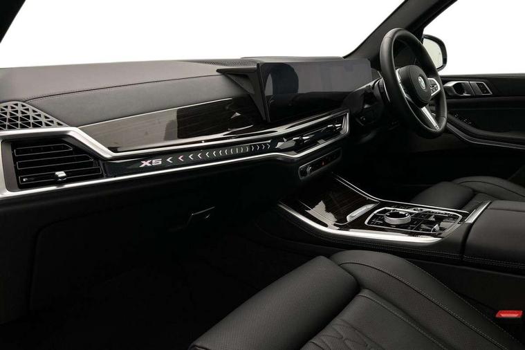 Attentiveness assist, Automatic tailgate operation, BMW ConnectedDrive online services, BMW live cockpit + with curved 12.3 instrument cluster/14.9 central display, nav/Tuner with diversity reception, RDS/4GLTE/remote software upgrade, BMW Recovery system, BMW Teleservices, Condition based service, Cruise control with brake assist, eCall emergency call system, Enhanced bluetooth with wireless charging, Integrated owner's handbook, PAS, Speed limiter, Wi-Fi hotspot, Drive performance control with ECO PRO comfort + sport mode, Eight speed steptronic sport automatic transmission and gearshift paddles on the steering wheel, Adaptive LED Headlights, Front and rear electric windows, High beam assistant, High gloss black shadow line roof rails, LED daytime running lights, Rain sensor, Rear side wing doors, Third brake light in rear spoiler, Variable intermittent rear wash/wipe, 12V - Power sockets with 2x centre console and 1x luggage compartment, 3 seat bench in 2nd row, Entry sills illuminated BMW inscription front and rear, Foldable rear centre armrest with 2 cupholders and storage compartment, Front and rear side armrest integrated into door trim, Grab handles in 1st and 2nd row of seats with Integrated in headliner, at rear with coat hooks, plastic, Headrests for all seats, Luggage compartment separating net, Lumbar support with height and depth adjustment in backrest, Single front passenger seat, Sunvisors with illuminated vanity mirrors and ticket pocket, Three spoke sport M leather steering wheel, Velour floormats, Ambient light interior pack - X5, Driving assistant pack with radar based driver assistance system - X5, Expanded exterior mirror pack - X5/X5 M, M aerodynamics pack - X5, Parking assistant pack - X5, 3 rear seatbelts, Active protection, Airbags - driver/front passenger, rear and side, first and second row seats head airbags, front passenger seat airbag deactivation + knee airbag, Anti-lock braking system (ABS), Automatic Stability Control (ASC), Brake energy regeneration, Cornering brake control (CBC), Crash sensor activating central locking release, hazard warning lights, fuel cut off, interior lighting + activation of safety battery terminal clamp, DSC - Dynamic Stability Control, Dynamic Traction Control - DTC, Electromechanical parking brake with automatic drive away release and auto hold function, Electronic brake force distribution, Hill start assistant, M Sport blue painted brake calipers with 'M' designation, Mechanical child proof lock on rear doors, Tyre pressure monitoring system, Tyre pressure sensors, Ventilated front and rear disc brakes, Warning triangle and first aid kit, Alarm system, Closing system with central locking, Comfort access system, Locking wheel bolts,