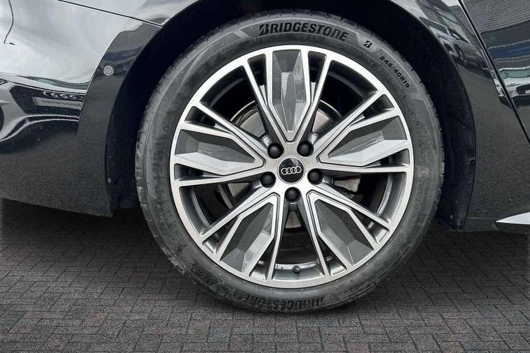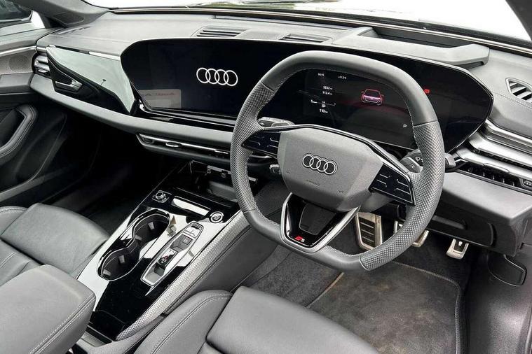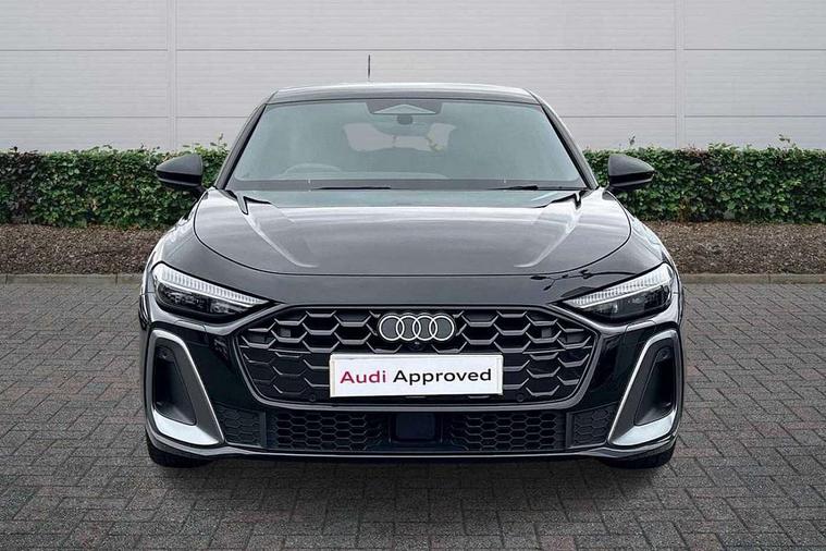 Adaptive cruise control, Advanced driver attention and fatigue montior, Audi application store, Audi assistant, Audi connect emergency call and service, Audi drive select, Audi virtual cockpit plus with 11.9" OLED colour display, Automatic start/stop system with coasting functionality, Camera based traffic sign recognition, Intersection assist, Lane departure warning, MMI navigation plus with high resolution 14.5" OLED touchscreen colour display, Park assist plus, Parking system plus with 360 display, Progressive steering with servotronic, Rear view camera, Smartphone interface, Swerve assist and turn assist, Traffic sign based speed limiter, Sports suspension lowered by 20mm, 2 USB-C ports in both the front and rear, Audi sound system impressive sound with 8 loudspeakers including centre speaker and subwoofer, 6-channel amplifier with a total output of 180 watts, DAB digital radio reception, Smartphone compartment with wireless charging, Aluminium window trims, Auto dimming rear view mirror, Body colour door mirrors, Door mirrors - electrically adjustable, heated, folding and auto dimming on both sides, Front and rear electric windows, Front door sill trims with aluminium inlays, illuminated with 'S' logo, High beam assist, LED headlights Plus incl. digital daytime running lights, turning light, all-weather light, motorway light, manouevring light and intersection light, LED rear lights pro incl. dynamic rear indicators and illuminated light strip with animated coming and leaving home function, LED third brake light, Privacy glass, Rear and side windows with heat insulating glass, Rear boot, Rear side wing doors, S Line badges on the front wings, S line bumpers, radiator grille and diffuser in phantom black and diffuser insert in matt anthracite, White rhombus logo projection light in exterior mirrors, Windscreen with acoustic glazing, 3 rear headrests, 3 seat rear bench, 3 spoke leather steering wheel with multi-function buttons with touch control, flattened on top and bottom, with S badging and contrast stitching, 3-zone automatic climate control, 40:20:40 split folding rear seat bench with centre armrest and cup holders, Comfort front centre armrest, Front and rear floor mats, Front seats with manual adjustment for position and 4-way electric lumbar support, Front sport seats with integrated headrest and S embossed logo, Headlining in black cloth, Heated front seats, i-Size child seat mounting on the front passenger side and outer rear seats, i-Size and top tether on the outer rear seats, Luggage compartment lid, electrically opening and closing, Manual steering column height and depth adjustment, Single front passenger seat, Stainless steel pedals and footrest, Steering wheel grips in perforated leather and shift paddles, Ambient lighting package plus - A5, 3x3 point rear seat belts, Driver airbag, Electric child safety locks, First aid kit with warning triangle and vests, Front emergency brake assist, Front passenger airbag, Front passenger airbag deactivation, Front side airbags with head airbag system and front interaction airbag, Hill hold assist, Seat belt monitoring with rear seat occupant reminder, Tyre pressure loss indicator, Anti theft alarm, Anti-theft wheel bolts, Keyless Go, Accent surfaces and control buttons in gloss black, Black dashboard with contrast stitching, Inlays in matt brushed aluminium with linear embossing, anthracite, Softwrap in leatherette with contrast stitching, Upper and lower interior elements in leatherette, Tyre repair kit,