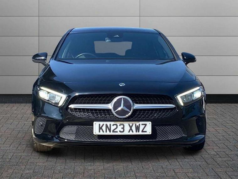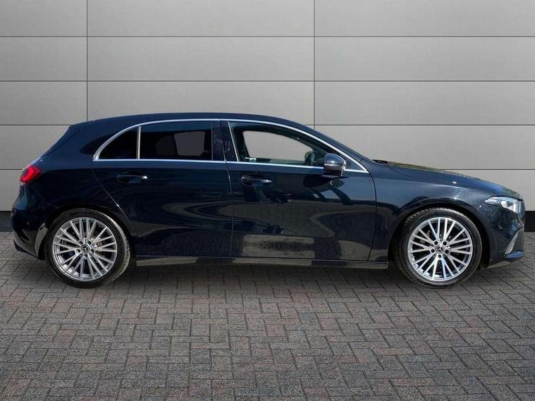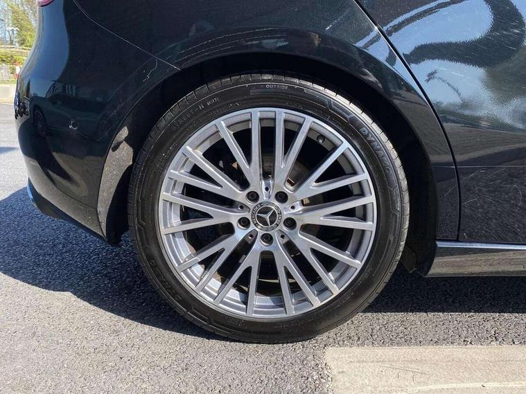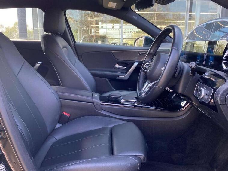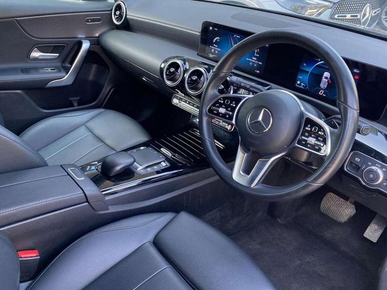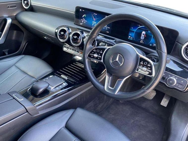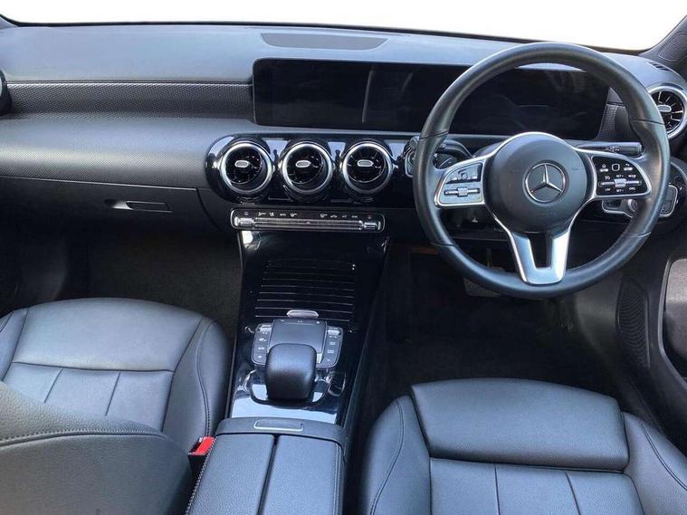 10.25" media display, 180 degree rear view camera with parking guidelines, 7" colour screen in instrument panel, Active parking assist with visual and audible warning of detected obstacles, Attention assist, Brake pad wear indicator warning light, Car wash mode, Cruise control + speed limiter, Direct steering, Dual bluetooth interfaces, DYNAMIC SELECT with a choice of driving modes (ECO, Comfort, Sport and Individual), ECO start/stop function, Fluid level warning indicator for fuel, oil, coolant and washer fluid, Hard-disk navigation, Hey Mercedes Voice activation, Lamp failure indicator, Lane keeping system, Mercedes me connect including emergency call system, accident recovery, breakdown and maintenance management, Mercedes me remote services, Outside temperature gauge, Owners manual in English, Pre-installation for private car sharing, Preinstallation for Mercedes Benz link, Service indicator (ASSYST), Smartphone integration with Apple CarPlay and Android auto, Speed limit assist, Speed sensitive power steering, Trip computer, Ultrasonic sensors positioned in the front and rear bumpers, Lowered comfort suspension, Rear axle torsion beam, 2 USB ports (type C) in rear stowage compartment and one in front of center console, 6 speakers, DAB Digital radio, MBUX multimedia system with DAB digital radio and touchpad including satellite navigation, Mercedes-Benz sound system - 100W, 4 Electric Front and Rear windows, Adaptive brake lights, Automatic headlights, Black weather strip, Body colour bumpers, Body colour door handles with chrome inserts, Body colour side skirt, Body coloured door mirrors, Chrome beltline trim, Diamond radiator grille with black pins with one louvre in silver + chrome insert, Electric adjustable and heated door mirrors with integrated LED side indicators, Exhaust system - Twin visible tailpipes in polished stainless steel, Headlamp assist automatic headlamp activation, Heated glass rear windscreen + timer control, LED High level third brake light, LED high performance headlamps with integrated LED daytime running lights, LED tail lamp, Privacy glass, Radio aerial, Rain sensing windscreen wipers with two sensitivity settings, Rear fog lights, Rear side wing doors, Rear wiper, Window line trim strip in chrome, 3 seat bench in 2nd row, 3 Spoke leather multi function steering wheel, 40:20:40 split folding rear seats, Artico man-made leather upholstery, Auto Mercedes-Benz child seat recognition sensor, Black air vents with surround in silver chrome, Black roof lining, Controller on centre console with chrome surround, Front centre armrest with storage compartment, Front comfort seats with adjustable head restraints, Front door sills with Mercedes Benz lettering, Front seat backs luggage nets, Gearshift paddles on steering wheel, Heated front seats, Height/reach adjustable steering column, Interior mirror with reading lamps in black and frameless, Manual height adjustable front seats, Rear head restraints, Seat occupancy sensor for front passenger seat, Single front passenger seat, Stowage compartment in centre console with retractable cover, Sunvisors with illuminated vanity mirrors, Touchpad on center console, Twin front cupholders, Two zone thermotronic luxury automatic climate control, Velour floor mats, Light and sight pack - A Class, Mirror package - A Class, Seat comfort pack - A Class, 3 rear 3 point seatbelts, ABS with Brake Assist, Active bonnet, Active brake assist includes forward collision warning system with autonomous braking, Adaptive brake assist with hold function and hill start assist, Childproof locks manually operated for rear doors and electrically operated for rear power windows, Crash responsive emergency lighting, Driver and passenger head and side airbags, Drivers knee airbag, Dual stage driver/passenger airbags, Electronic parking brake, ESP curve dynamic assist, ESP with ASR, Front and rear seatbelt reminder, ISOFIX and top tether child seat fixing points in two outer rear seats, Tyre pressure monitoring system, Warning triangle and first aid kit, Window airbags, Alarm system/interior protection/immobiliser, Keyless Go, Remote central locking and crash sensor with emergency opening function, Urban guard vehicle protection system with immobiliser and interior protection, Black seatbelts, Dark carbon fibre interior trim, 18" Multi spoke light alloy wheels painted in himalayas grey with high sheen finish, Summer tyres, Tirefit sealant kit,