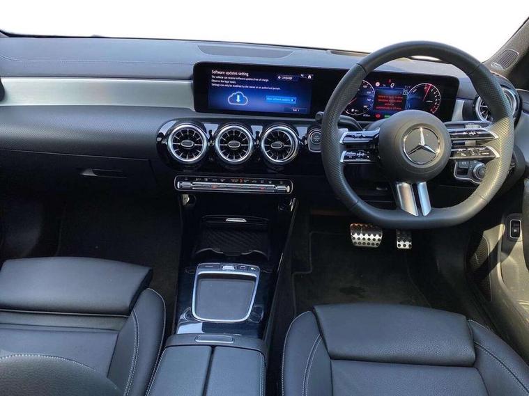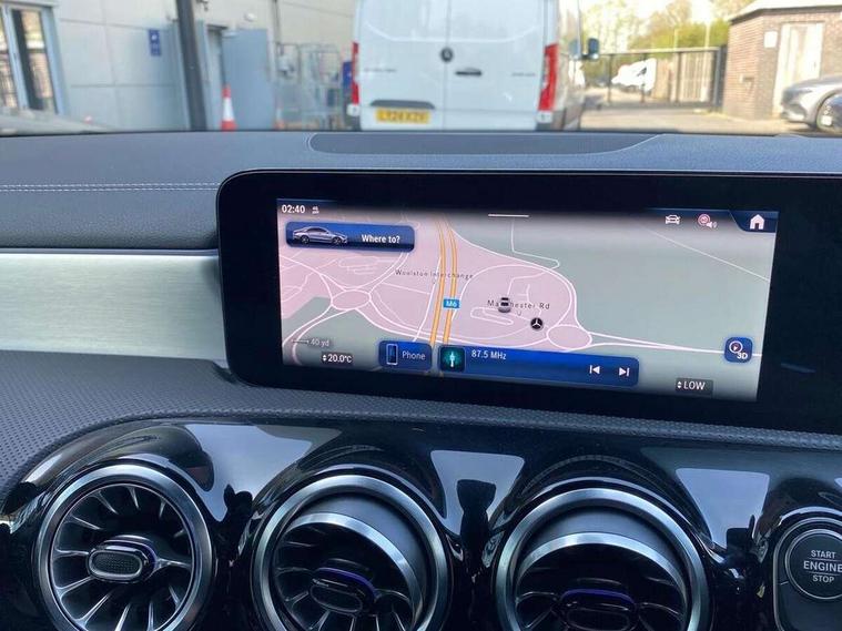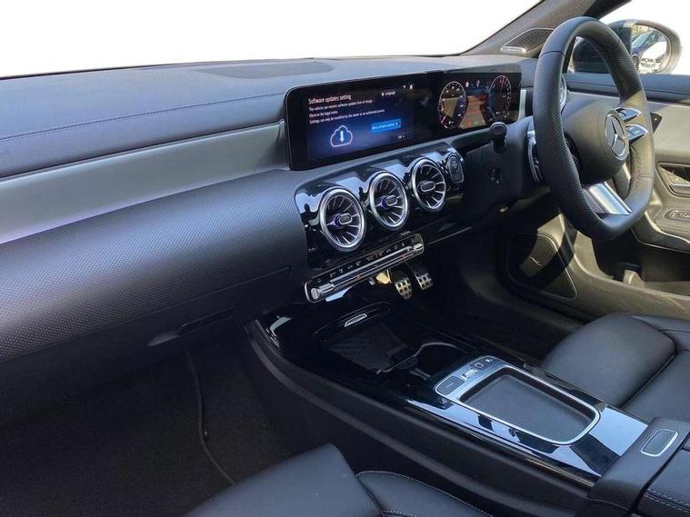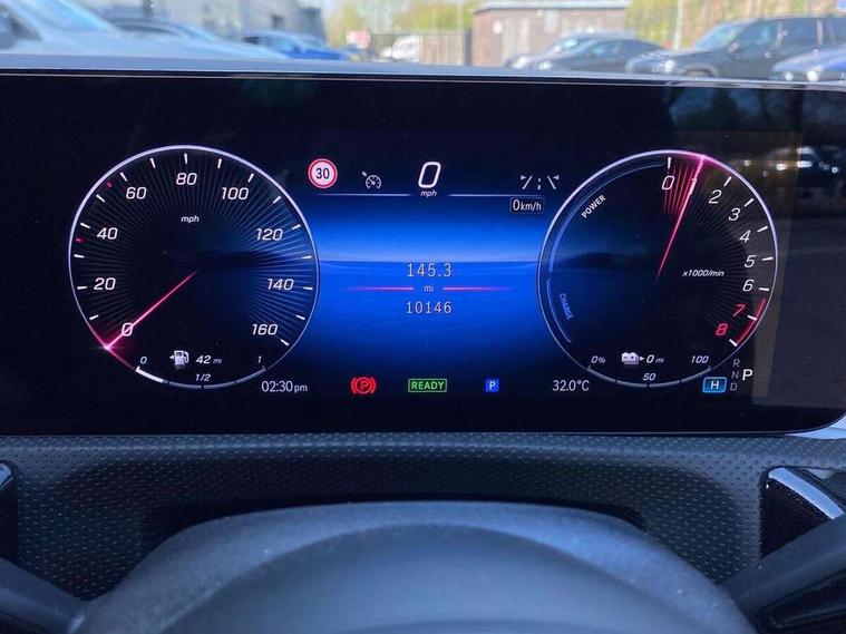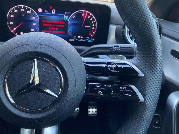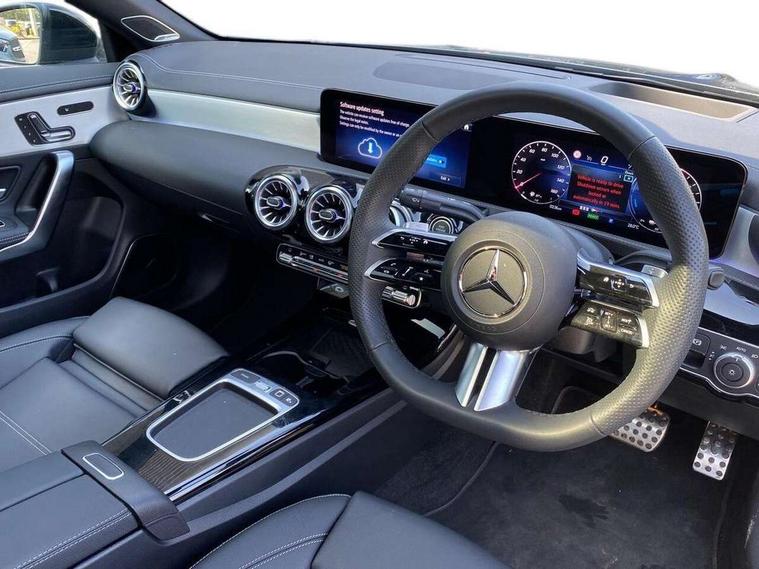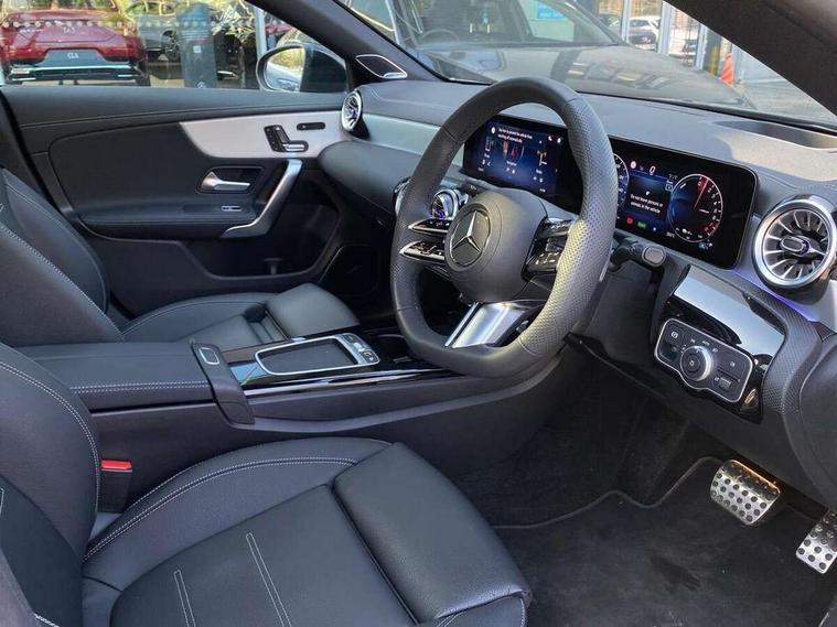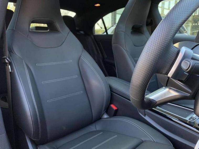 10.25 inch Instrument display with digital cockpit, 10.25 inch touchscreen central media display, Acoustic ambient protection, Active lane keeping assist, Attention assist - Monitors steering behaviour and long journey fatigue, Bluetooth connection, Car wash mode, Cruise control with limiter, Direct steer system, DYNAMIC SELECT with a choice of driving modes (ECO, Comfort, Sport and Individual), ECO start/stop function, Fluid level warning indicator for fuel, oil, coolant and washer fluid, Hard-disk navigation, Head up Display, Hey Mercedes Voice activation, Lamp failure indicator, Mercedes me connect including emergency call system, accident recovery, breakdown and maintenance management, Mercedes me remote and charging services plus, Outside temperature gauge, Owners manual in English, Pre-installation of private car share, Radio aerial integrated into front and rear windshields, Service indicator (ASSYST), Smartphone integration with Apple CarPlay and Android auto, Traffic sign assist, Trip computer in multifunction display with current consumption indicator, Wireless charging in the front centre console, Charging system - AC charging system rated at 11kW, Charging system - DC charging system rated at 22kW, Comfort suspension, Mode 3 charging cable for wallbox and public charging stations with 5m upto 11kW, Rear axle torsion beam, Burmester lettering on the speakers, Burmester surround sound system (710W) with dolby atmos, speakers - 1 central, 1 woofer, 1 tweeter, 1 subwoofer with 60W, 2 in C pillar, DAB digital radio tuner, MBUX multimedia system, Pre installation for Mercedes Benz Link, Adaptive brake lights, AMG body styling with AMG front apron and rear apron and visible exhaust tailpipe in chrome trim elements, Body colour door handles, Electric panoramic sunroof with automatic tilt and convenience closing fuinctions, rain sensor auto closing and electronic roller sunblind, Electric windows, Electrically adjustable and heated door mirrors with integrated LED indicators, Exhaust system with 2 Visible tailpipe trim elements and rear apron with trim in chrome, Hand free access, Headlamp assist automatic headlamp activation, Heated glass rear windscreen + timer control, High level LED third brake light, Integrated LED daytime running lights, Interior mirror with black reading lamps and frameless, LED tail lamp, Multibeam LED headlamps with adaptive highbeam assist plus, Privacy glass with dark tinting on rear side windows and rear window, Radiator grille with Mercedes-Benz pattern in chrome and central Mercedes star, single louvre in high-gloss black with chrome inserts, Rain sensing windscreen wipers with two sensitivity settings, Rear boot, Rear fog lamp, Rear side wing doors, Variable front intermittent wipers, 3 seat bench in 2nd row, 3 twin spoke flattened multifunction steering wheel in nappa leather - horizontal twin spoke in high gloss black, vertical twin spoke in silver chrome, 40:20:40 split folding rear seat backrests, Air condition air vents with surround in silver chrome, Air conditioning - Two zone thermotronic luxury automatic climate control with display, Artico man-made leather/Microcut microfibre upholstery, Automatic child seat recognition sensor, Black roof lining, Brushed stainless steel sports pedals with rubber studs, Charging socket, Electrically adjustable front memory seats including 4 way lumbar support, Floor mats with stitched AMG lettering, Fluorescent jacket, Front centre armrest with stowage, Galvanished gear shift paddles in silver chrome, Interior lighting - 64 colour Ambient lighting, Luggage net on driver/front passenger seat backrest, Manually height and reach adjustable steering column, Pre-entry climate control, Rear armrest with two integral cup holders for drinks, Rear head restraints, Single front passenger seat, Sport seats with fixed head restraints, Stowage compartment in centre console with retractable cover, Sunvisors with illuminated vanity mirrors, Twin front cupholders, Two outer rear seat isofix and top tether child seat fixing points, Drive parking assist pack with 360 degree camera - CLA, Keyless go comfort pack - CLA, Light and sight pack - CLA, Mirror pack - CLA, Night package - CLA, Seat comfort pack - CLA, USB package plus - CLA, Winter pack - CLA, Active bonnet pedestrain safety measure which detects an impact and raises bonnet by 65mm, Adaptive brake assist with hold function and hill start assist, Anti lock braking system (ABS) with brake assist, Black seat belts, Bonnet with power domes, Brake calipers with Mercedes-Benz lettering, Brake pad wear warning indicator, Childproof locks manually operated for rear doors and electrically operated for rear power windows, Crash responsive emergency lighting, Driver and front passenger head and sidebags, Driver and front passenger windowbags, Drivers knee airbag, Dual stage driver and front passenger airbags, Electric parking brake, Electronic stability programme with acceleration skid control, ESP curve dynamic assist, Exit warning, Front and rear seatbelt reminder, Front passenger seat occupancy sensor, Perforated front brake discs, Radar-based recuperation, Sports braking system, Three point rear seat belts, Tyre pressure monitoring system, Warning triangle and first aid kit, Alarm system with immobiliser and interior protection -Thatcham category 1, Guard 360 deg vehicle protection - tow away protection with visual, acoustic warning, interior monitoring, preinstallation for parking damage, Remote central locking and crash sensor with emergency opening function, Light aluminium with longitudinal grain interior trim, 19" AMG multi-spoke black painted light alloy wheels with high sheen rim flange, Summer tyres, Tirefit tyre sealant kit,