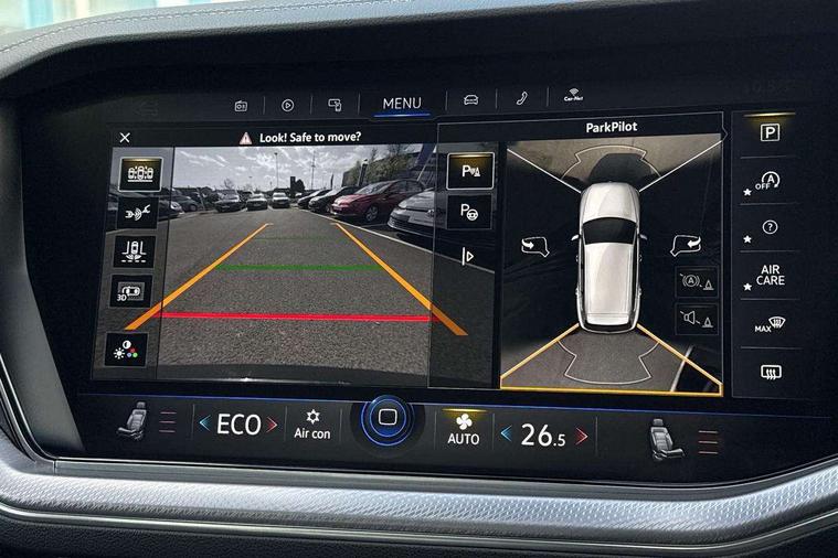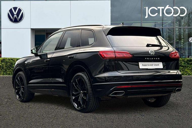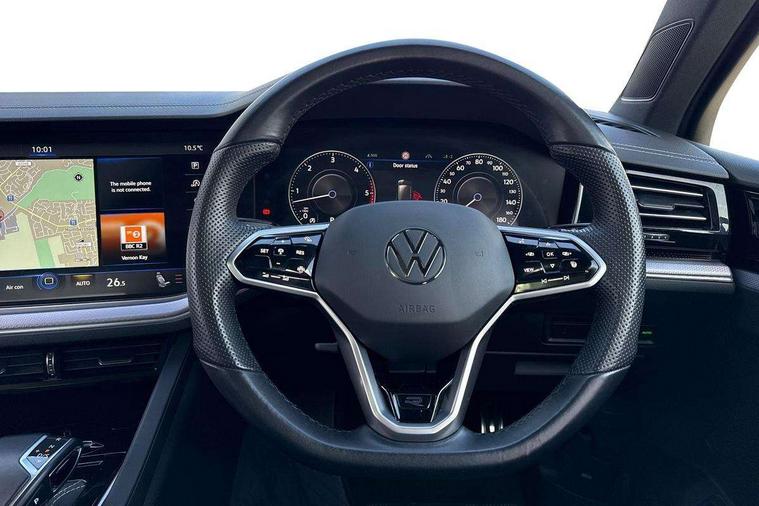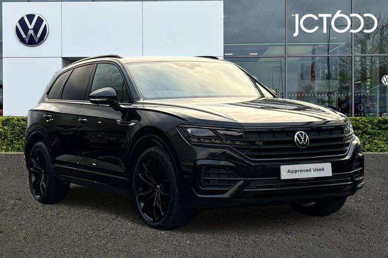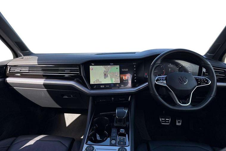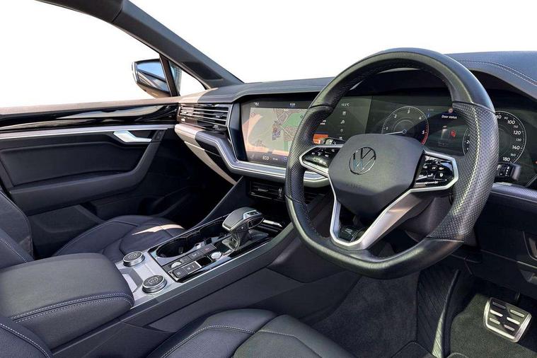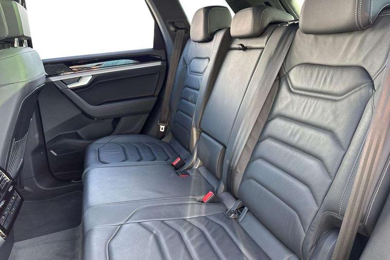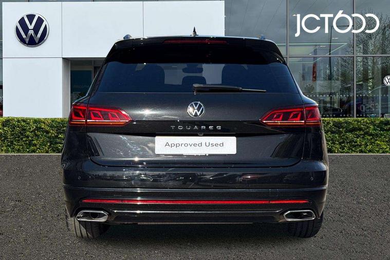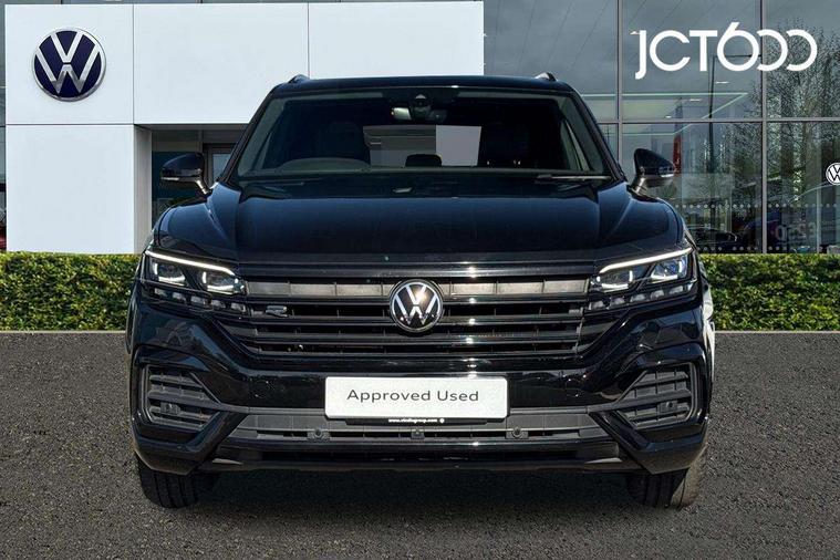 2D/3D map view, ACC - Adaptive cruise control with front assist, forward collision warning, distance monitoring, city emergency brake and speed limiter, Apple car play/Android Auto, Audible and visual fatigue detection system, Bluetooth hands free telephone connection, Car information display, Drive select with Damper control, Driver alert system, Driver profile selection, Dynamic road sign display camera controlled system with visual warning for traffic and road signs, eCall emergency system, Fully electric tailgate + keyless entry and start, Instrument cluster, MirrorLink, Multifunction camera, Multifunction computer premium with 7" colour display, One touch indicators with repeat function, Service interval indicator, Speed sensitive power steering, Start/stop system with regenerative braking, Tailgate power latch, Think blue trainer driver tips and journey analysis, Traffic sign recognition, Voice control system, Wireless Smartphone charger, 24 litre AdBlue tank, Torsen limited slip differential, DAB Digital radio, Dynamic navigation based on TMC+, Gesture control for infotainment system, Multi device interface (MDI) with illuminated USB-C connection, Music playback - MP3, WMA and AAC files, SD card slot, Simultaneous pairing of 2 compatible mobile devices, SMS functionality - read, compose and send SMS messages using touch-screen display, Title and cover art display, Volkswagen media control, Adaptive low beam for urban and motorway use, Auto dimming rear view mirror, Automatic coming/leaving home lighting function, Automatic headlights, Black anodised roof rails, Black door mirrors, Black rear diffuser, Black side window surrounds, Black upper and lower grille louvres extending into headlights and radiator grille, Body colour door handles, Body coloured wheel arches, C signature gloss black front air intake, Chromed tailpipe on the left and right integrated in the bumper with trapezoid design, Dusk sensor, Dynamic headlight range control, Electric front tilt/slide panoramic sunroof and fixed rear sunroof, Electrically power adjustable, heated, folding, auto dimming, front passenger exterior door mirror lowering function, Front and rear electric windows, Galvanised body, Gloss black finish B pillar, Gloss black rear diffuser, Headlight washers, Heat insulating darkened glass in side and rear windows, Heated windscreen washer jets, IQ.Light-LED matrix headlight, daytime running light with dynamic cornering light and indicator, LED 3rd brake light, LED rear fog light, LED rear number plate lights, Plastic scuff plates in door apertures, Poor weather light, Puddle lights, Rain sensor, Rear side wing doors, Rear wiper, 12V socket in front and rear centre console and boot, 2 Coat hooks on B pillar, 3 rear head restraints, 3 seat bench in 2nd row, 3 spoke sport heated leather multi-function sports steering wheel with gear shift paddles - generation 2, 4 way adjustable front head restraints, 4 way electric lumbar support for driver and front passenger, 4 zone climate control, 40:20:40 split folding slide/recline rear seat, B pillar vents, Black lower edge of door extending sills, Branded points of interest, Double sun visor for drivier and passenger with LED illuminated vanity mirrors, Electric luggage compartment cover, Folding rear centre armrest with 2 cupholders, Front + rear carpet mats, Front centre armrest with storage box, Gear shift indicator, Height/reach adjust steering wheel, Illuminated air conditioned glovebox, Isofix preparation for 2 rear child seats, Jack and tool kit, Leather trimmed gear knob with gloss black inlay/aluminum trim, Leatherette door trim, LED luggage compartment lighting, Load through provision, Luggage compartment with load lashing rings, Plastic loading edge protection, Rear seat remote release levers, Single front passenger seat, Soul black headlining, Stainless steel pedals, Innovision cockpit pack - Touareg, 3 point front seatbelts with pre-tensioners, ABS, Active bonnet, Automatic post collision braking system, Curtain airbags, Driver/Front Passenger airbags, EBD + Brake Assist, EDL, Electronic parking brake with auto hold, ESC with ASR, Front seat side impact airbags, Hill descent control, Hill start assist, Passenger airbag deactivate switch, Seatbelt warning lamp and buzzer, Three 3 point rear seatbelts, Two tone horn, Volkswagen roadside assistance, Warning triangle and first aid kit, Alarm with interior monitoring in cab, backup horn and towing protection, Child security locks for front and rear doors, Electronic engine immobiliser, Remote central locking, Black decorative trims on the side windows, High gloss black centre console,